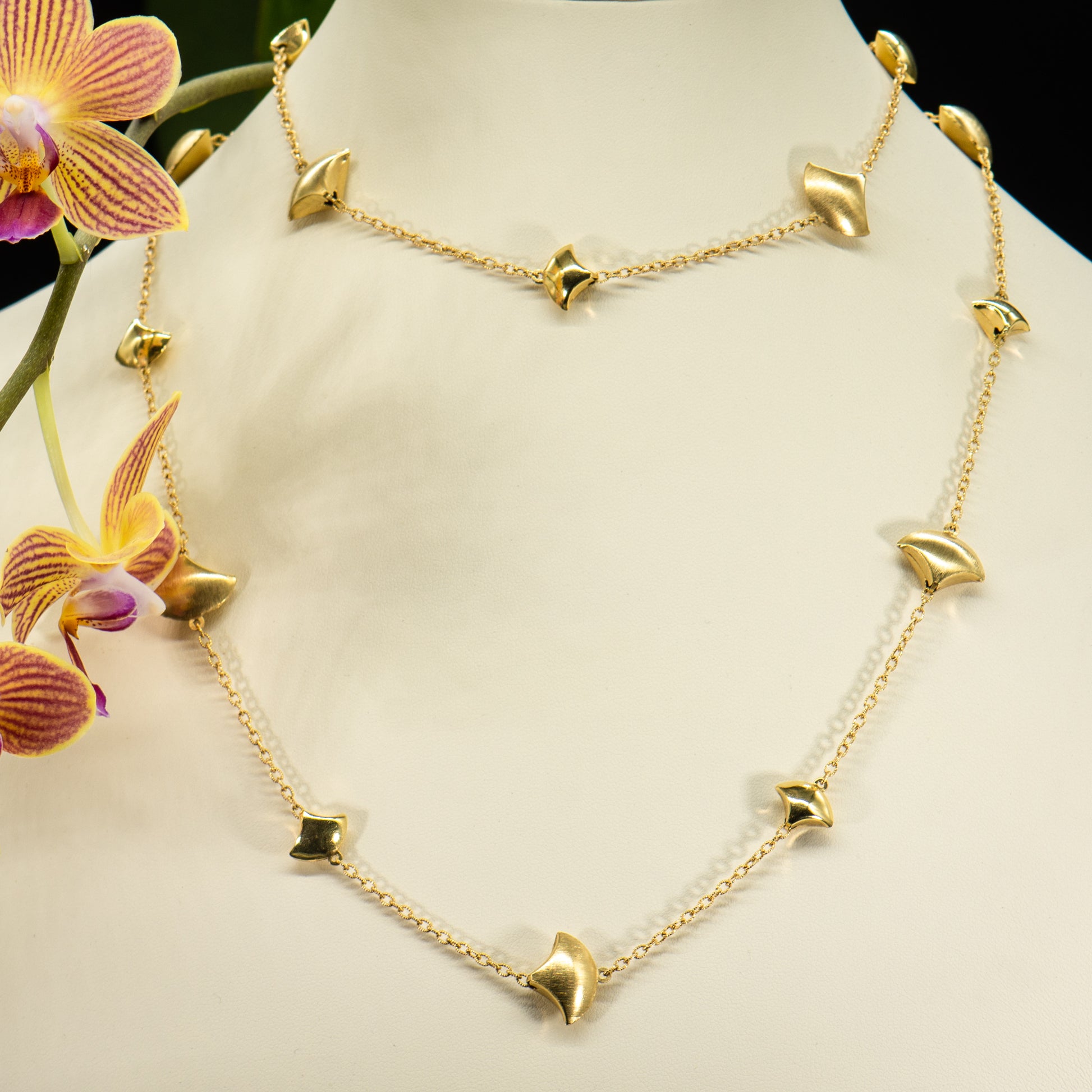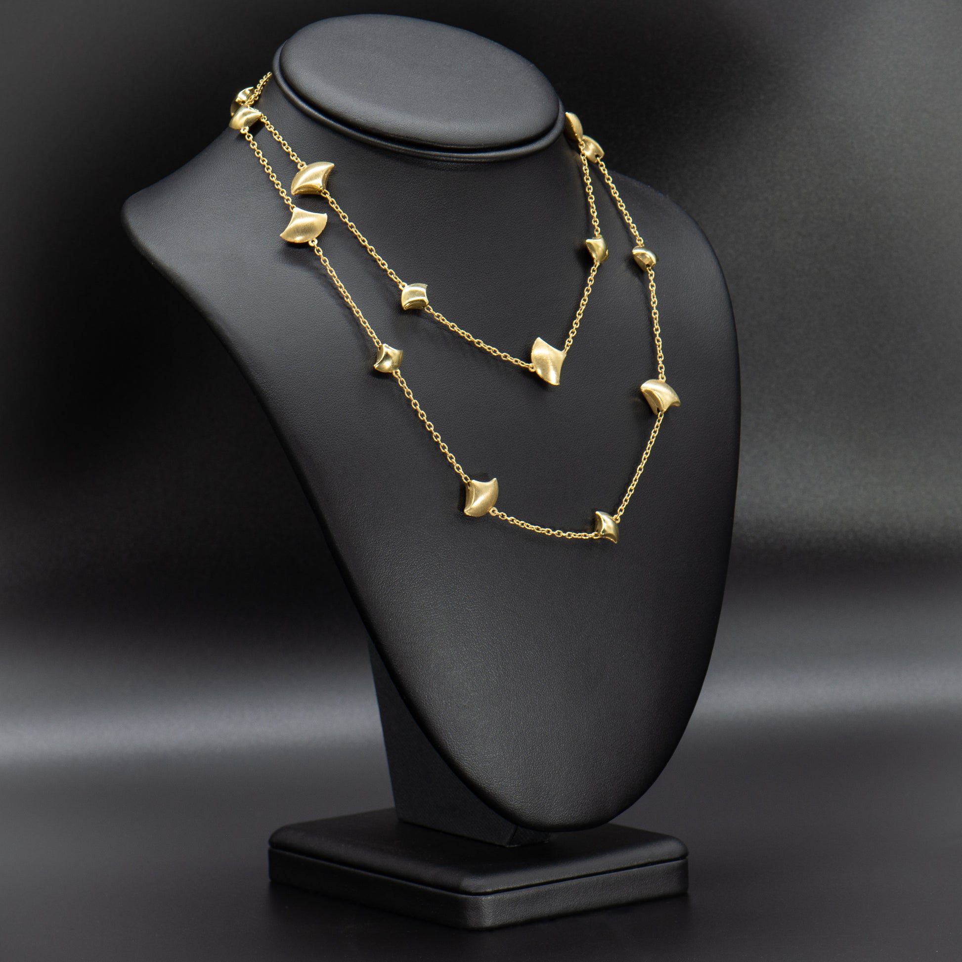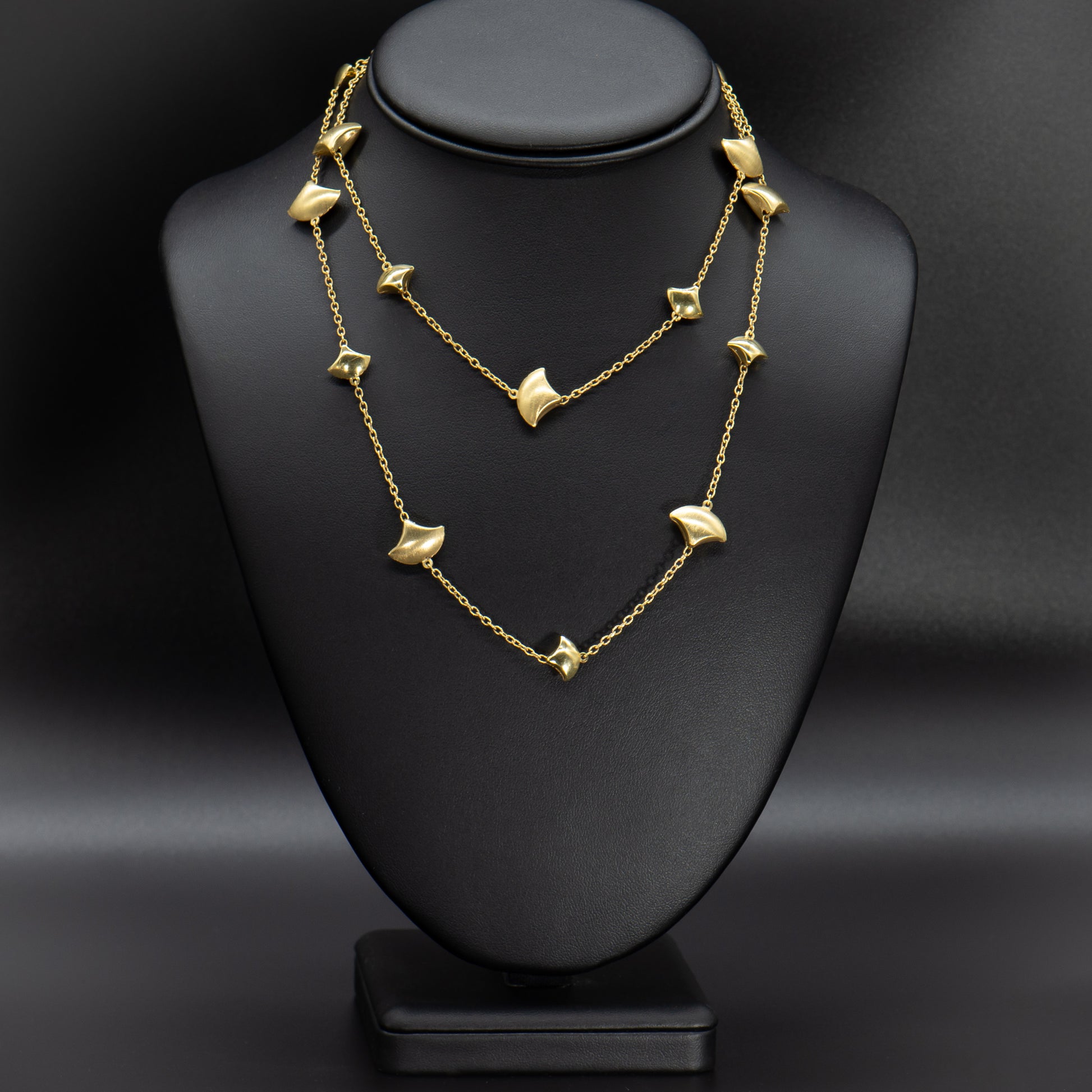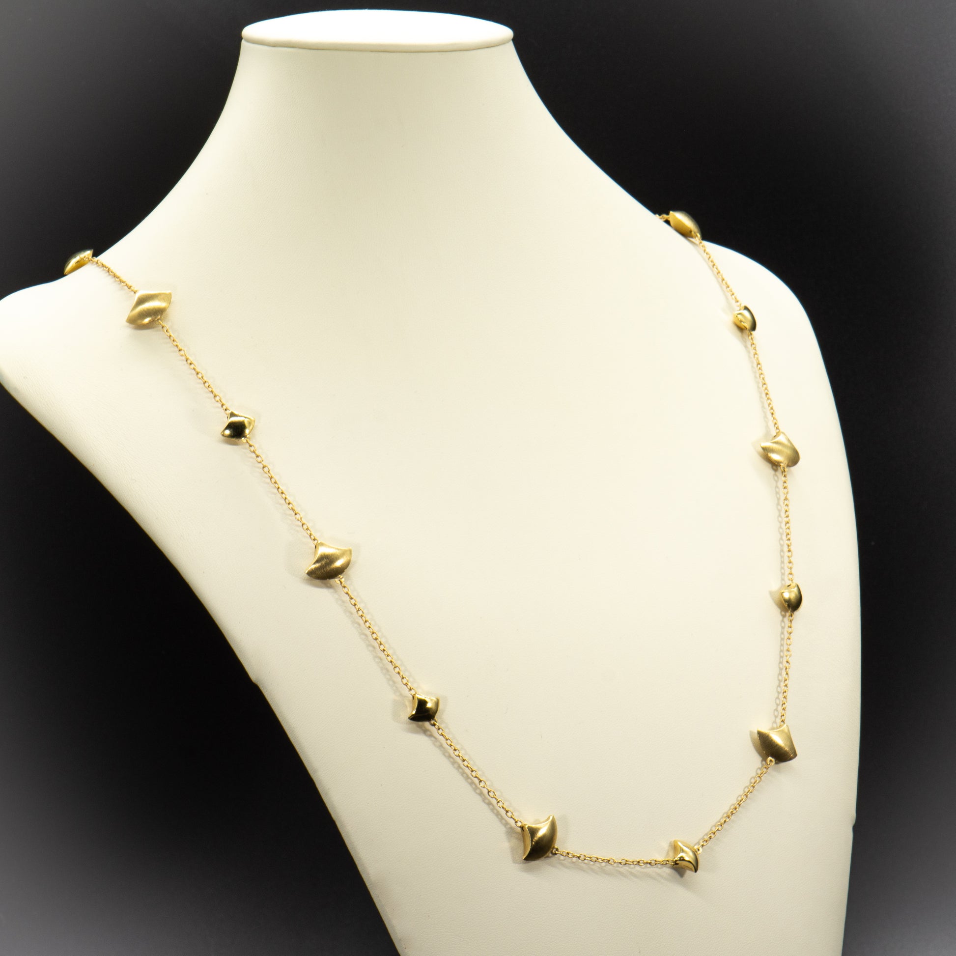 Esta cadena de oro amarillo de 18k es preciosa. Finamente elaborado con hermosos eslabones retorcidos y texturizados de oro de 18k y adornos geométricos de oro pulido y cepillado de tamaño alterno. Use este collar largo o como dos hebras.
