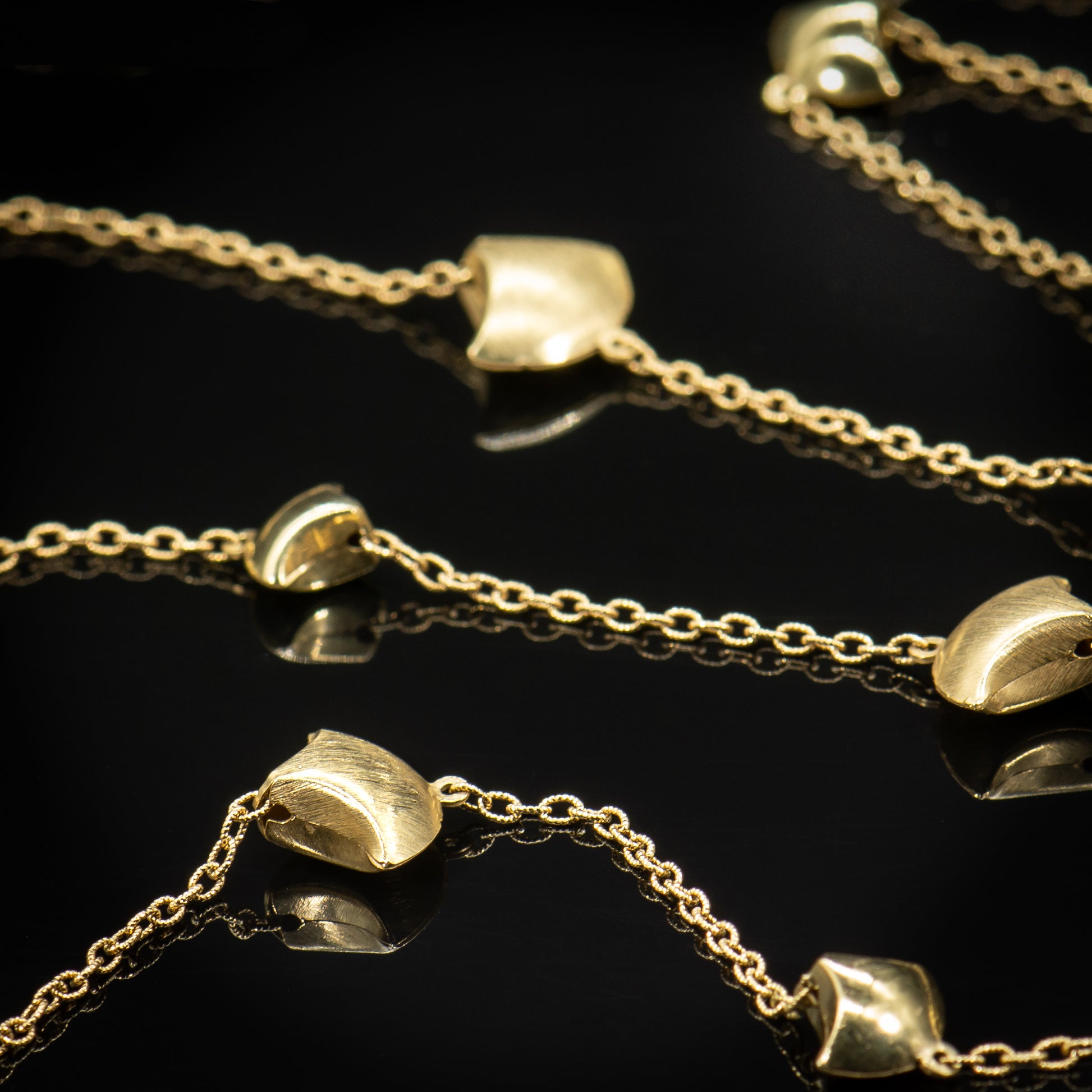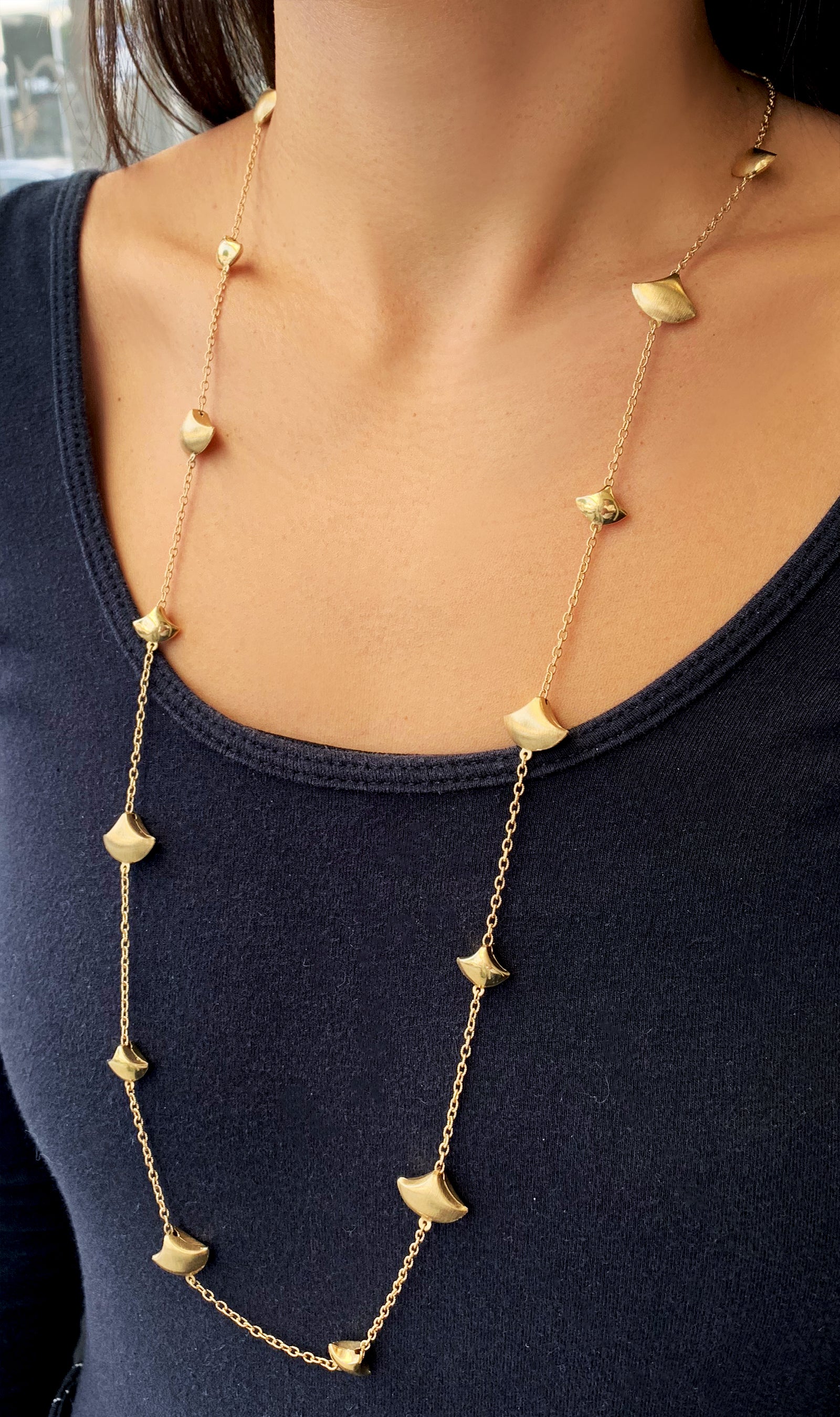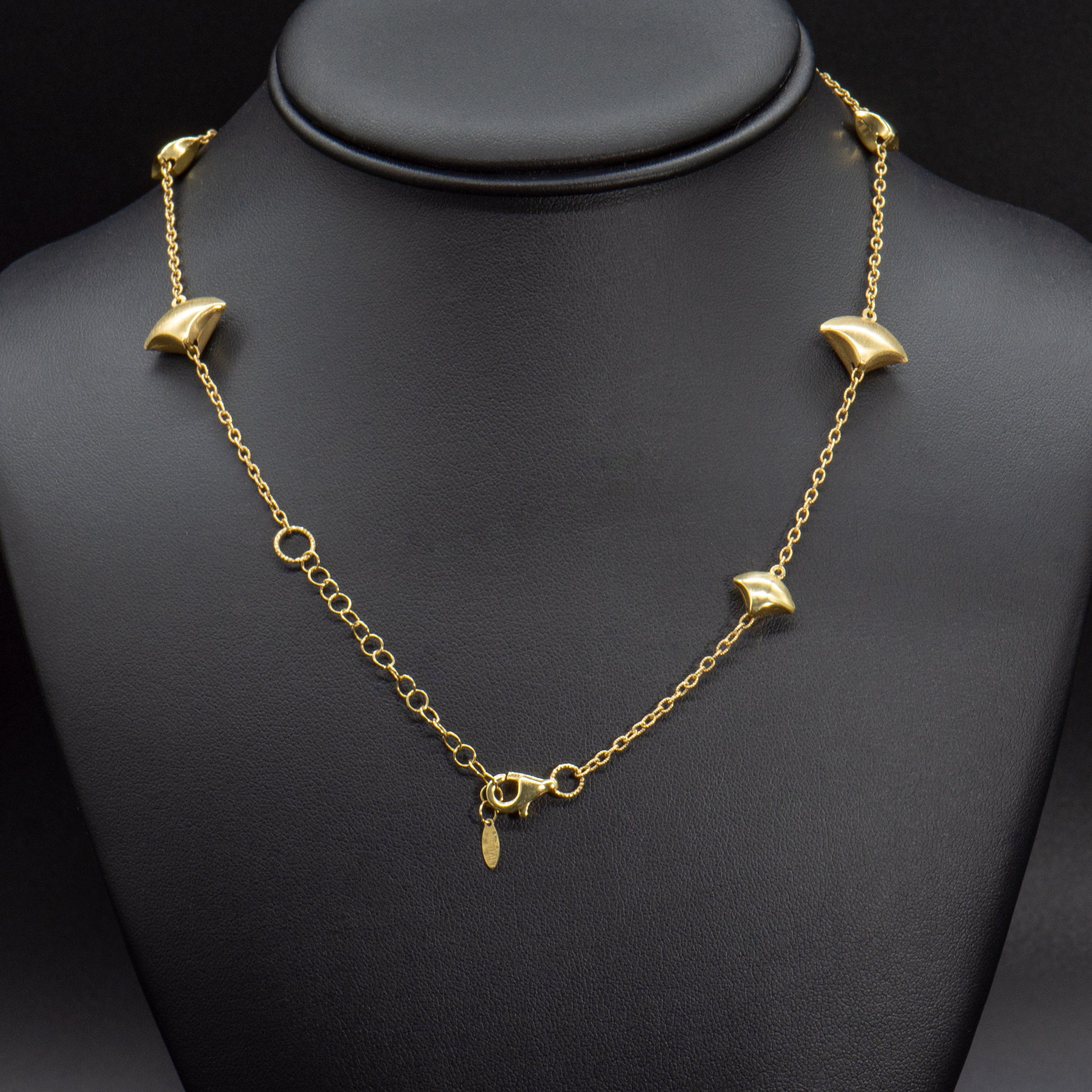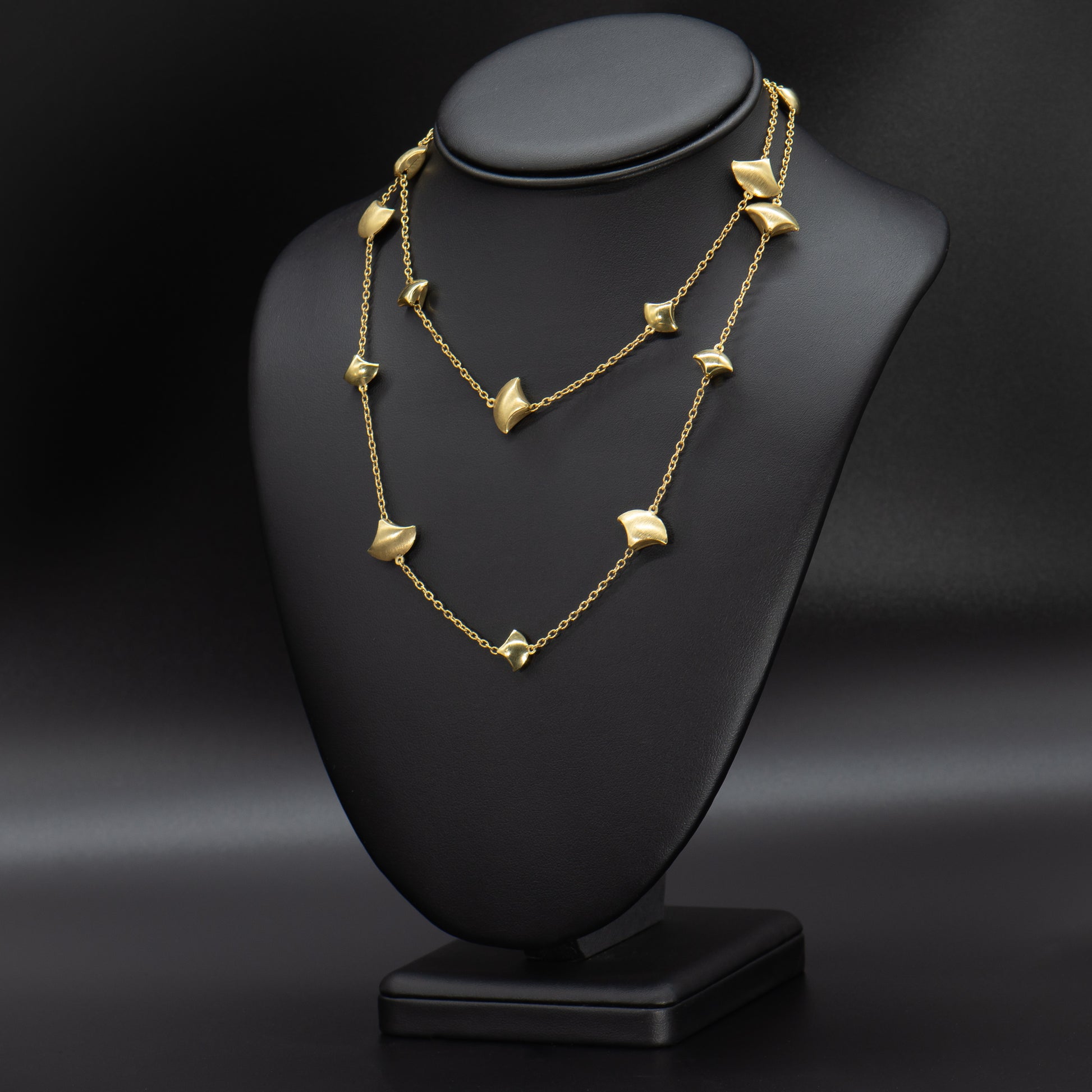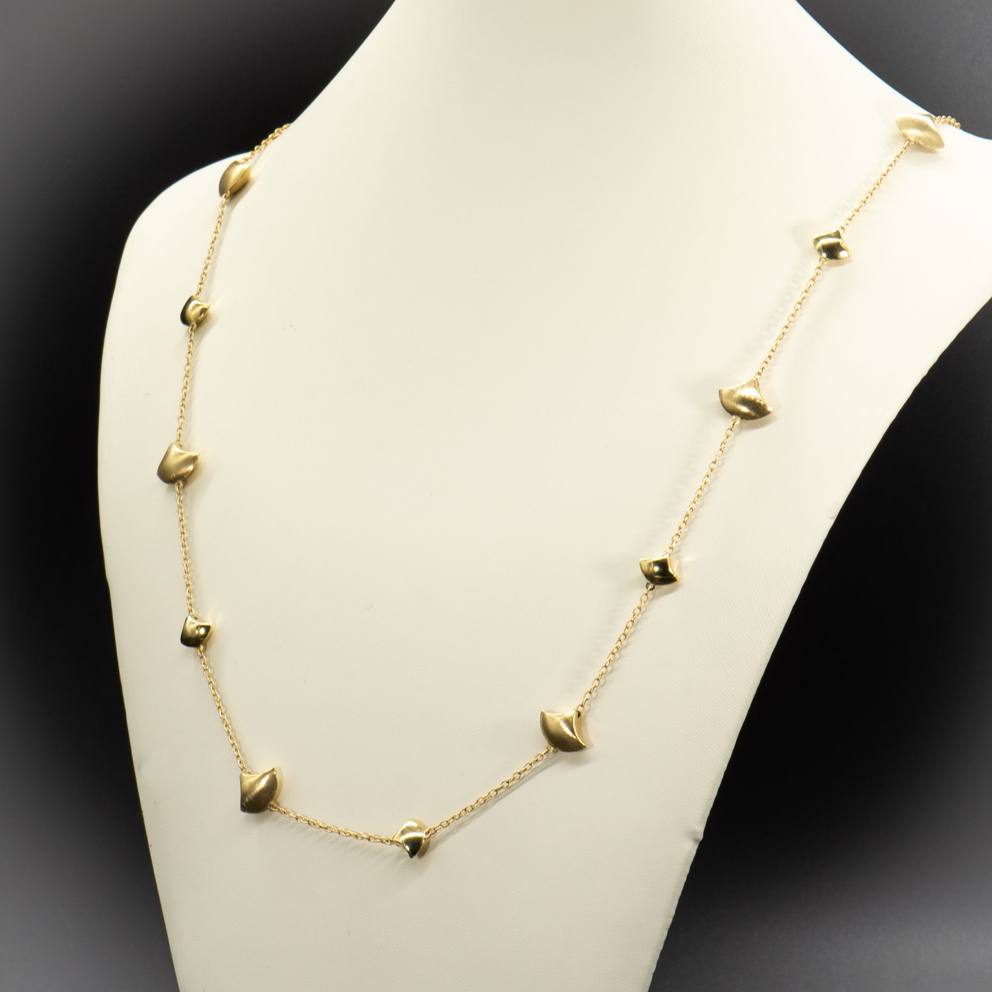Esta cadena de oro amarillo de 18k es preciosa. Finamente elaborado con hermosos eslabones retorcidos y texturizados de oro de 18k y adornos geométricos de oro pulido y cepillado de tamaño alterno. Use este collar largo o como dos hebras.