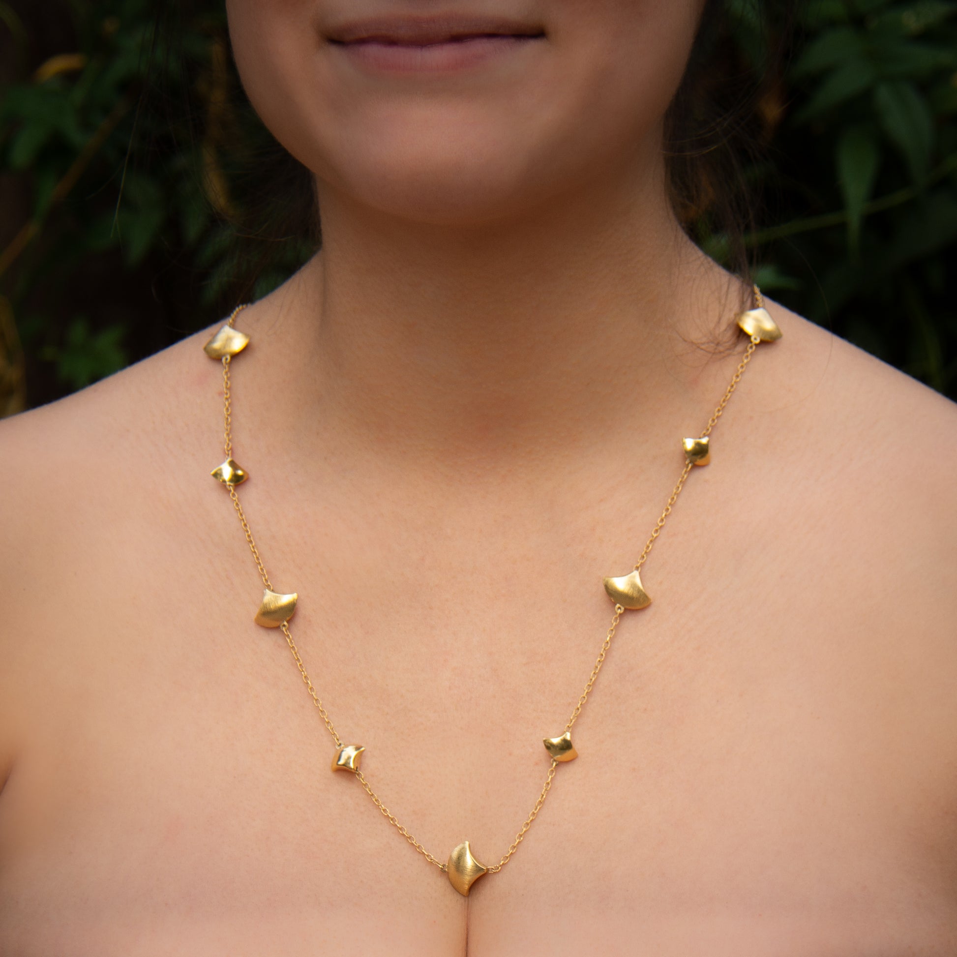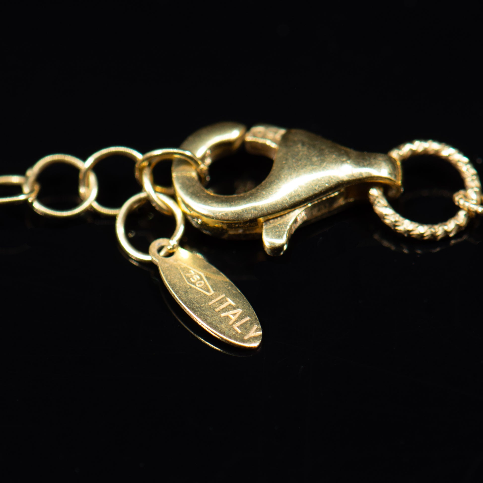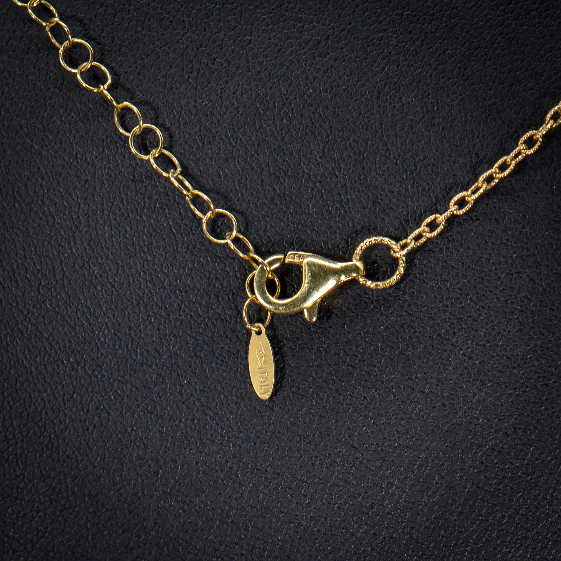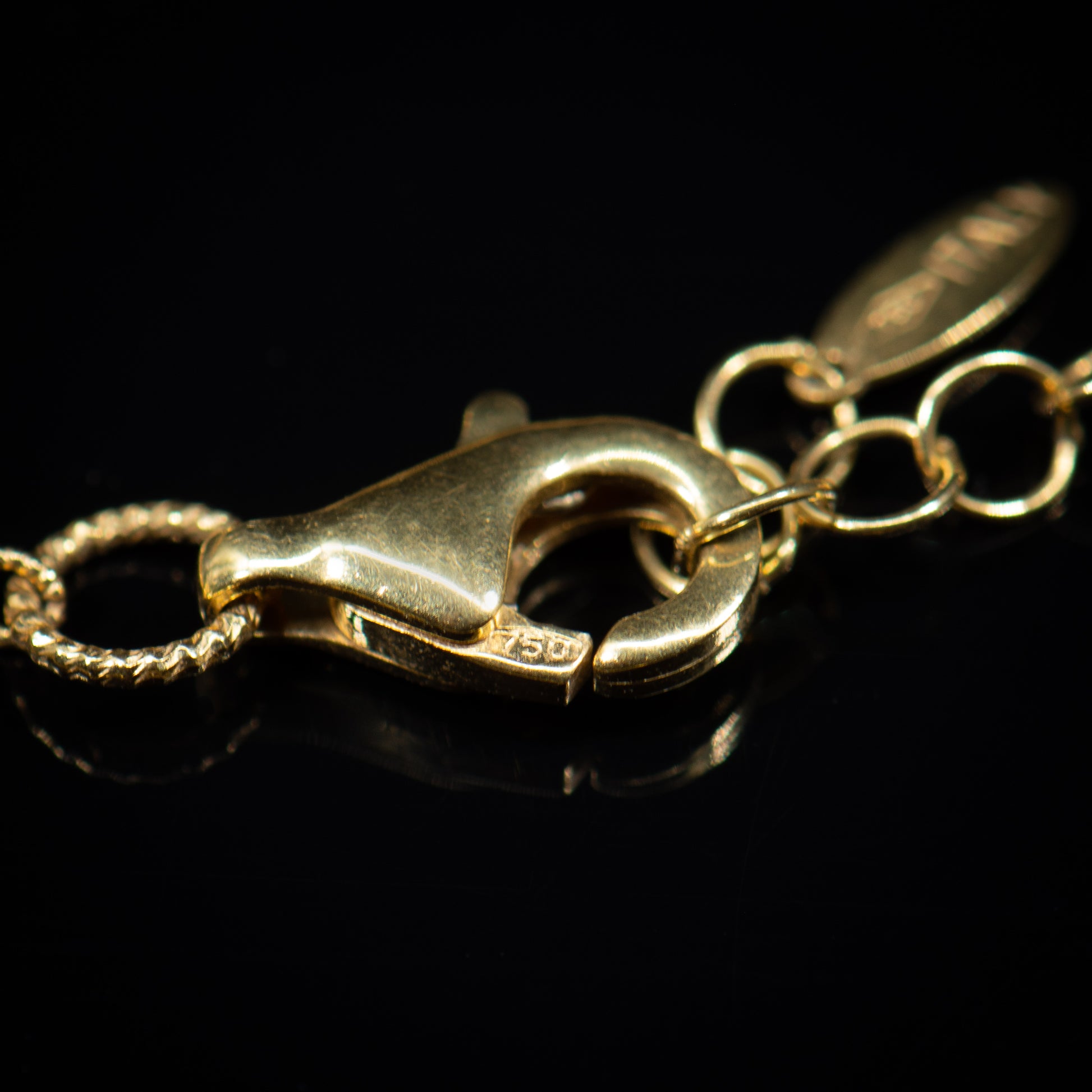 Esta cadena de oro amarillo de 18k es preciosa. Finamente elaborado con hermosos eslabones retorcidos y texturizados de oro de 18k y adornos geométricos de oro pulido y cepillado de tamaño alterno. Use este collar largo o como dos hebras.