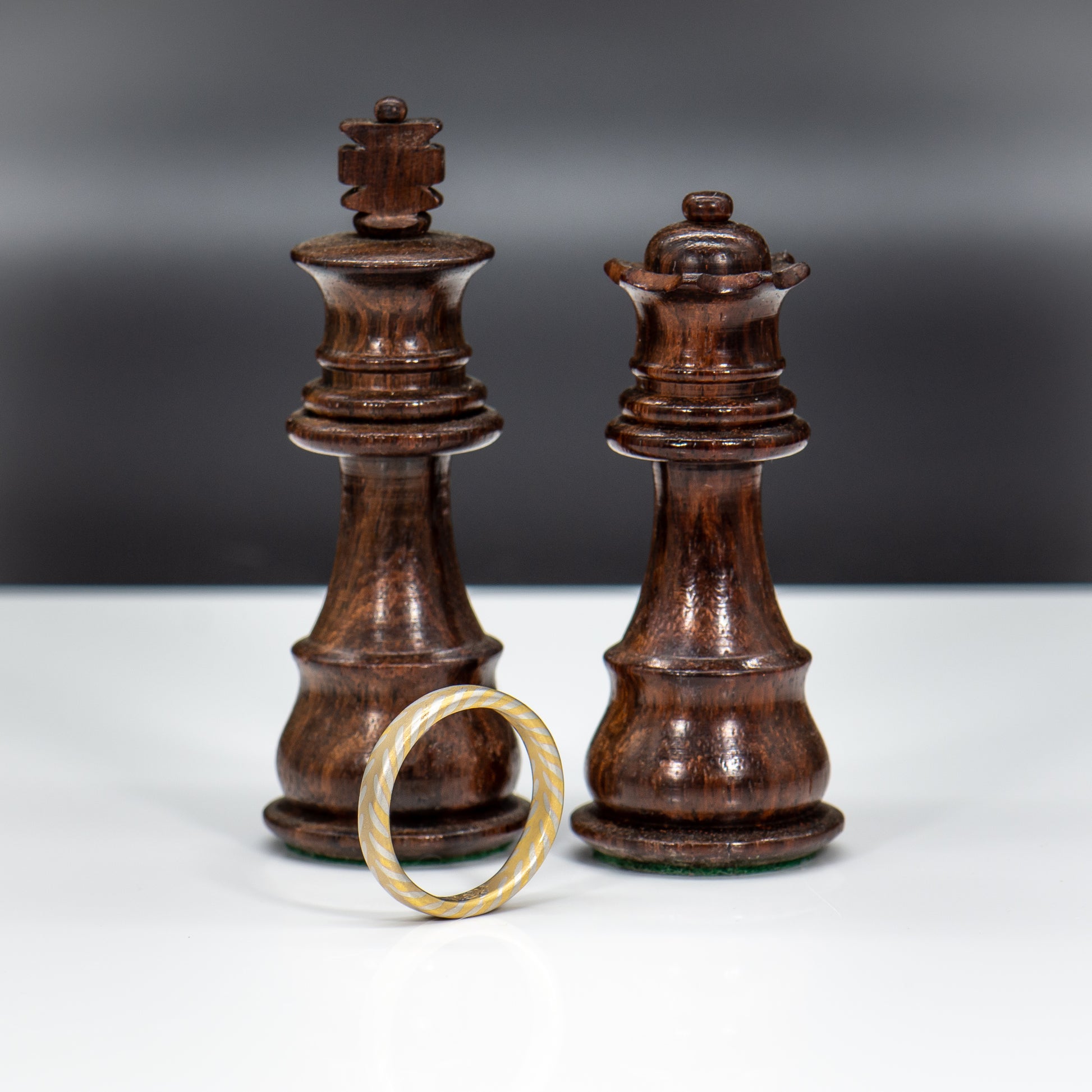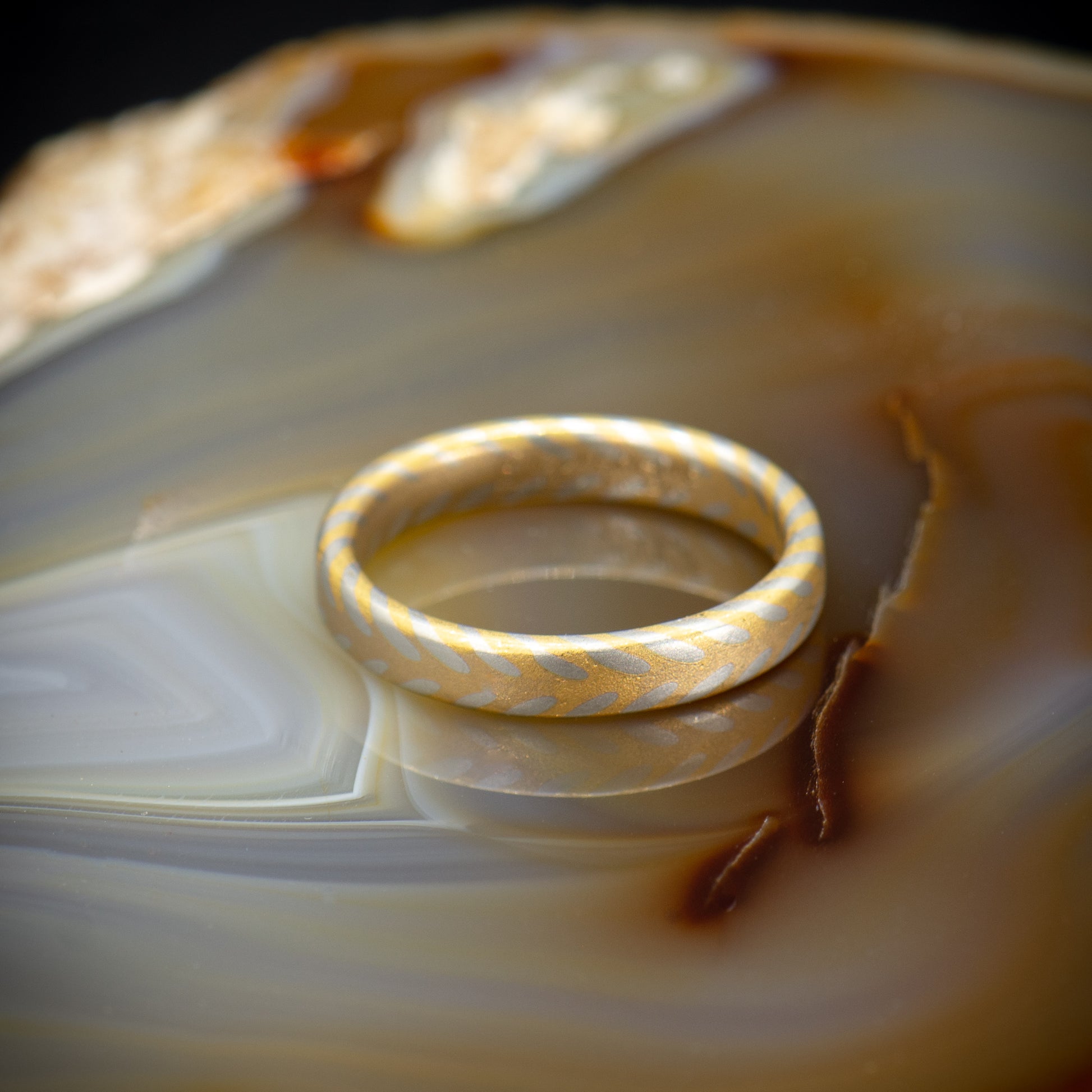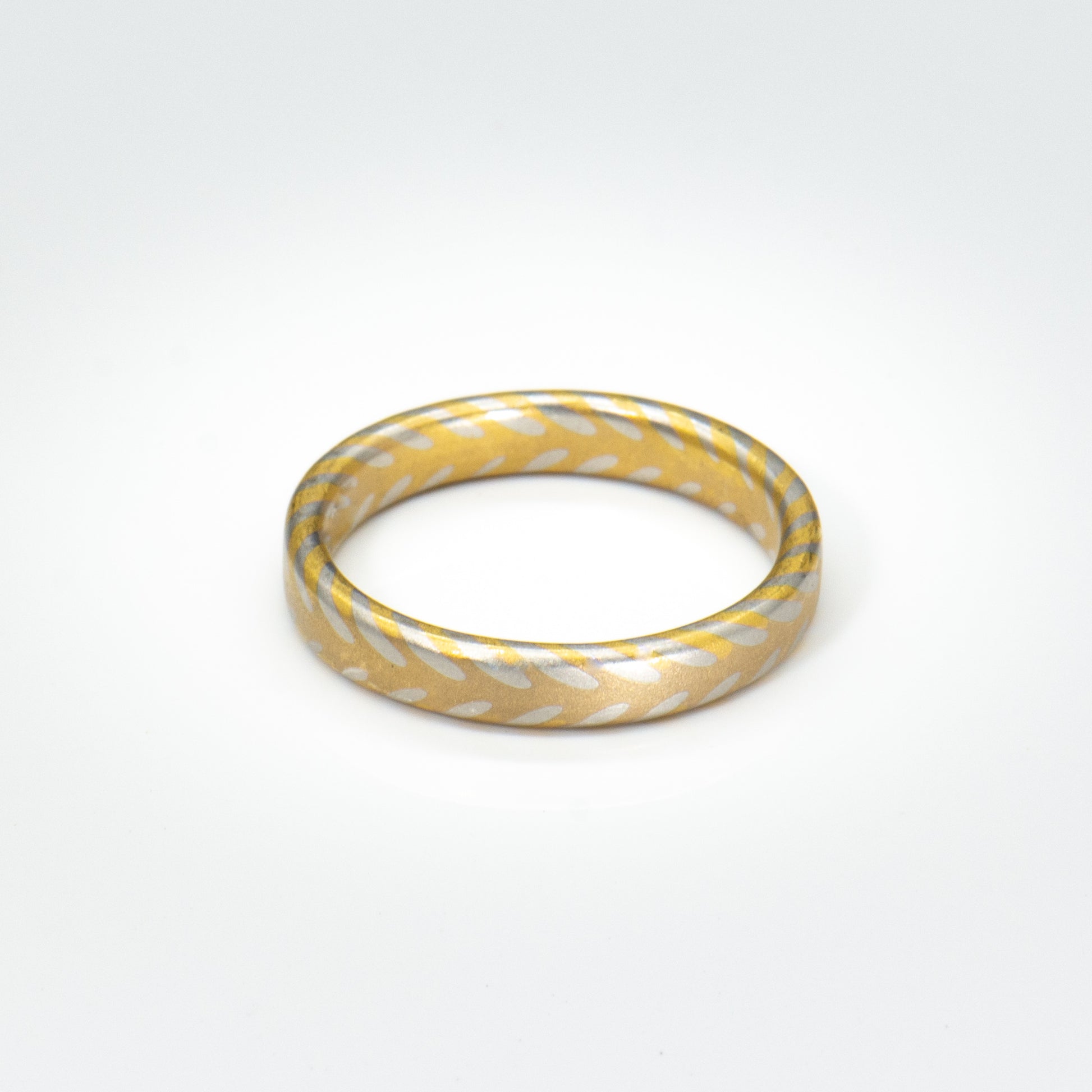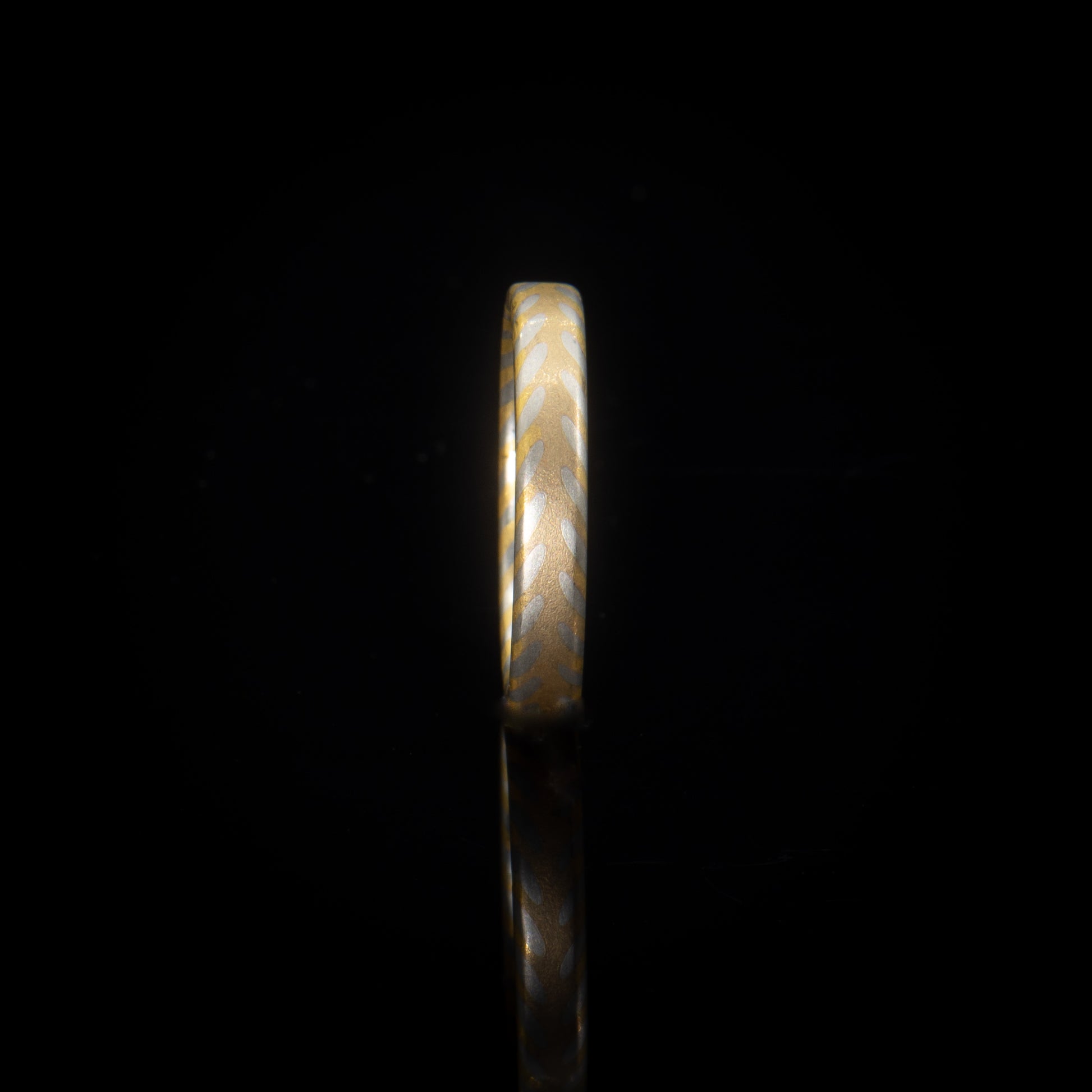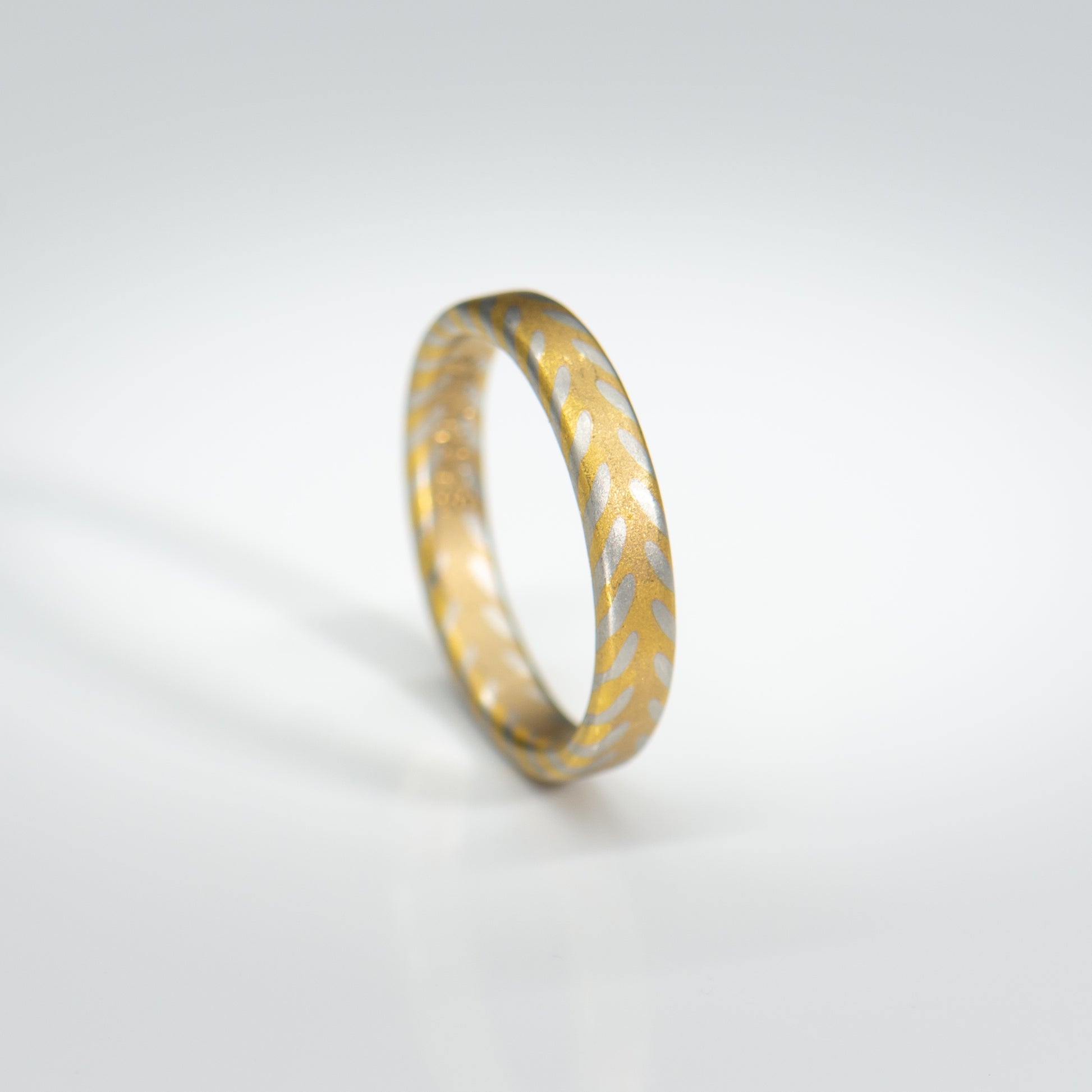 Este extraordinario anillo está elaborado en platino adornado con oro de 22k con un sutil motivo de volutas. Un anillo cautivador que es ideal para hombres o mujeres y es perfecto para usar solo o junto con tus favoritos.