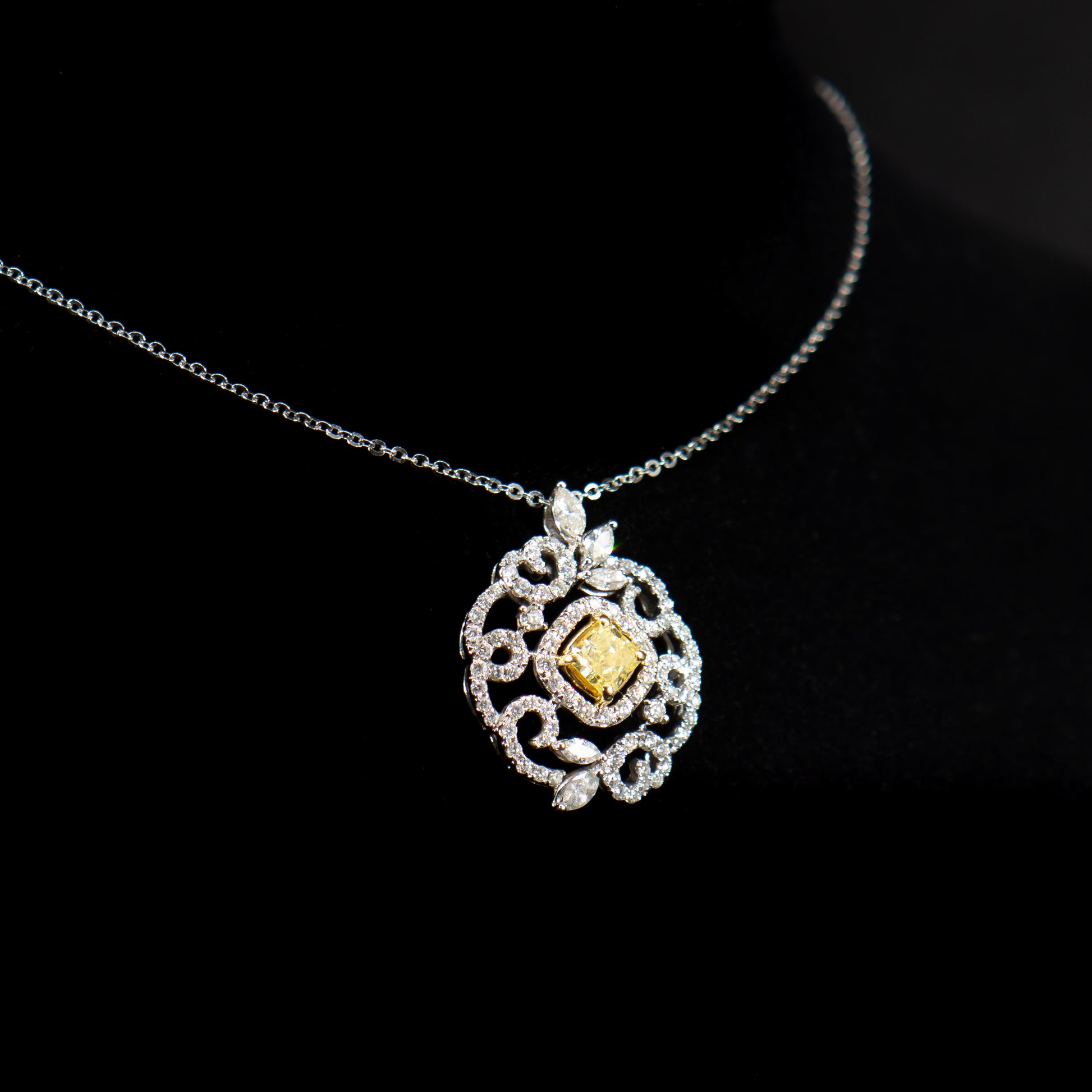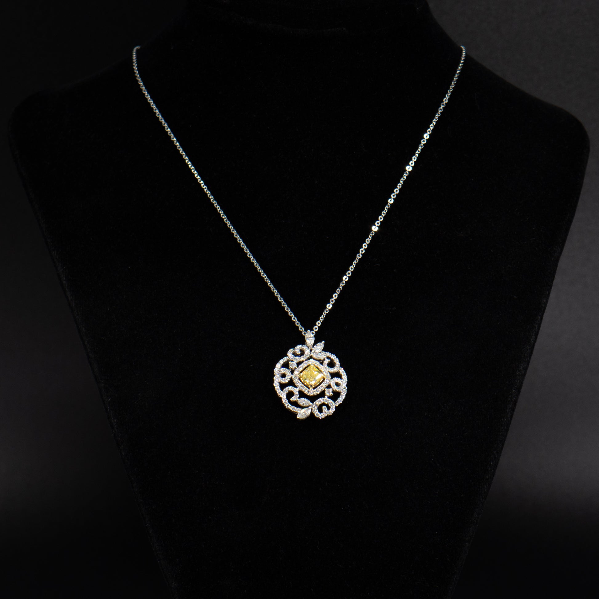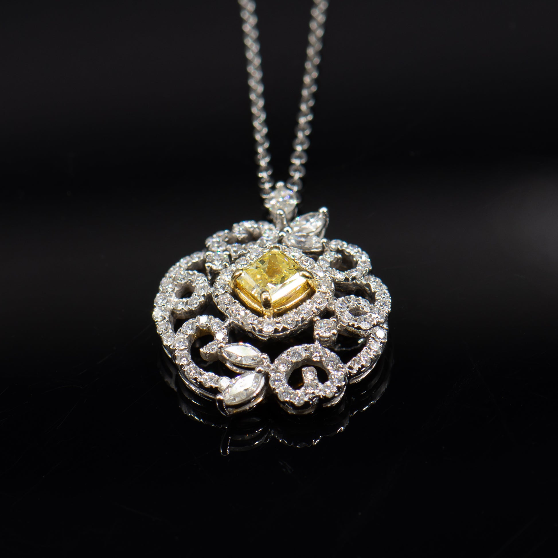 Collar con colgante de diamantes blancos y diamantes amarillos naturales de lujo de 3.00 quilates de 18 quilates