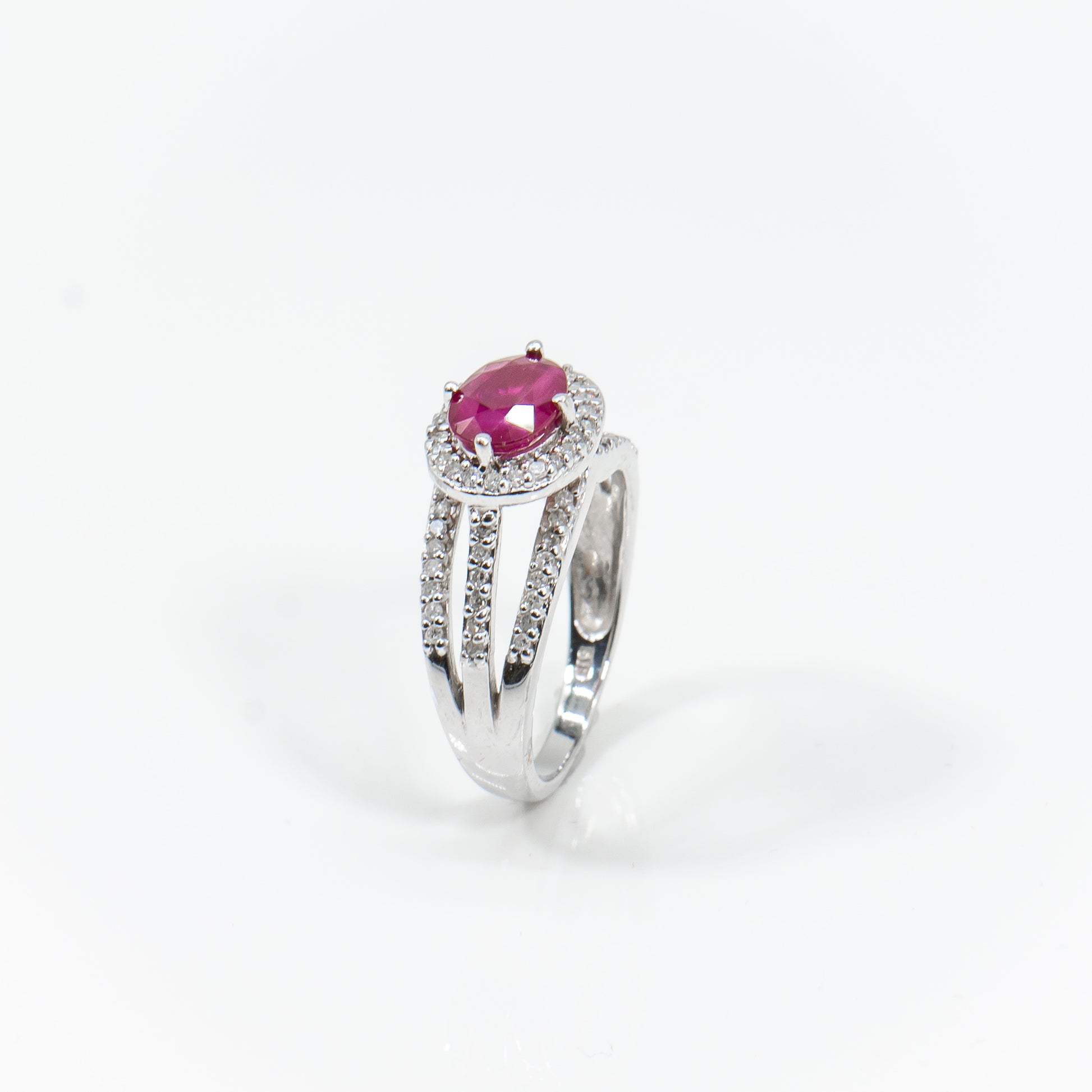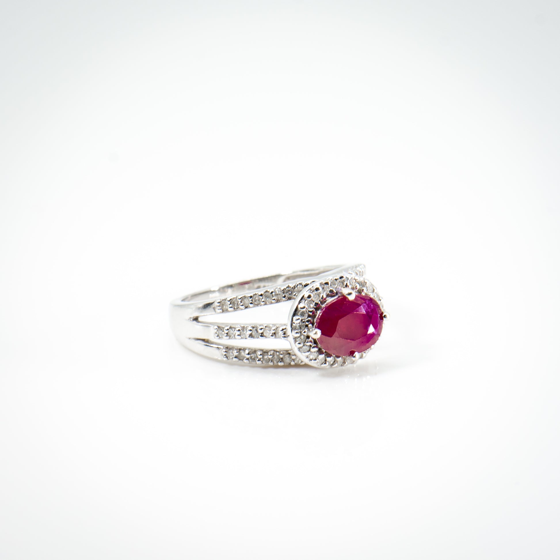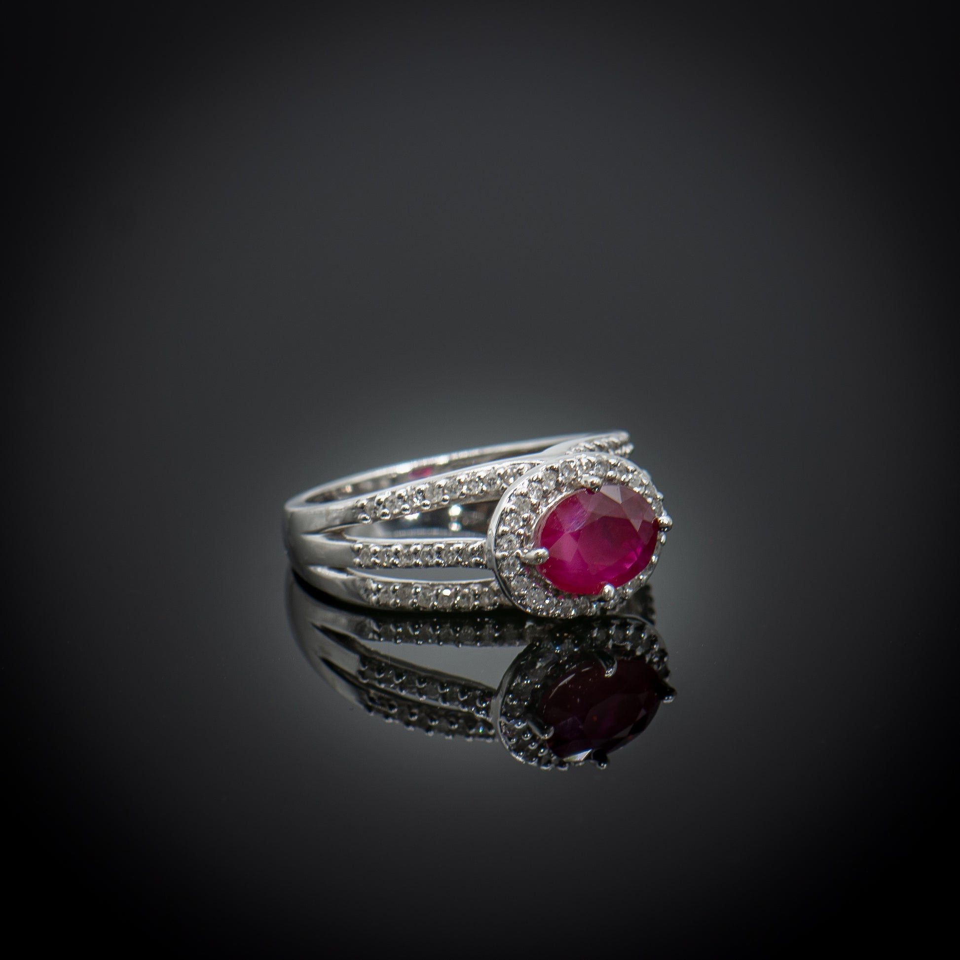 Oro blanco, rubí natural de 1,40 quilates, anillo de diamantes
