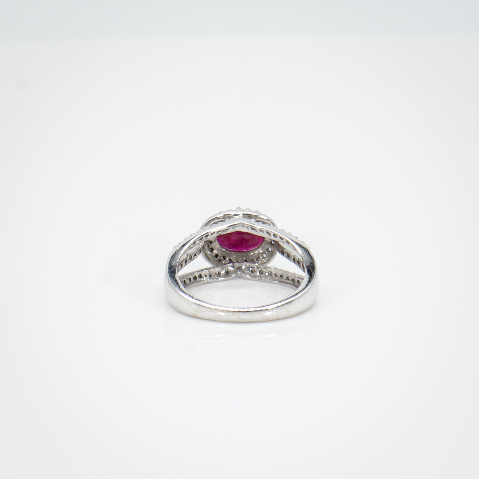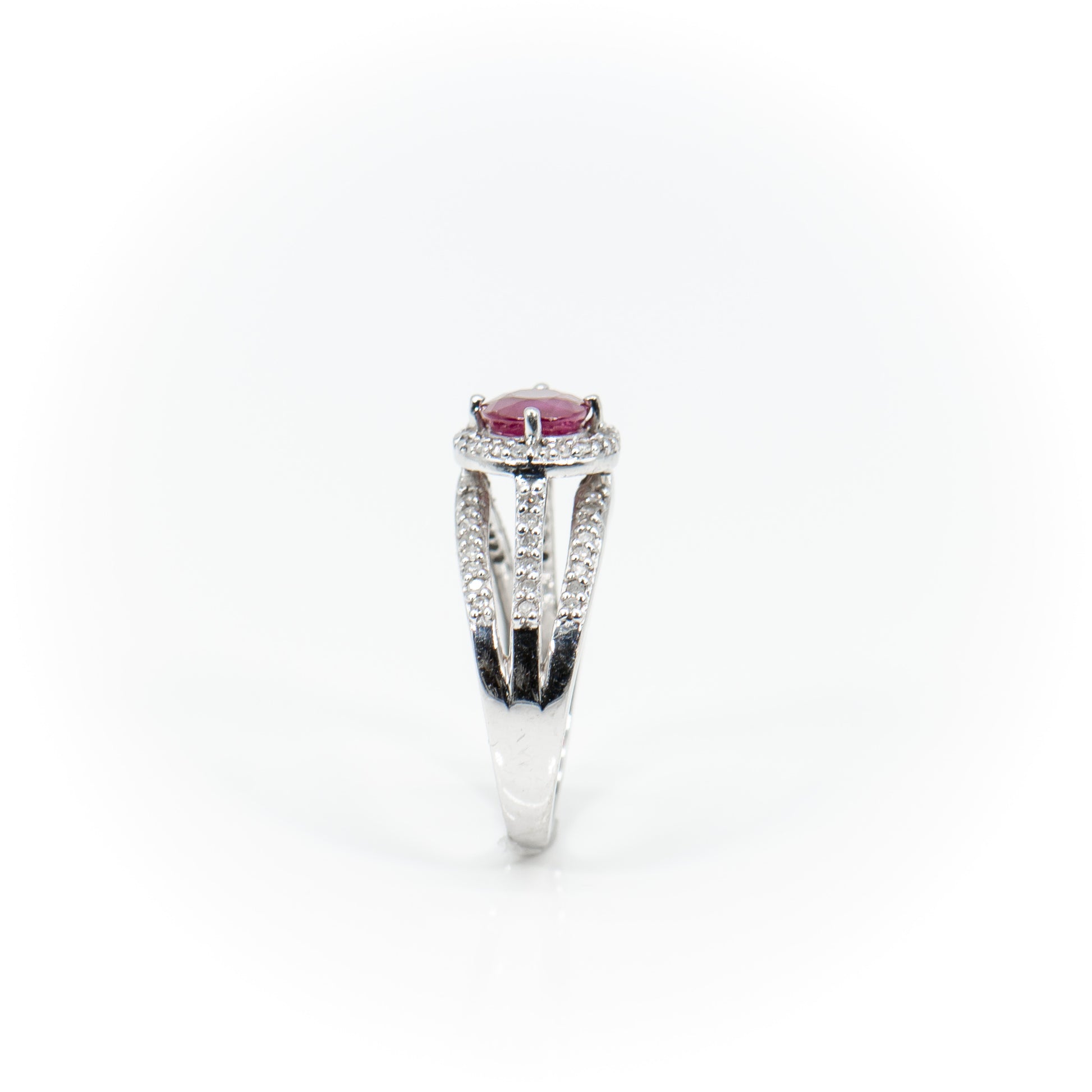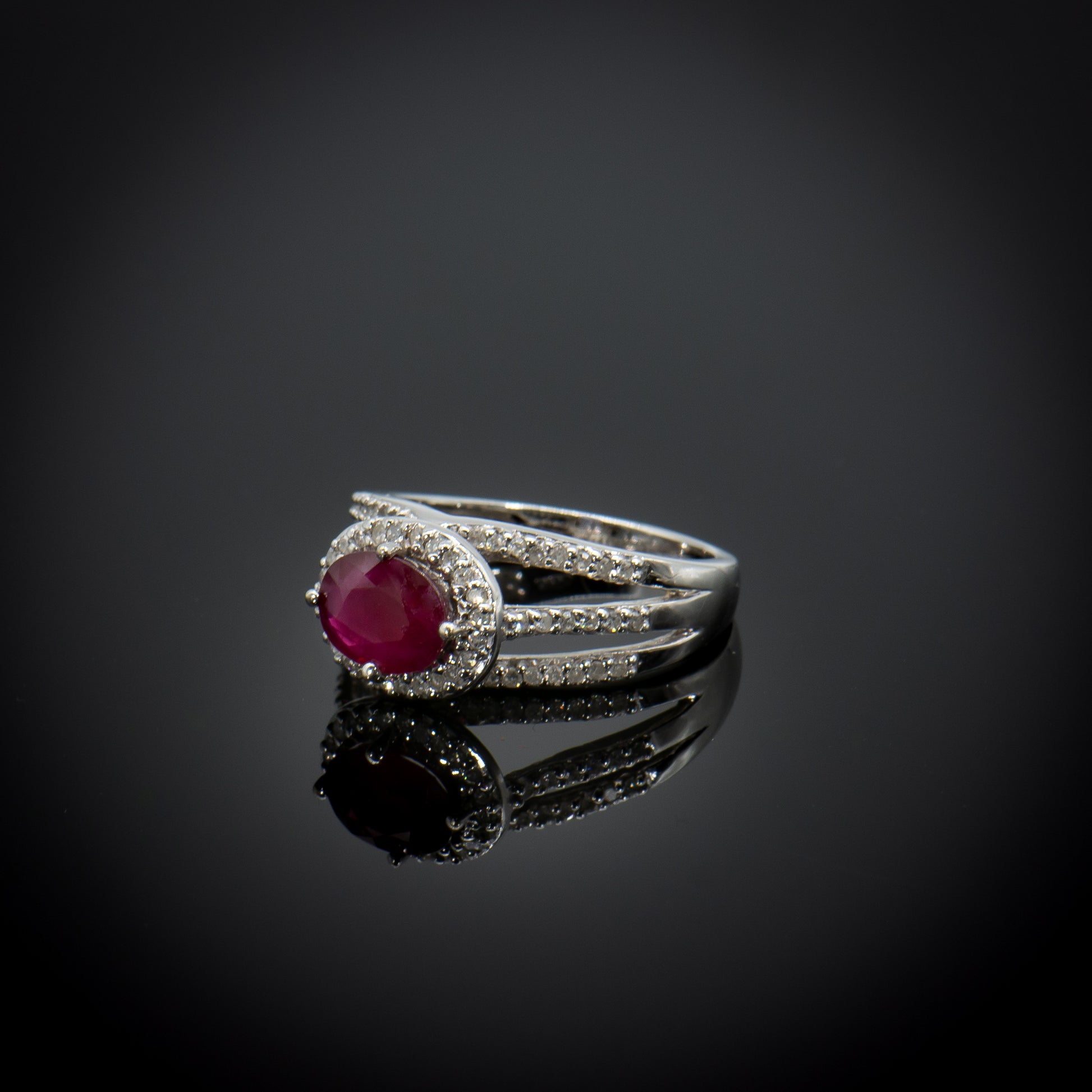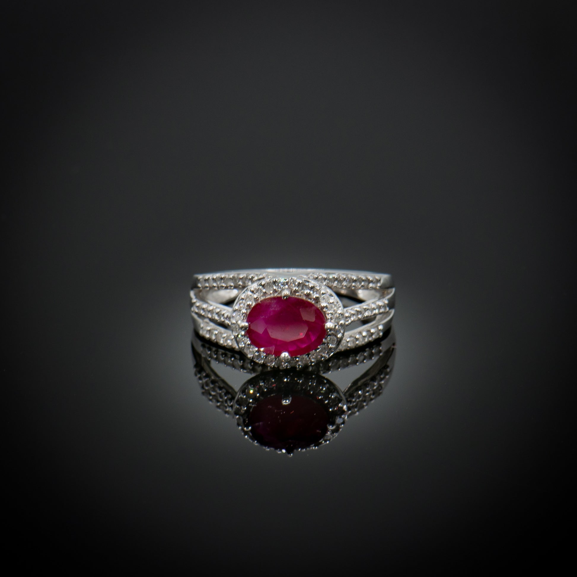 Oro blanco, rubí natural de 1,40 quilates, anillo de diamantes