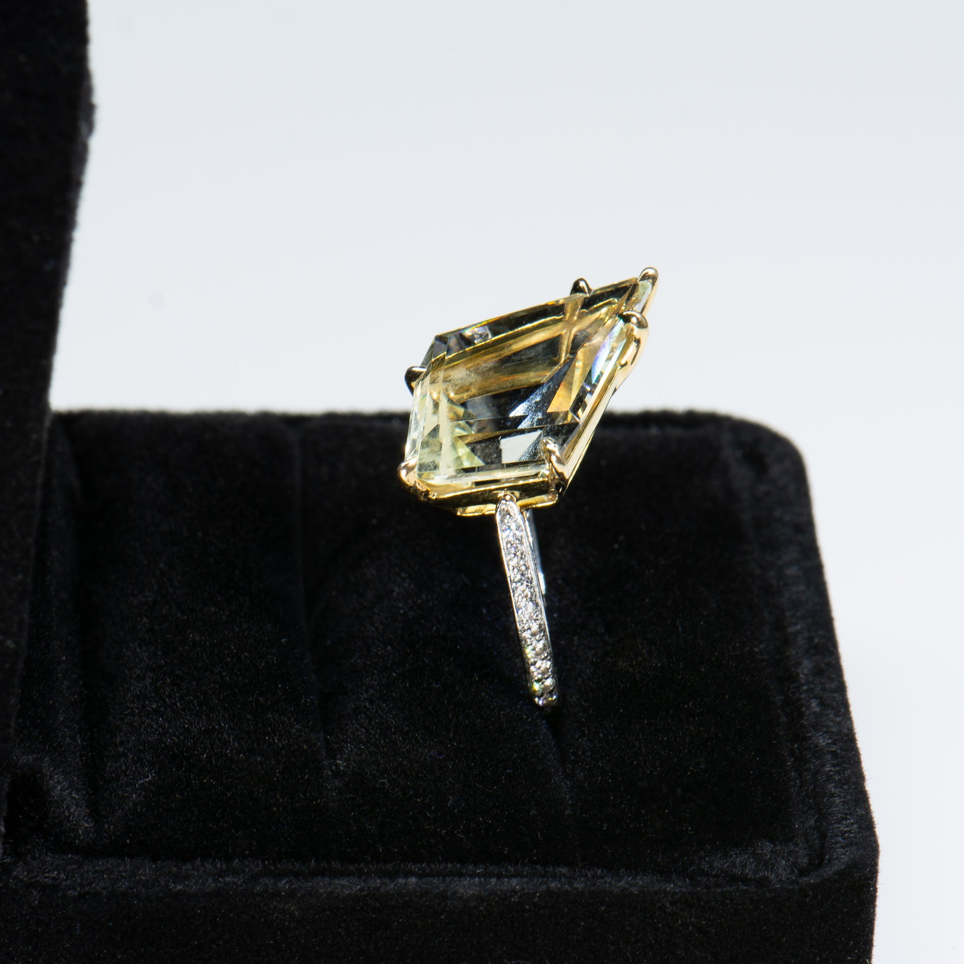 This artistic one-of-a-kind ring is captivating. Using the finest materials, the designer has created a ring that is a piece of wearable art.