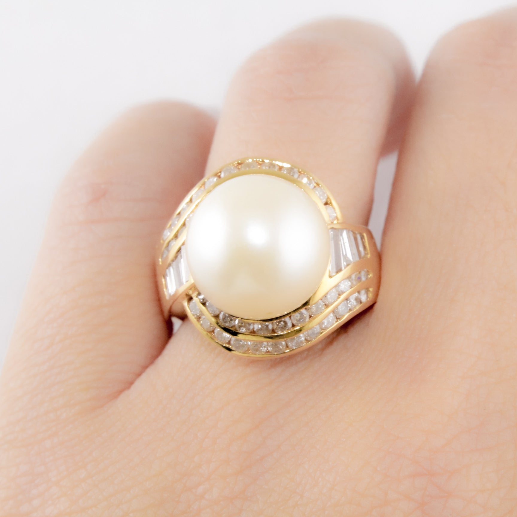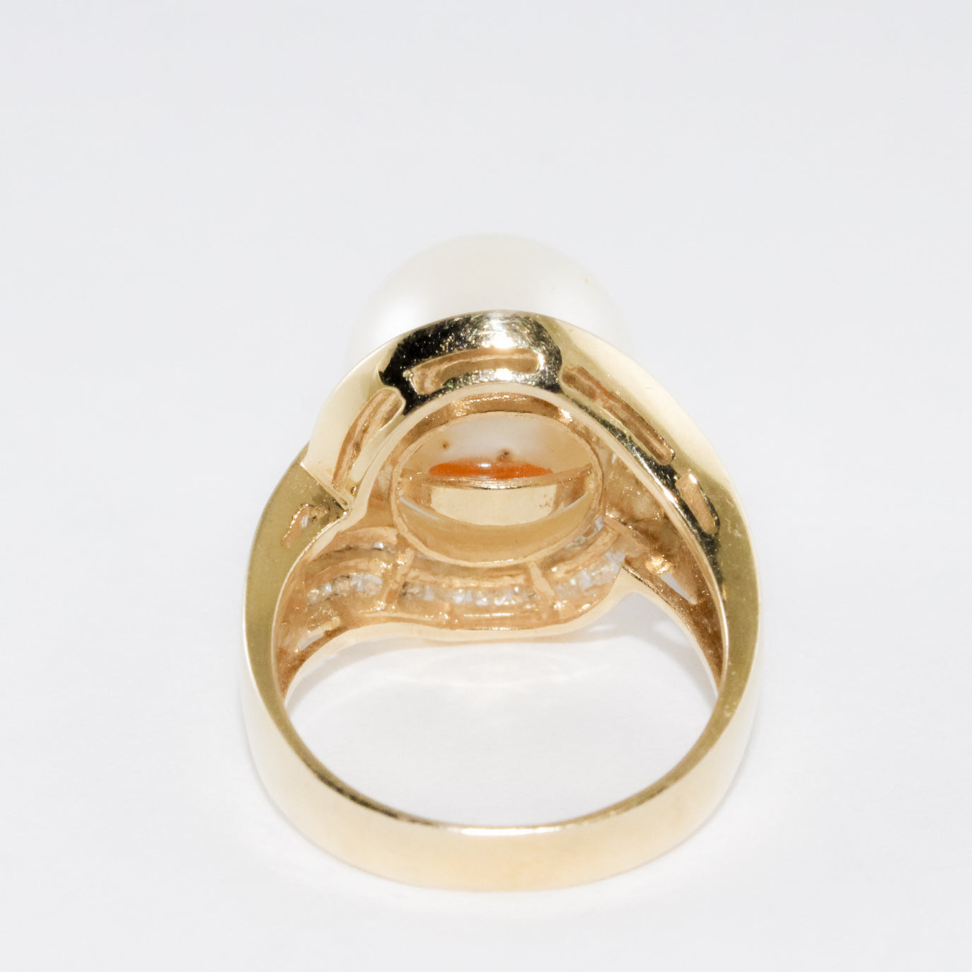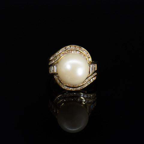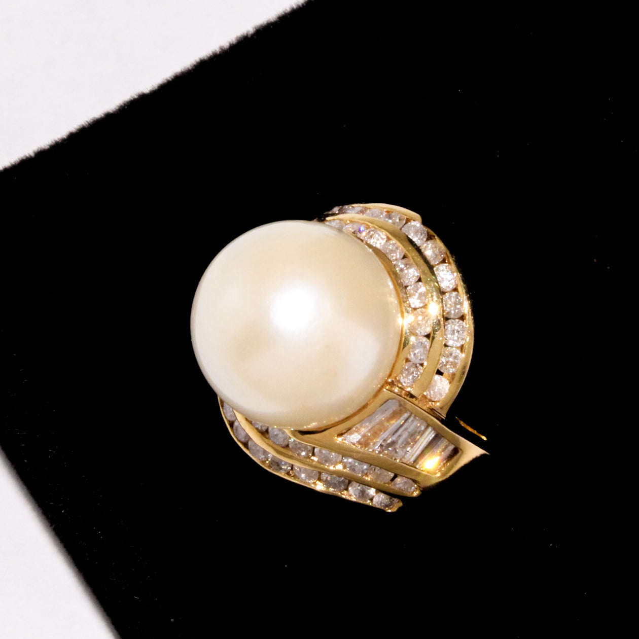 Anillo de oro, perlas de los mares del Sur y diamantes