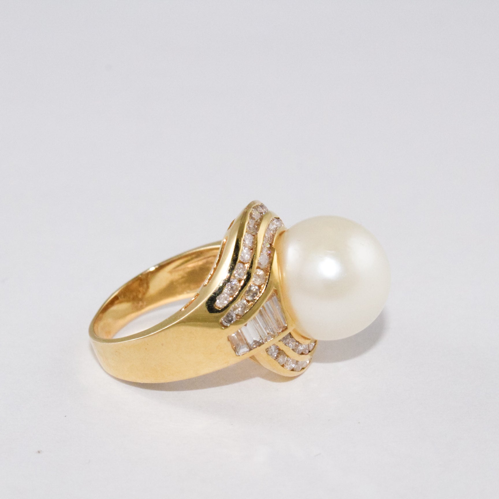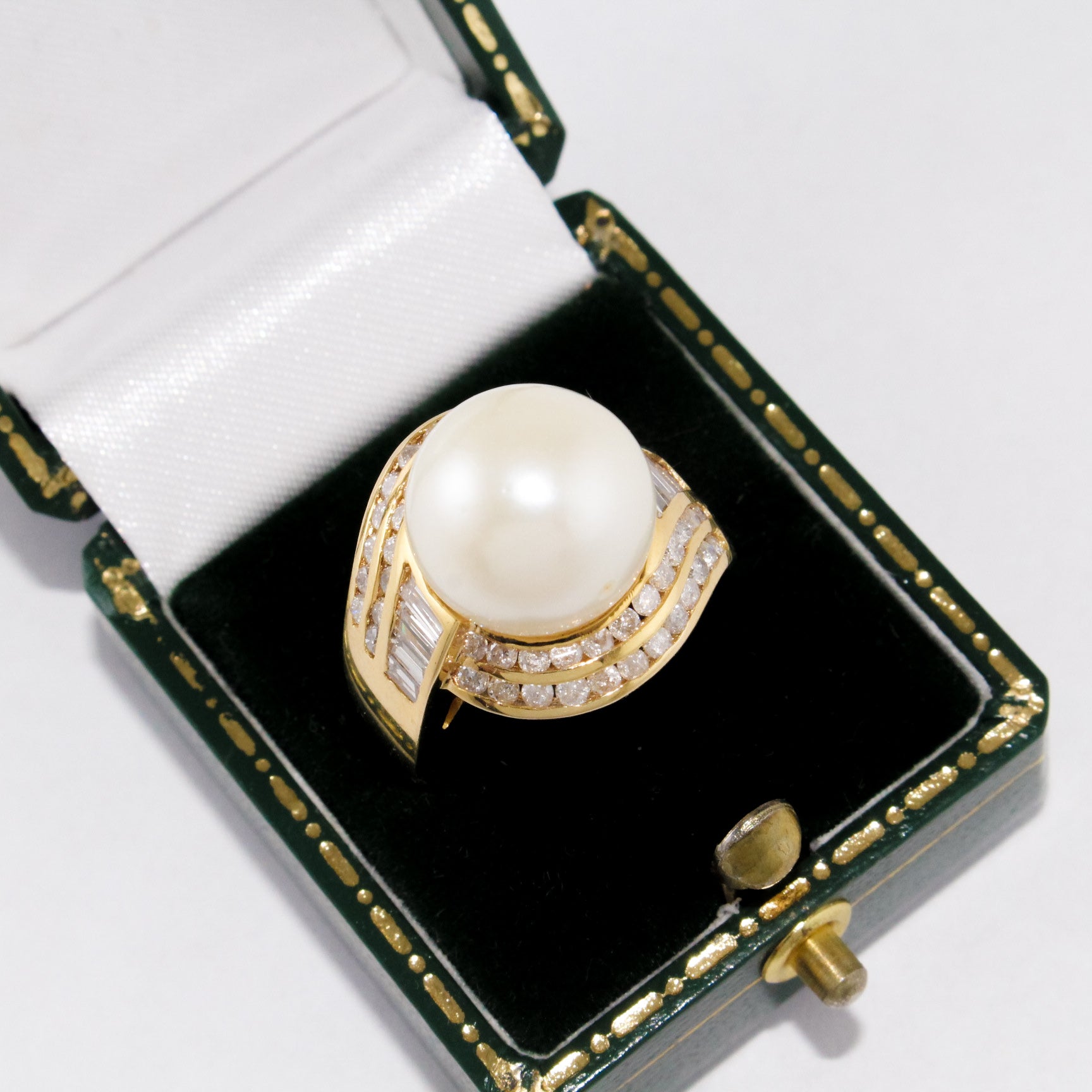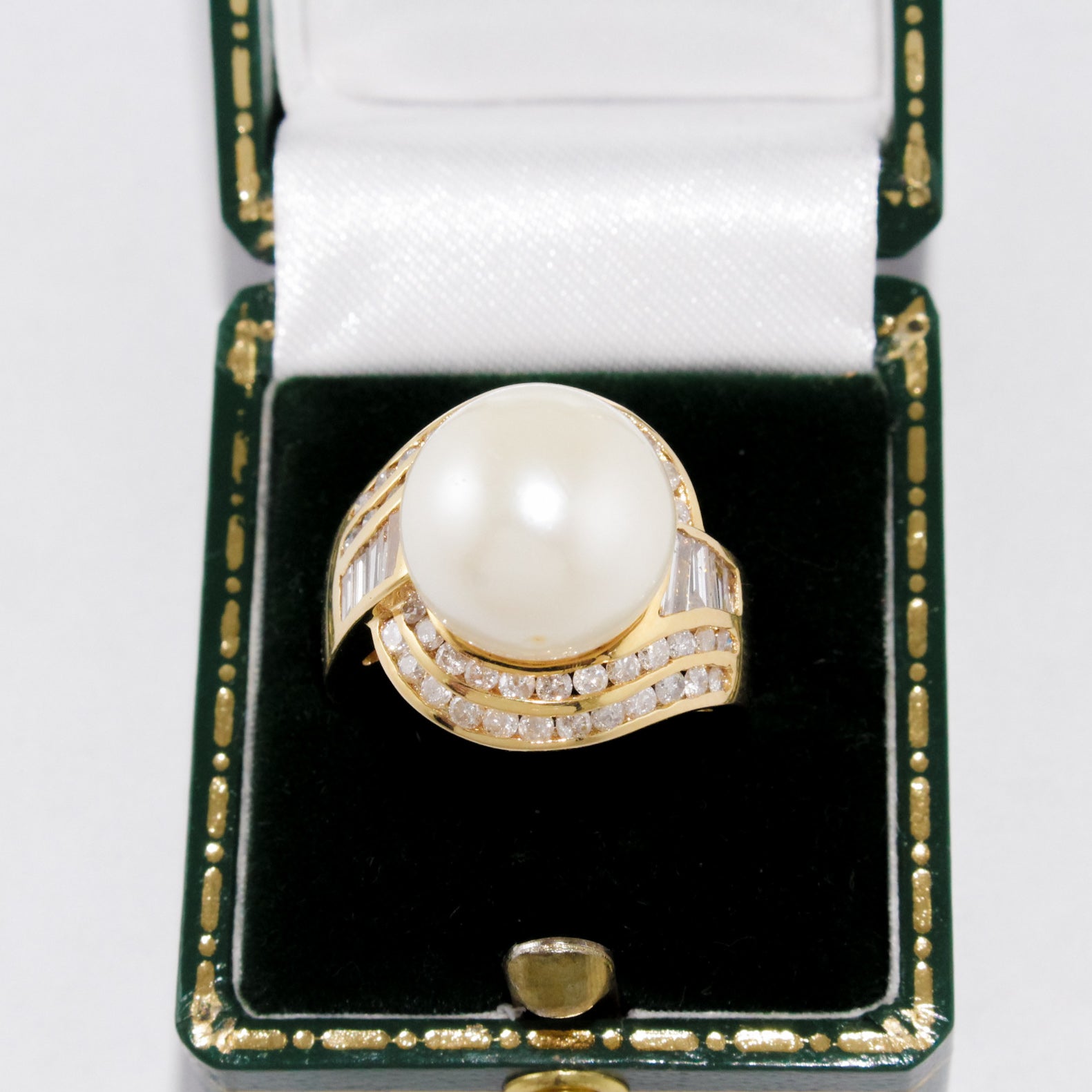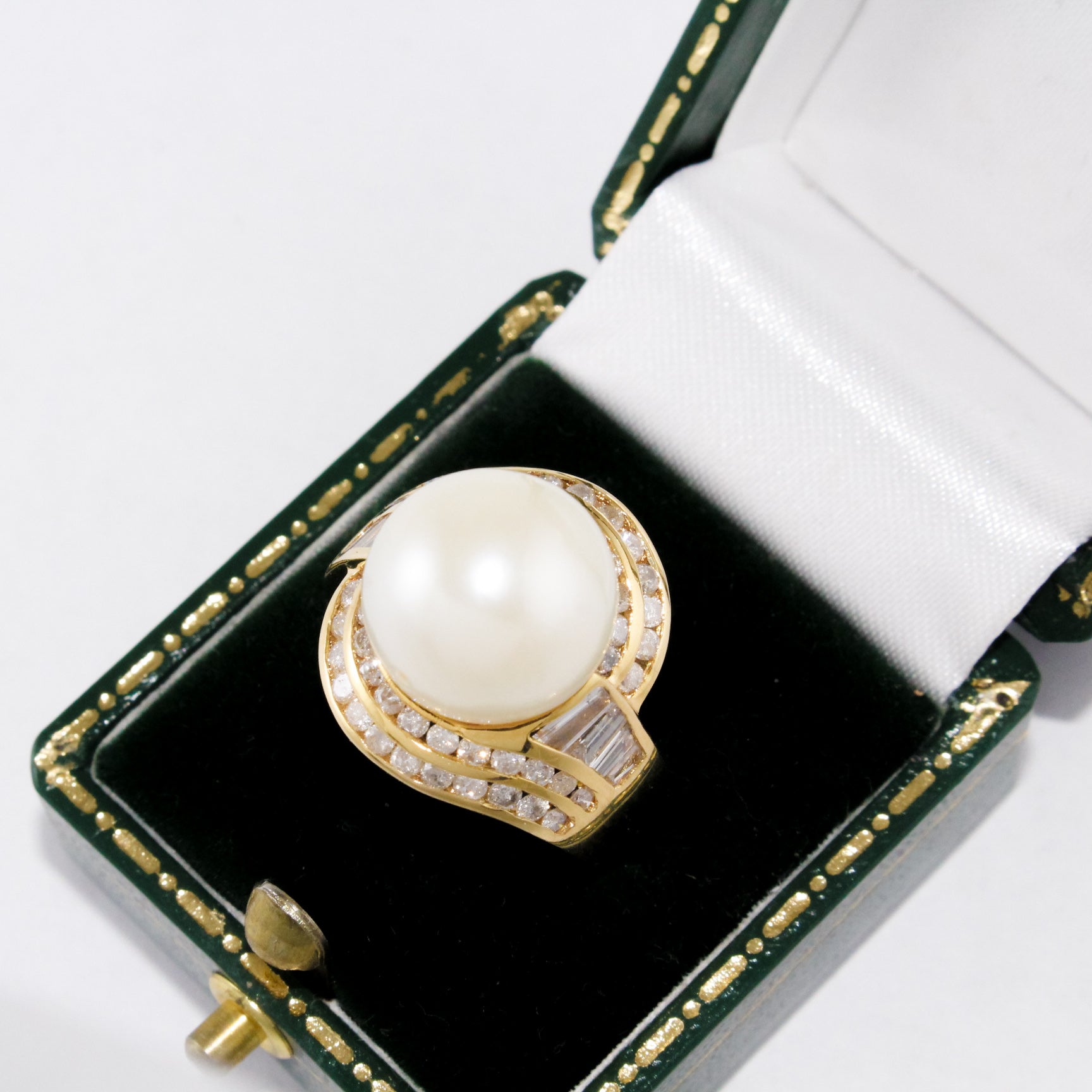Anillo de oro, perlas de los mares del Sur y diamantes