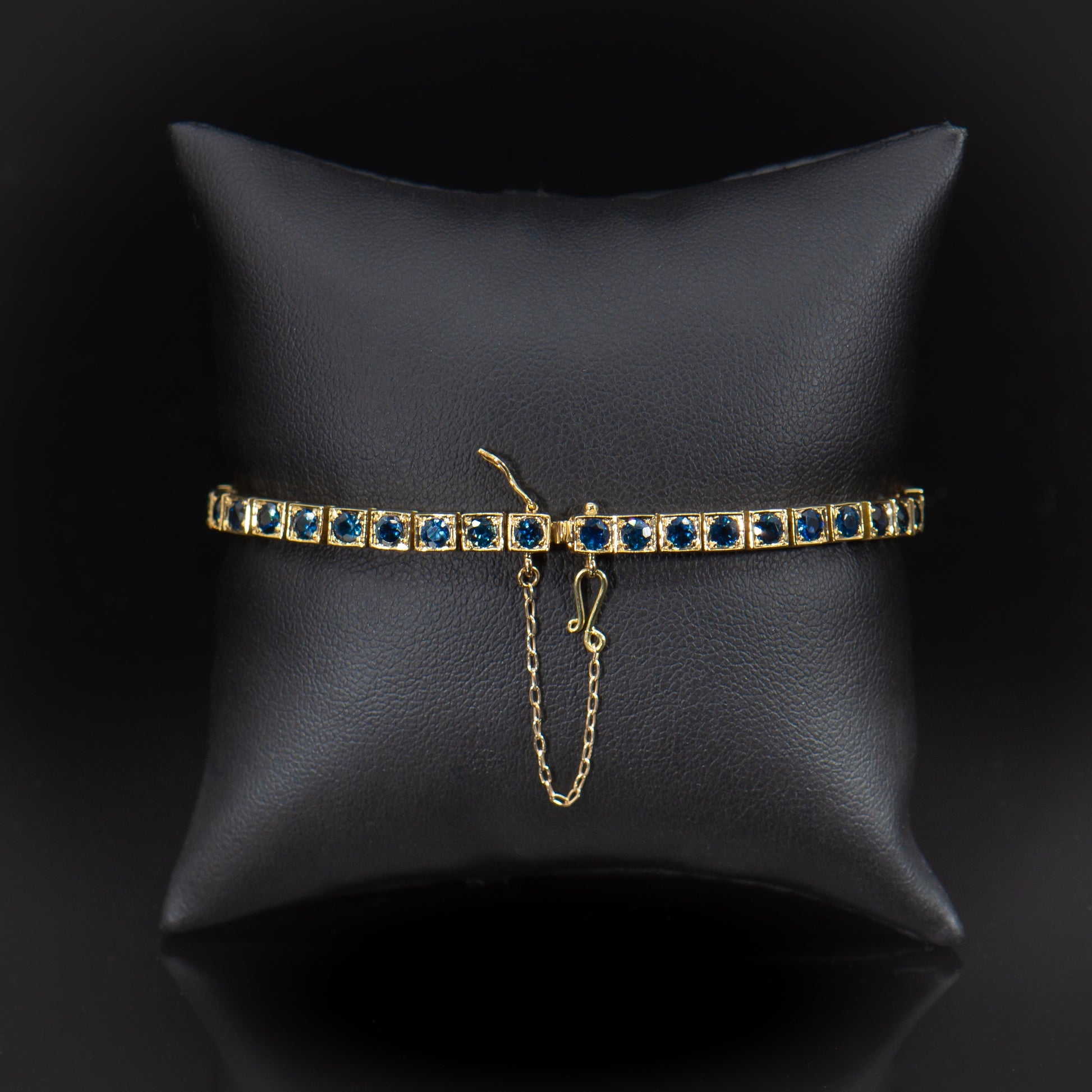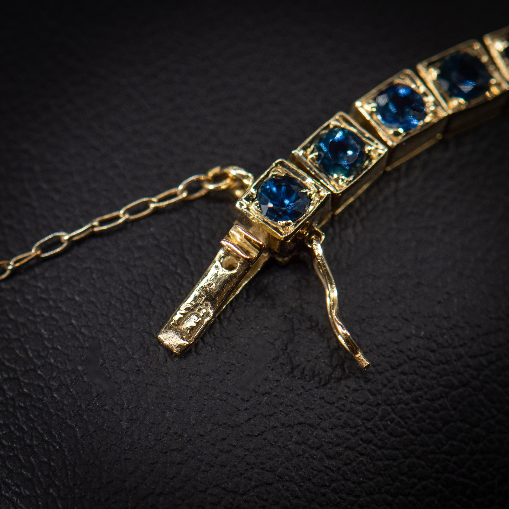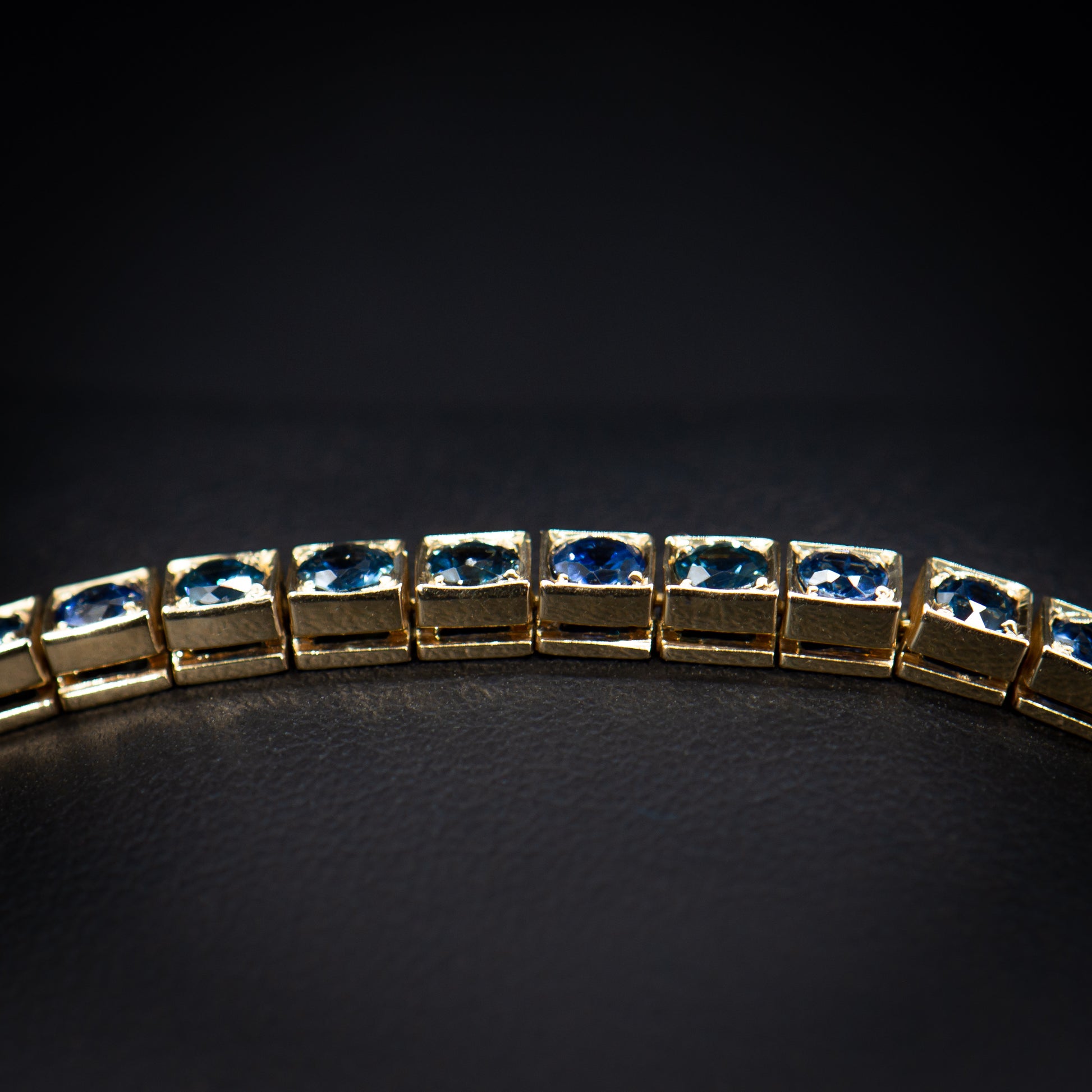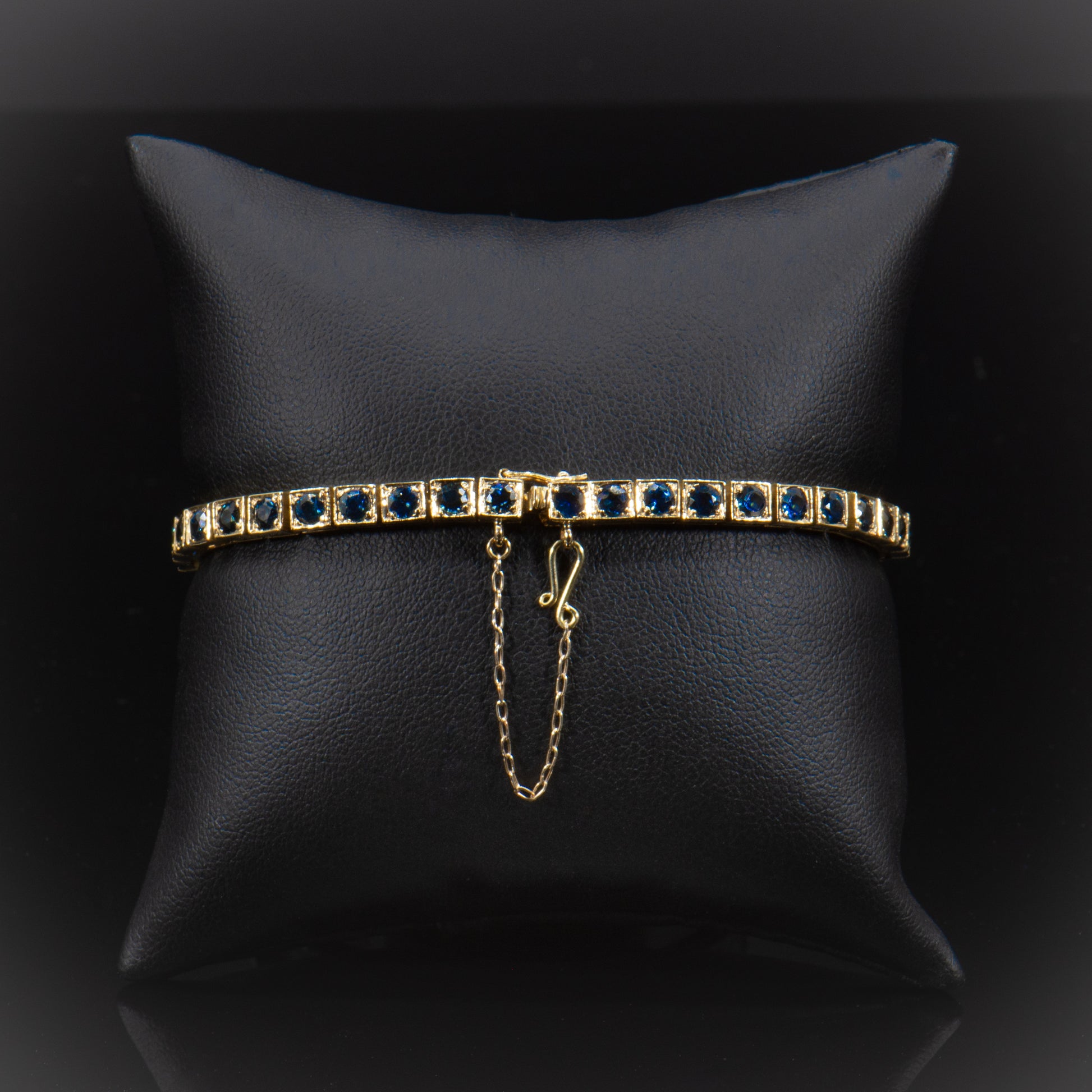 Brazalete de tenis de zafiro azul vintage de oro de 18 k, 6,00 quilates