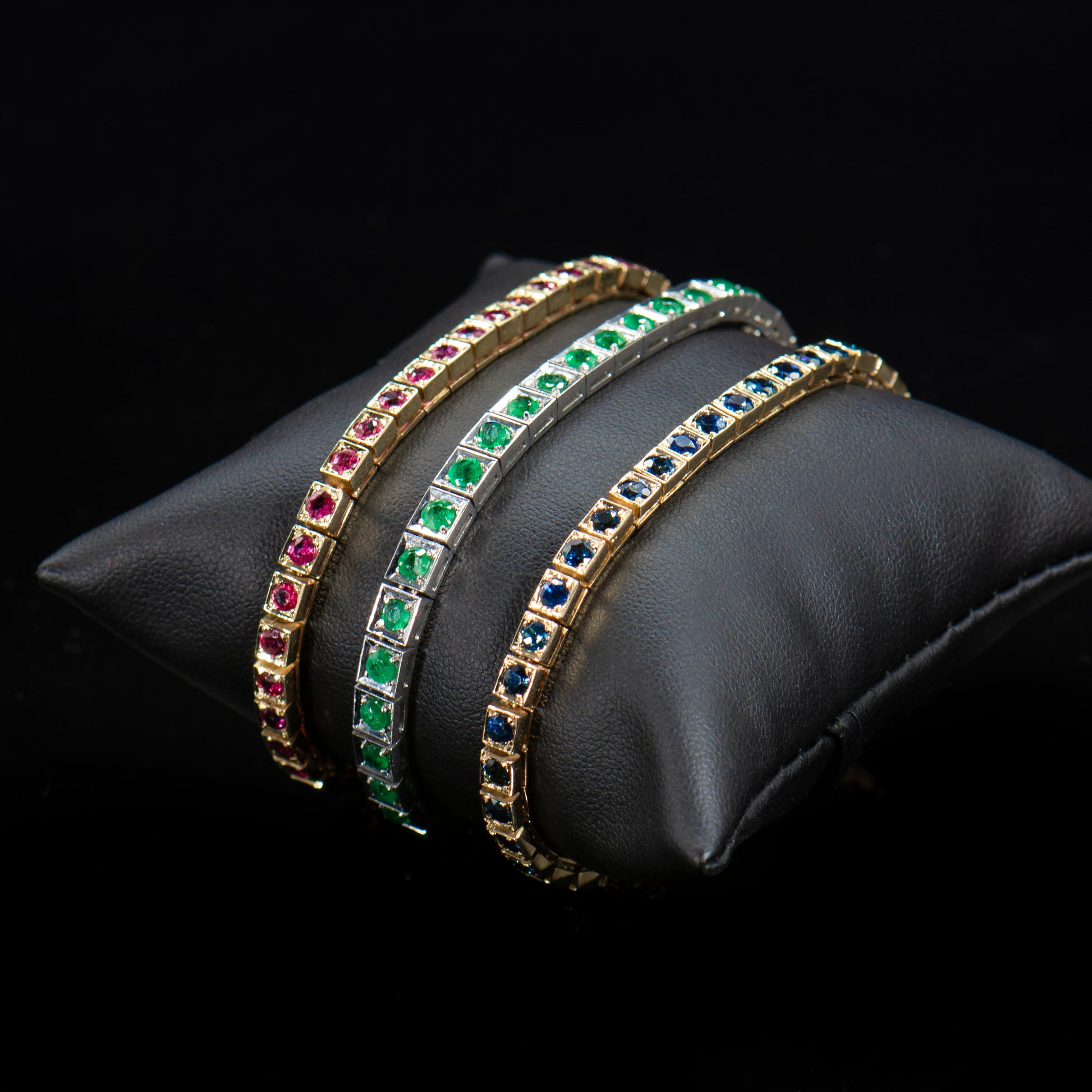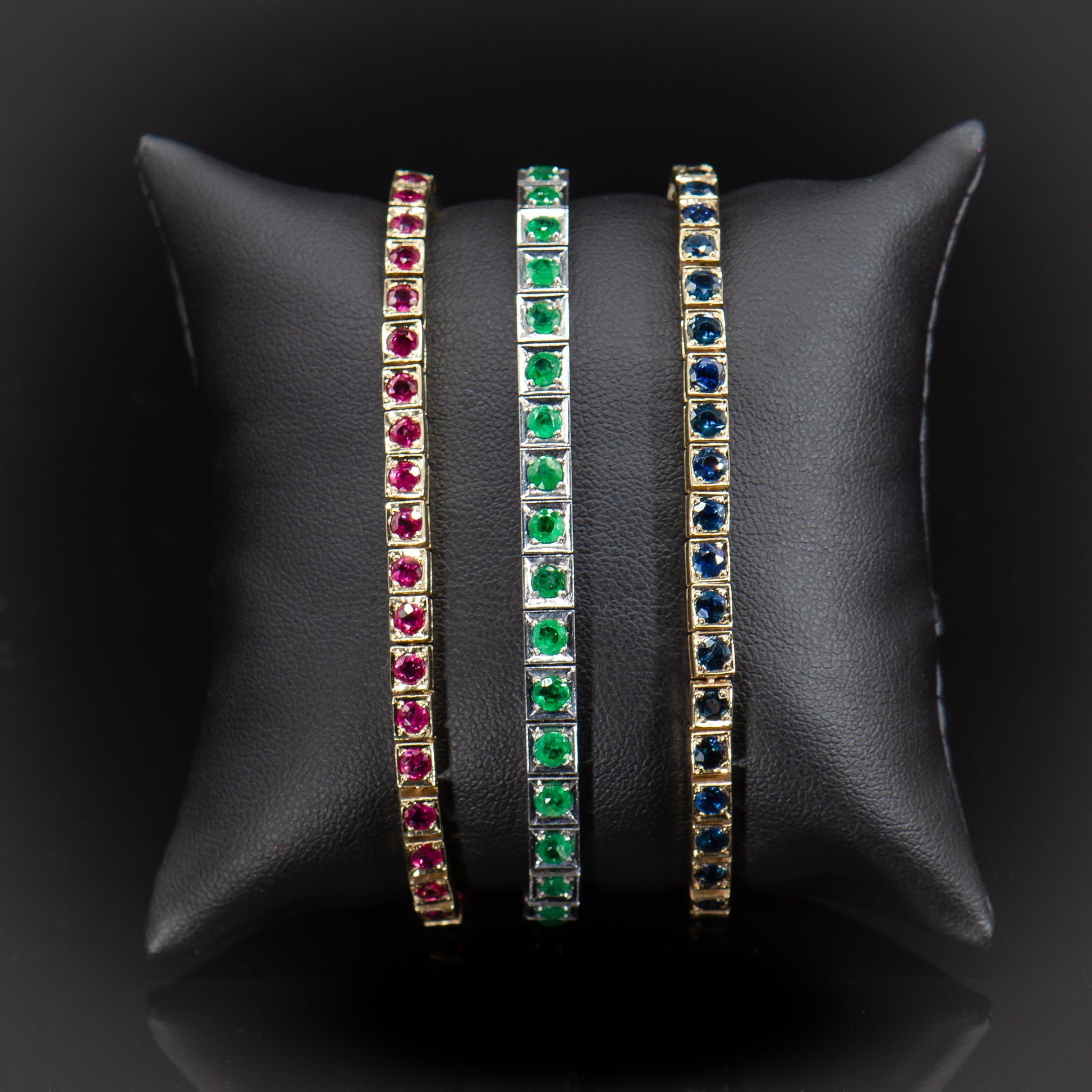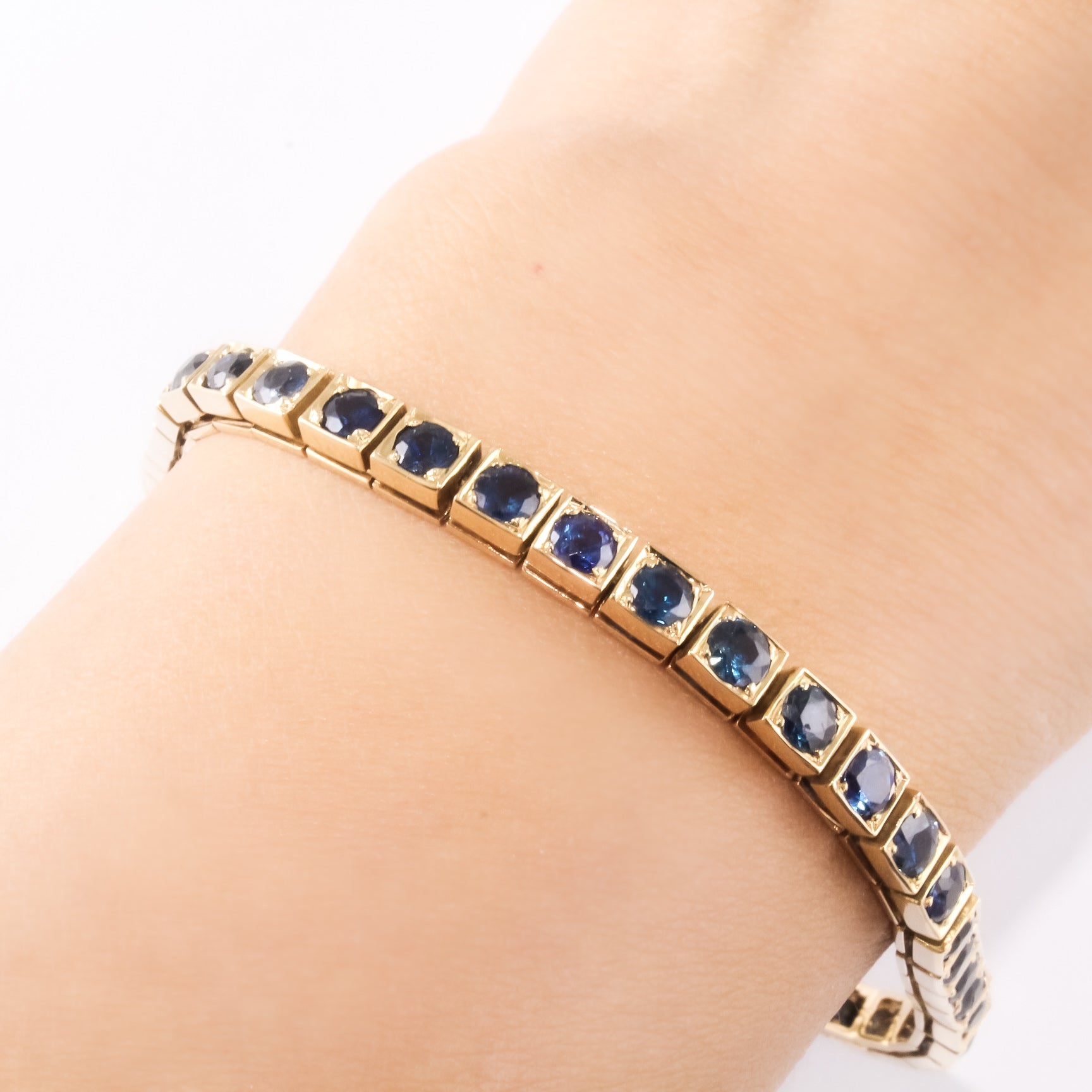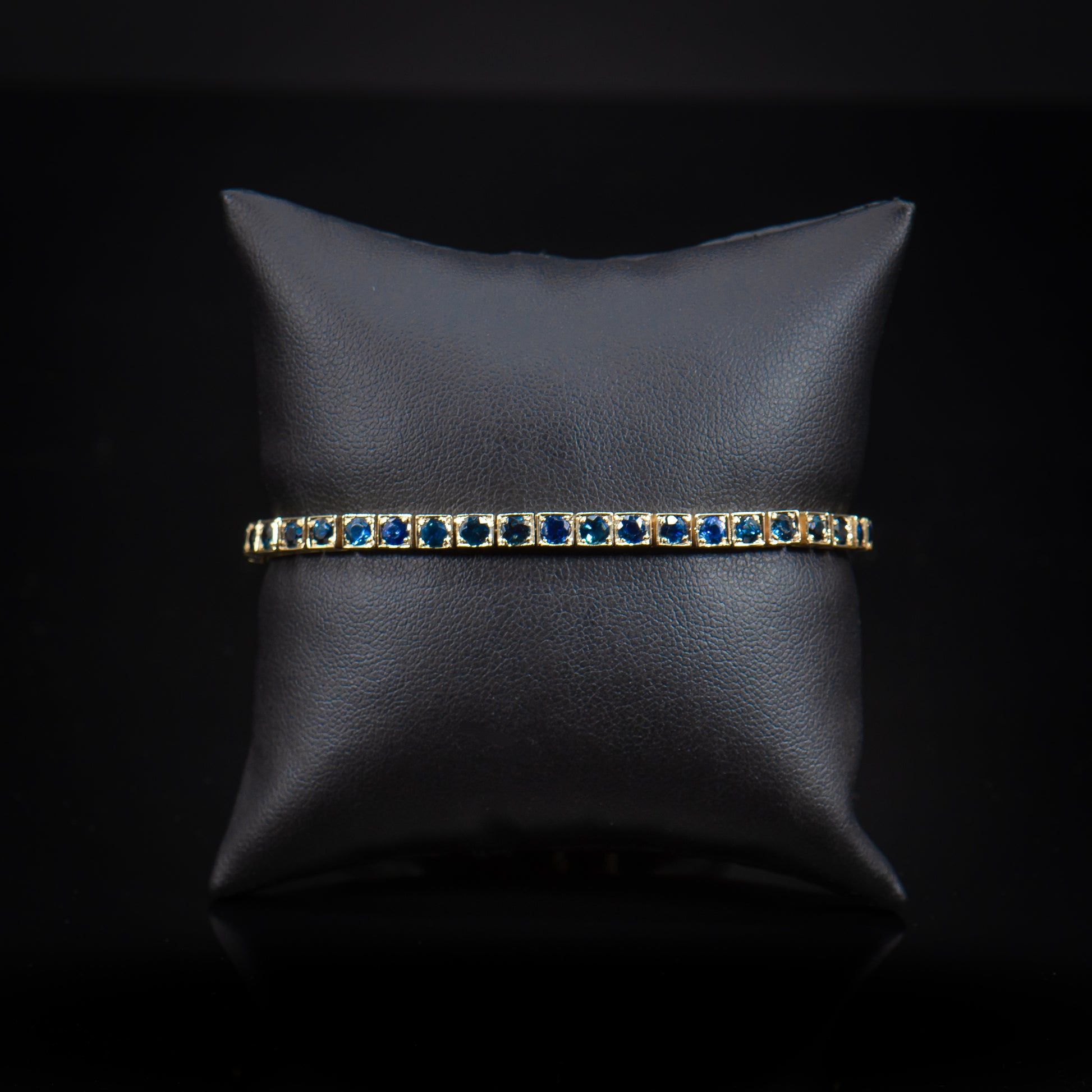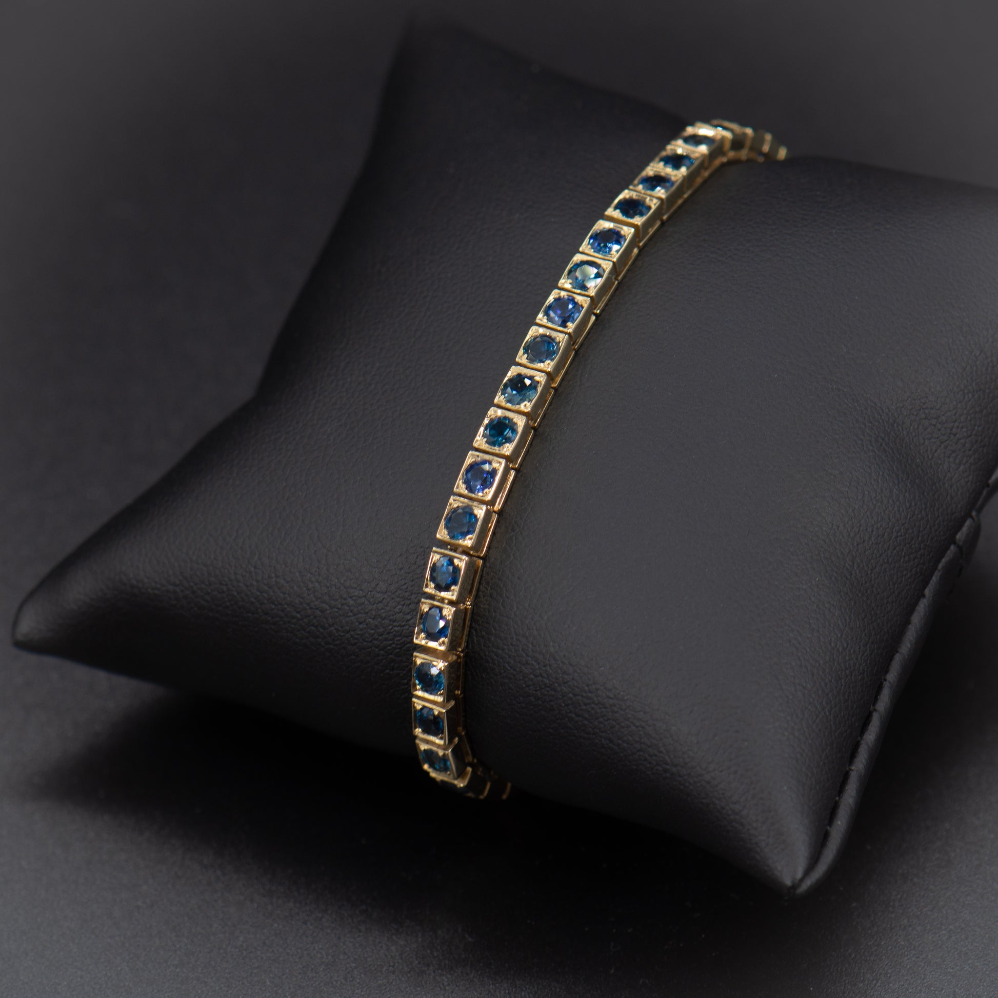 Brazalete de tenis de zafiro azul vintage de oro de 18 k, 6,00 quilates