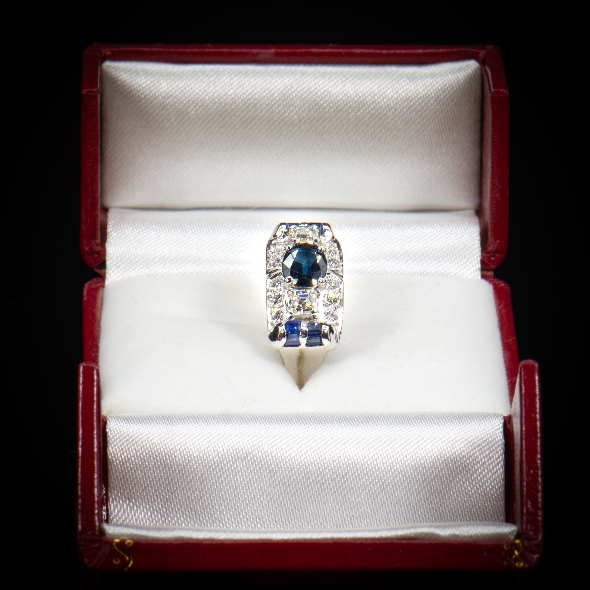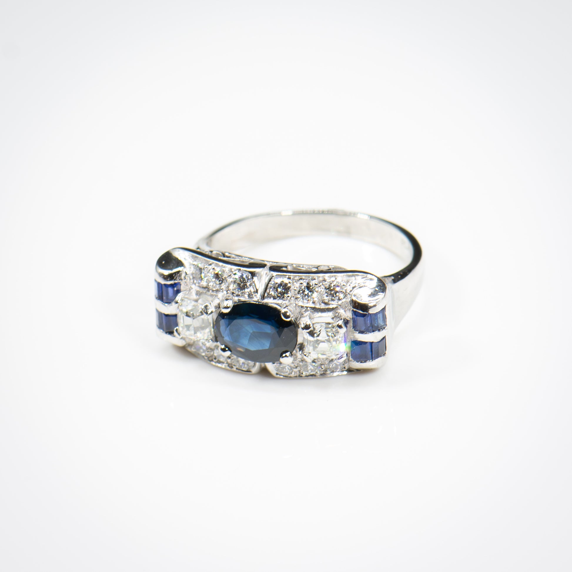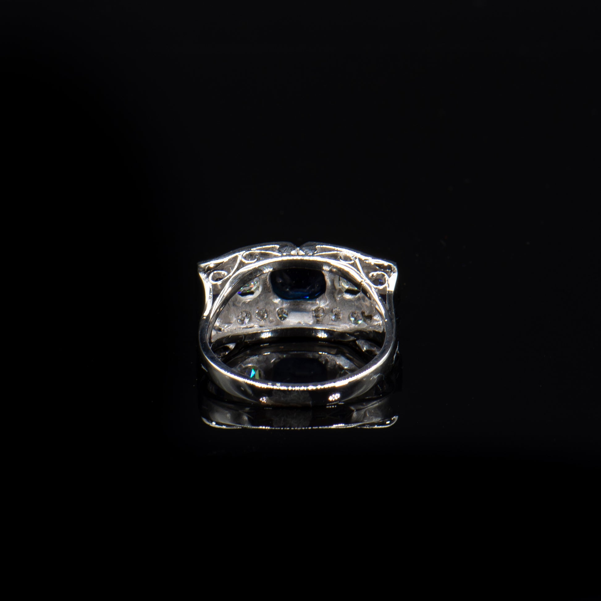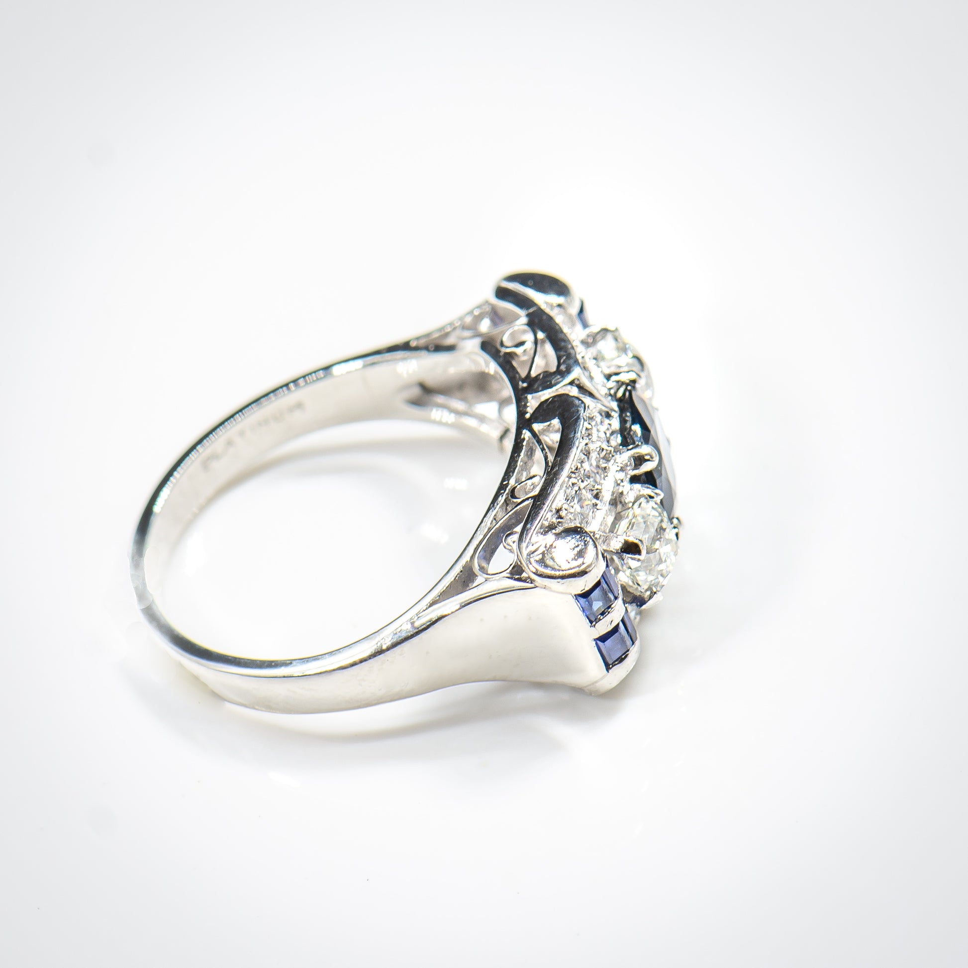 Art Deco Platinum Natural Blue Sapphire Diamond Ring