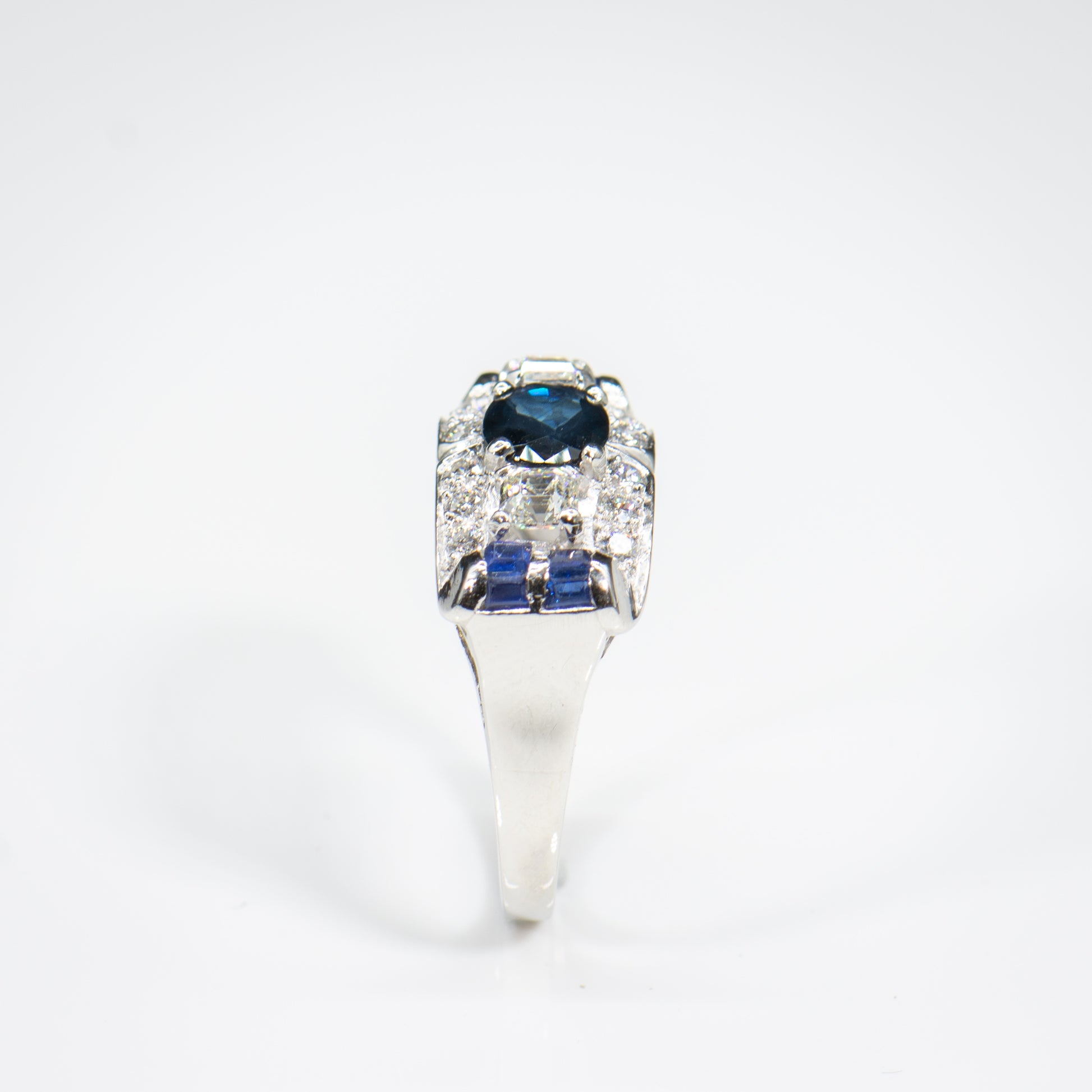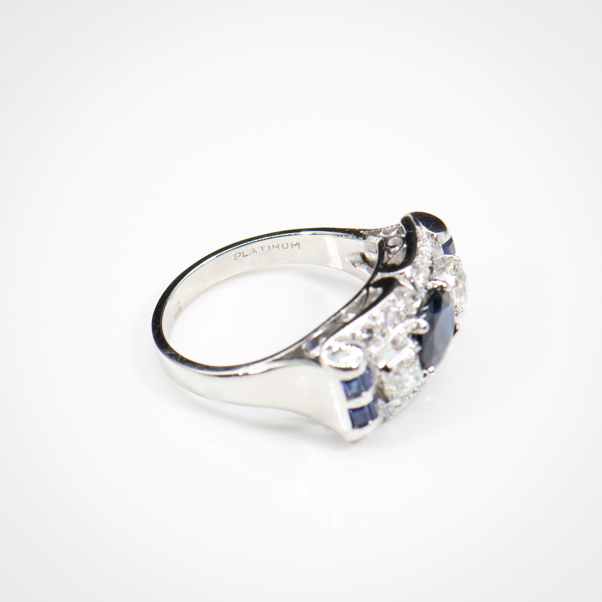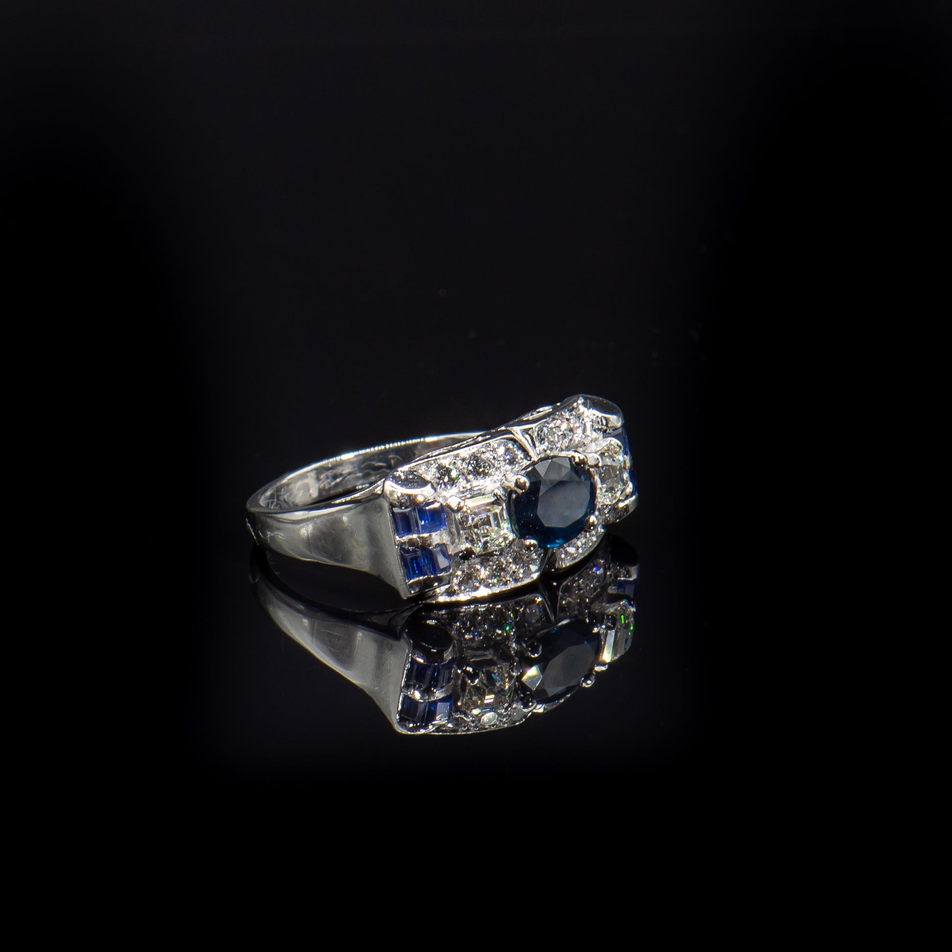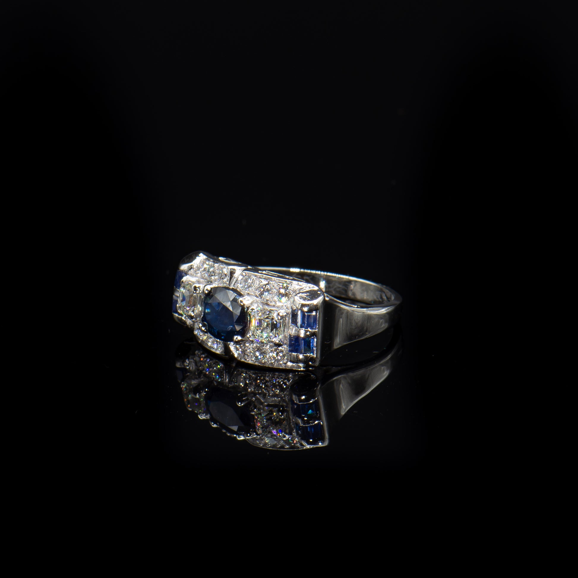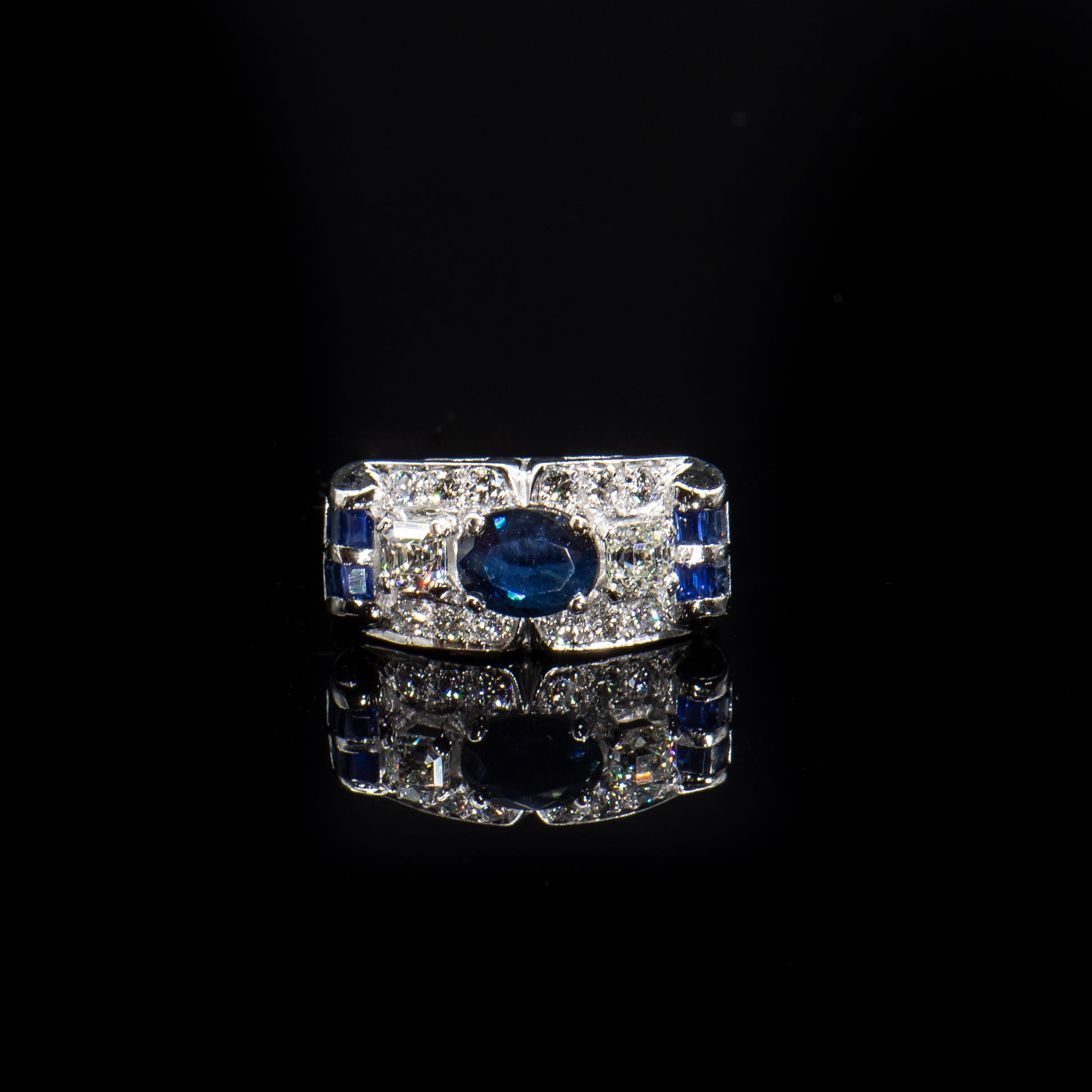 Art Deco Platinum Natural Blue Sapphire Diamond Ring