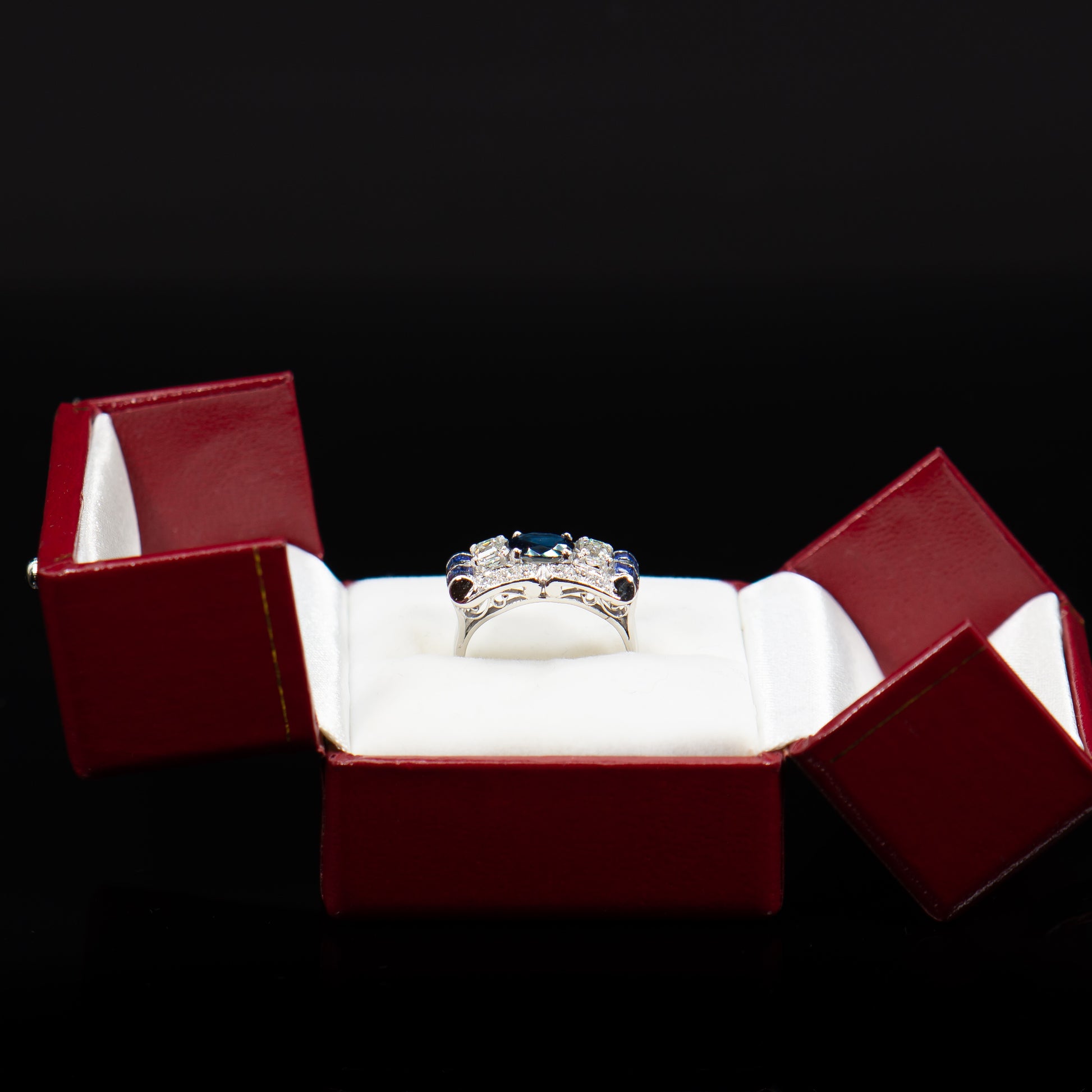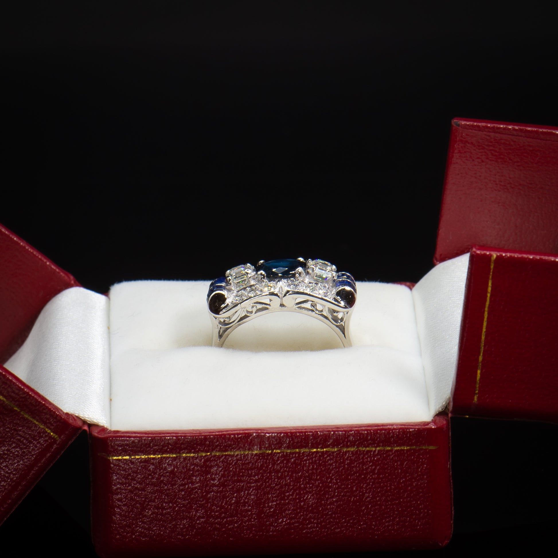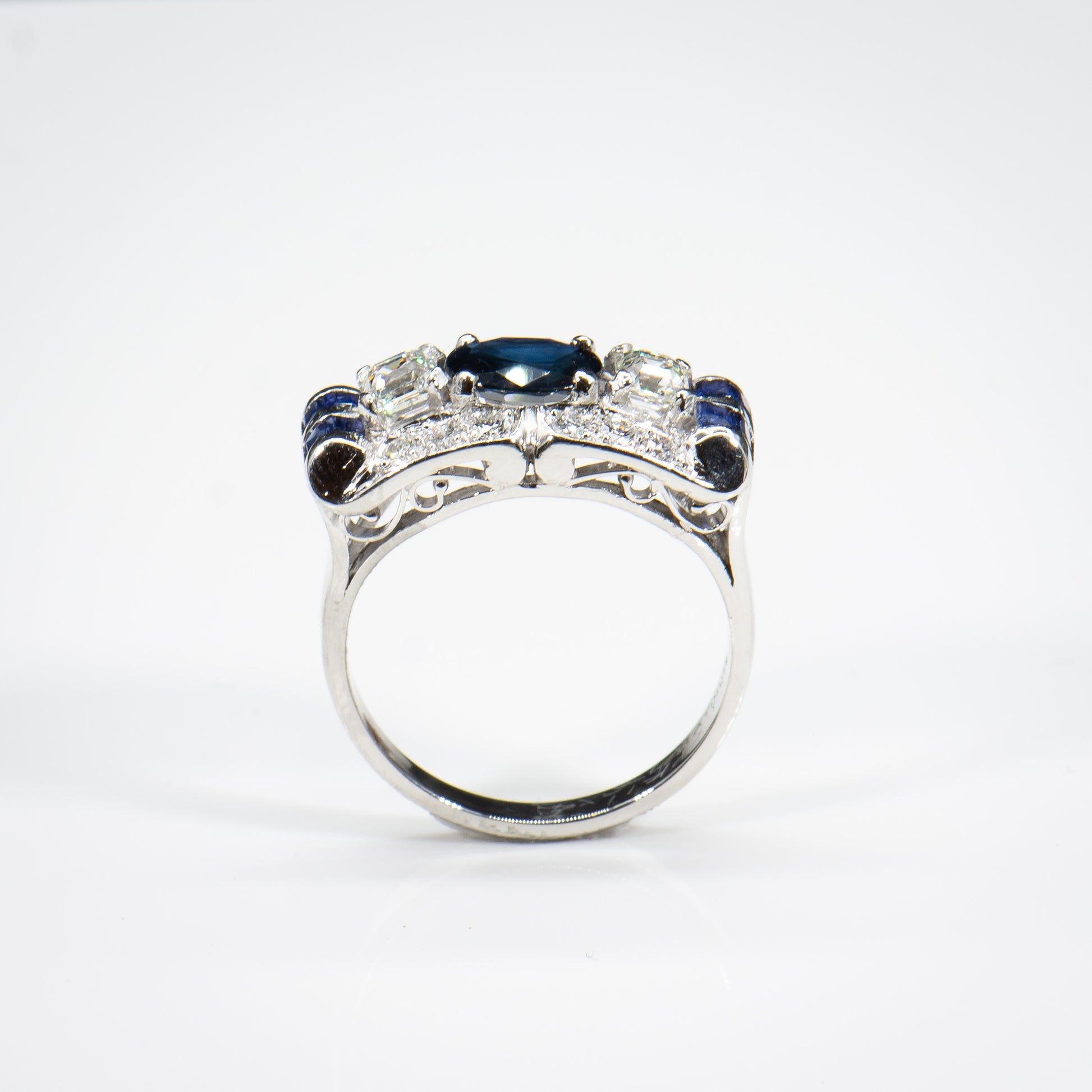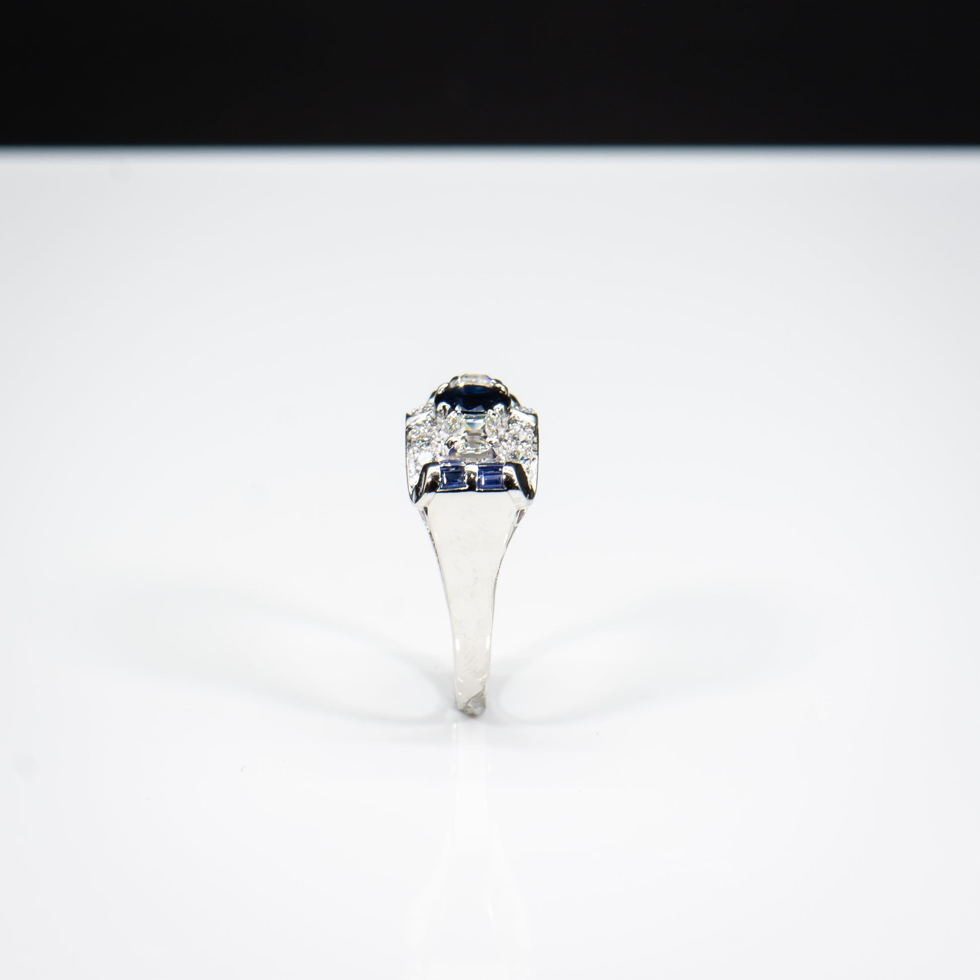 Art Deco Platinum Natural Blue Sapphire Diamond Ring