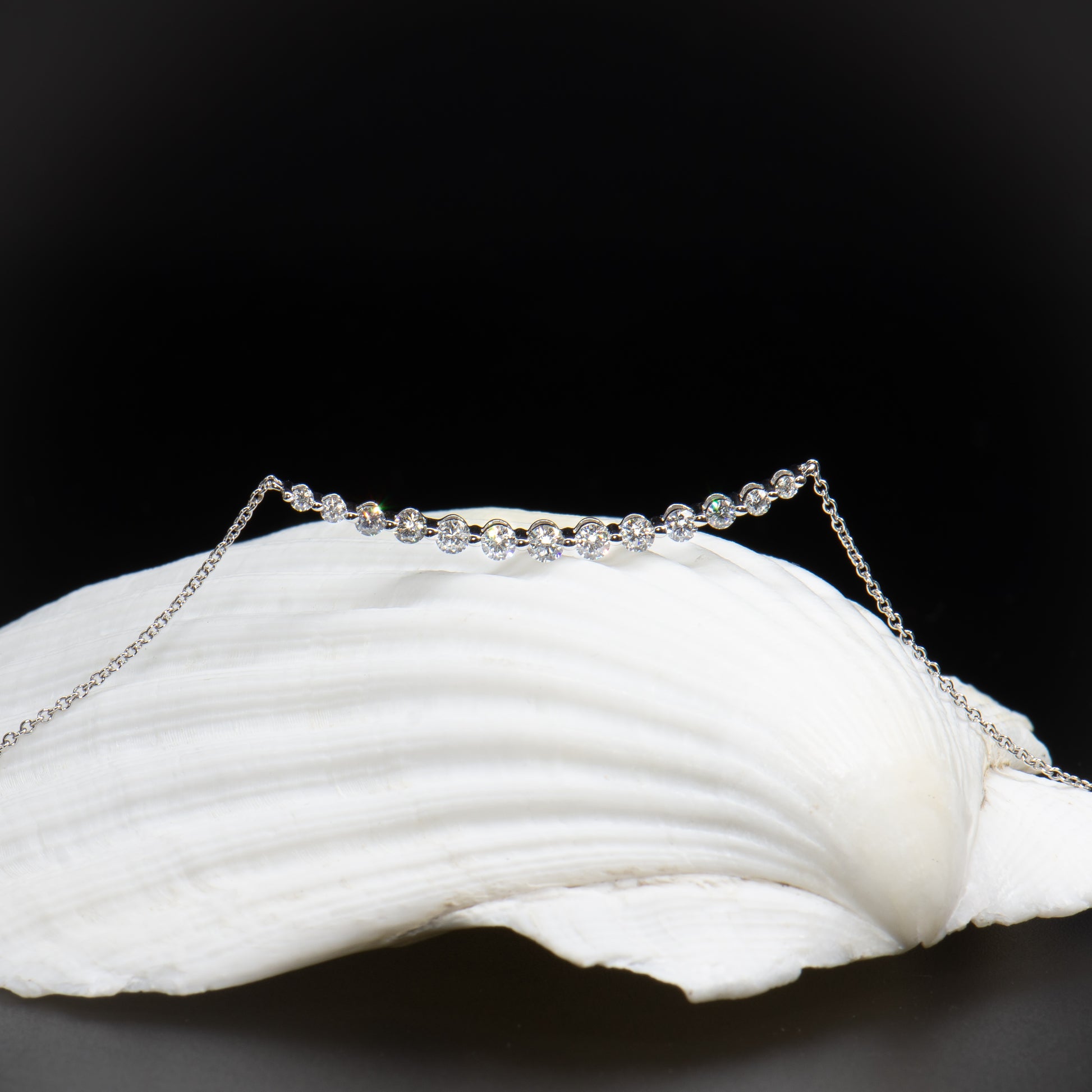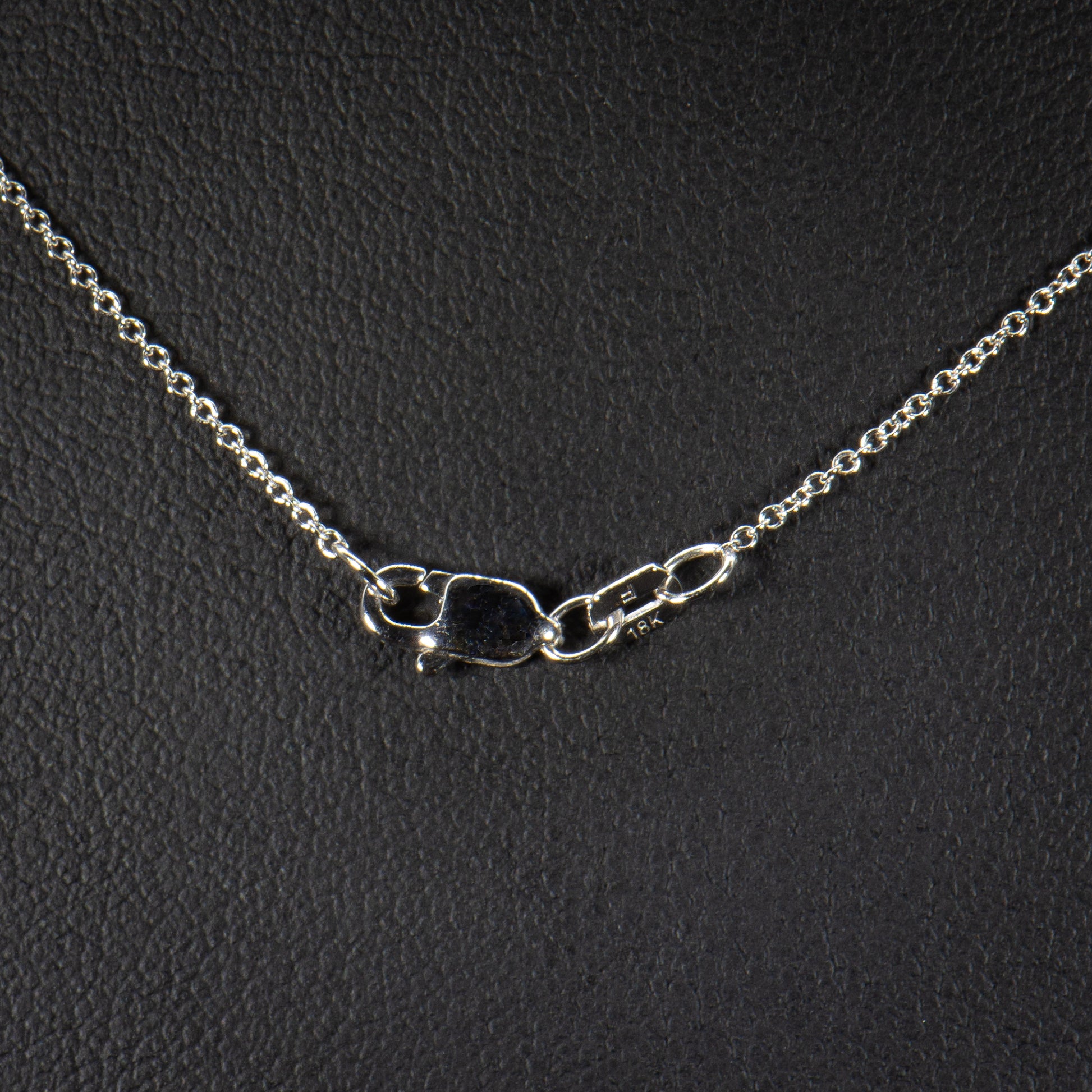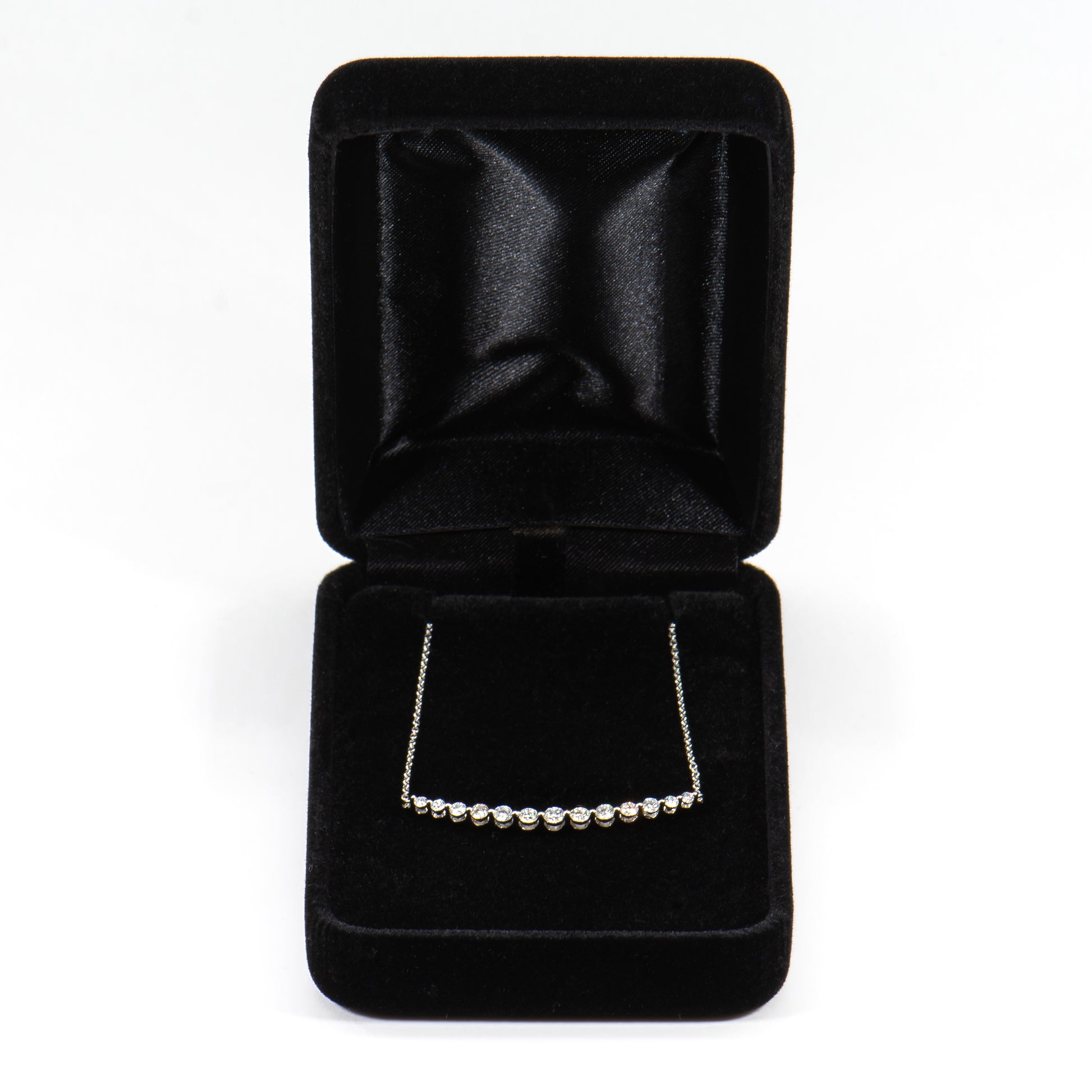 This striking necklace sparkles with approximately 1.00 carat of full-cut round, Earth mined natural Diamonds in a sophisticated curved style set in 18 karat white gold.