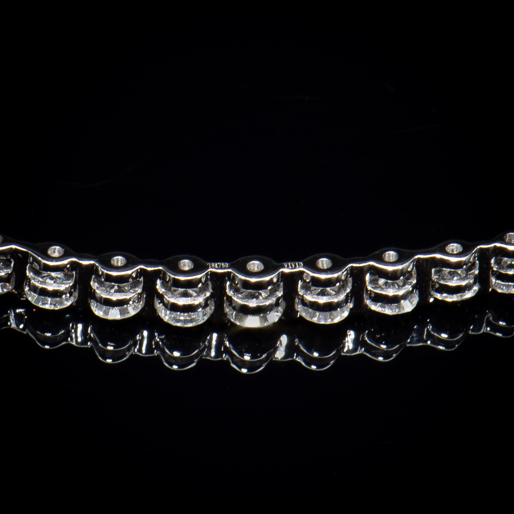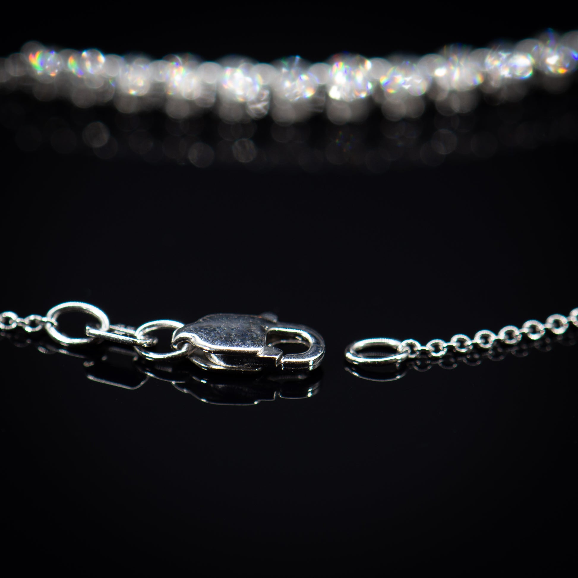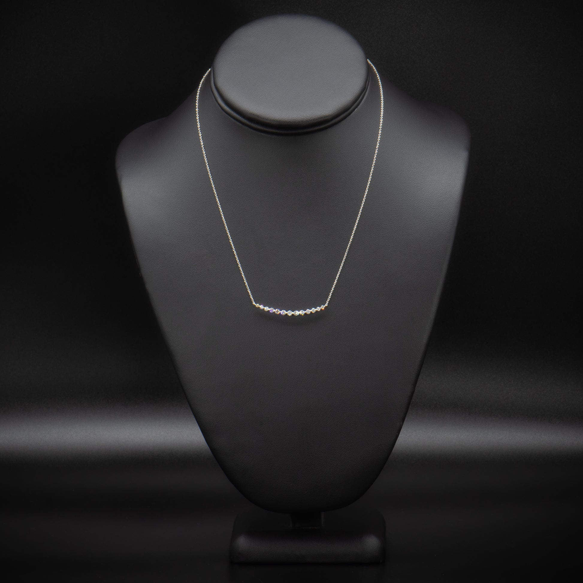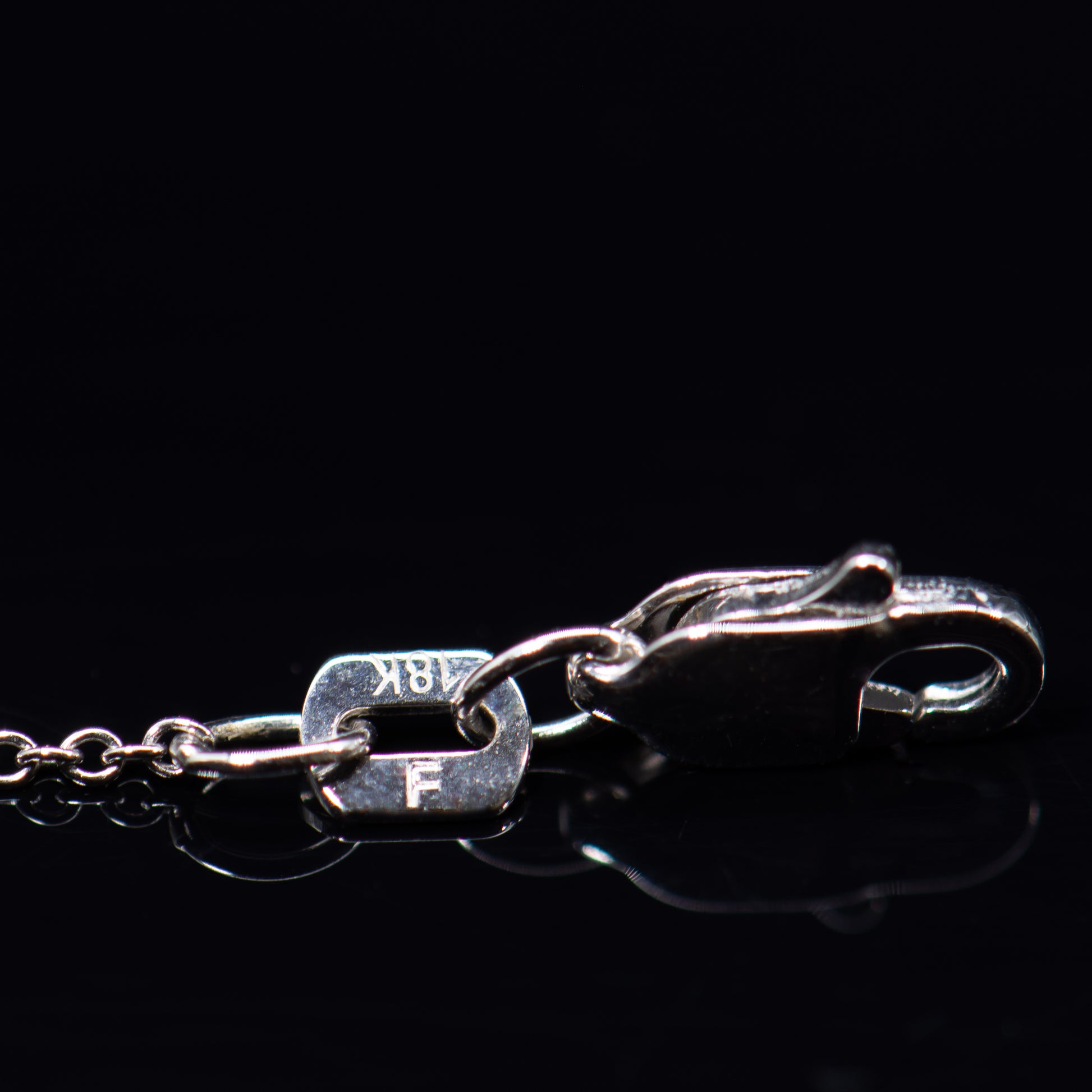 This striking necklace sparkles with approximately 1.00 carat of full-cut round, Earth mined natural Diamonds in a sophisticated curved style set in 18 karat white gold.