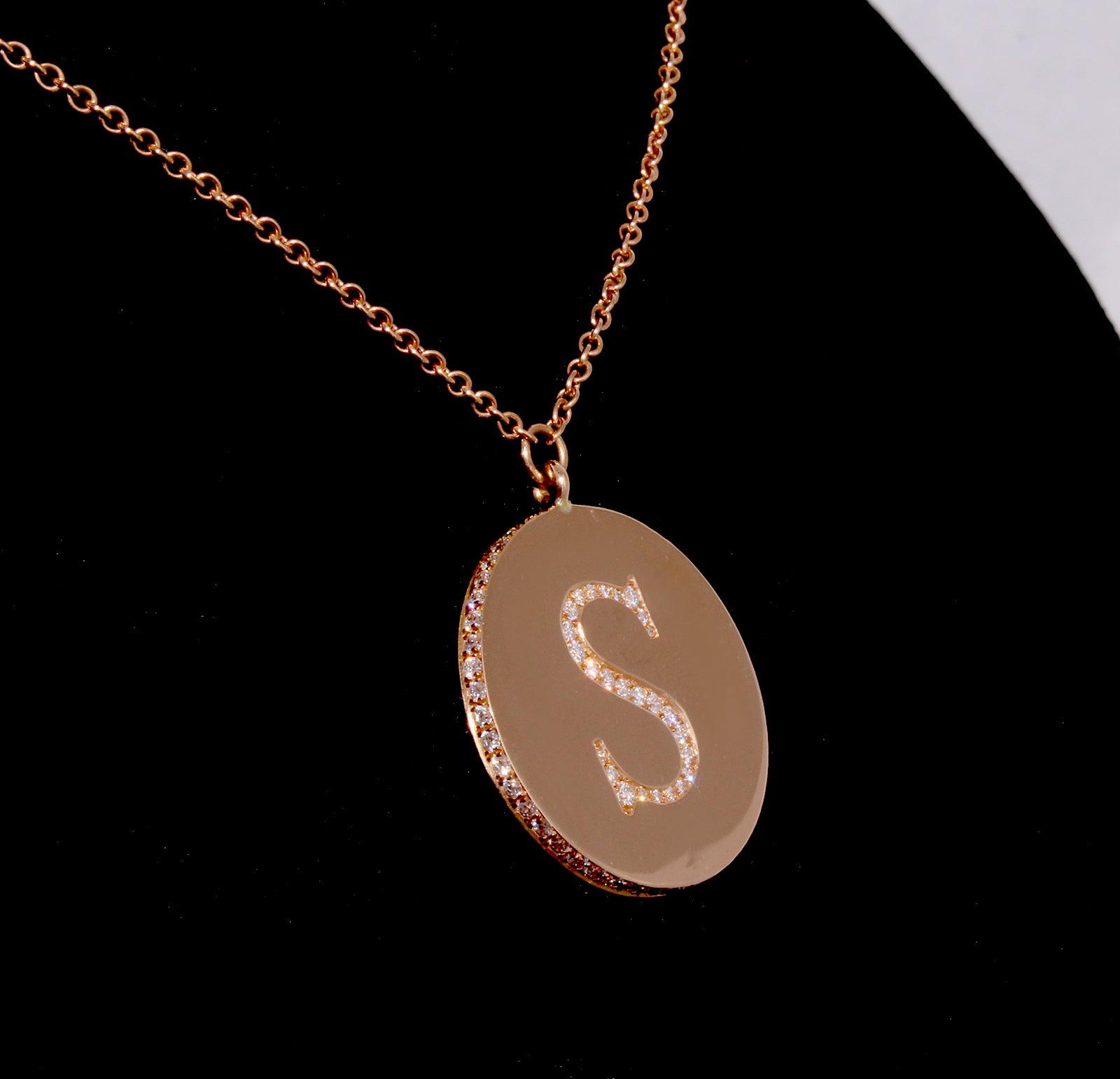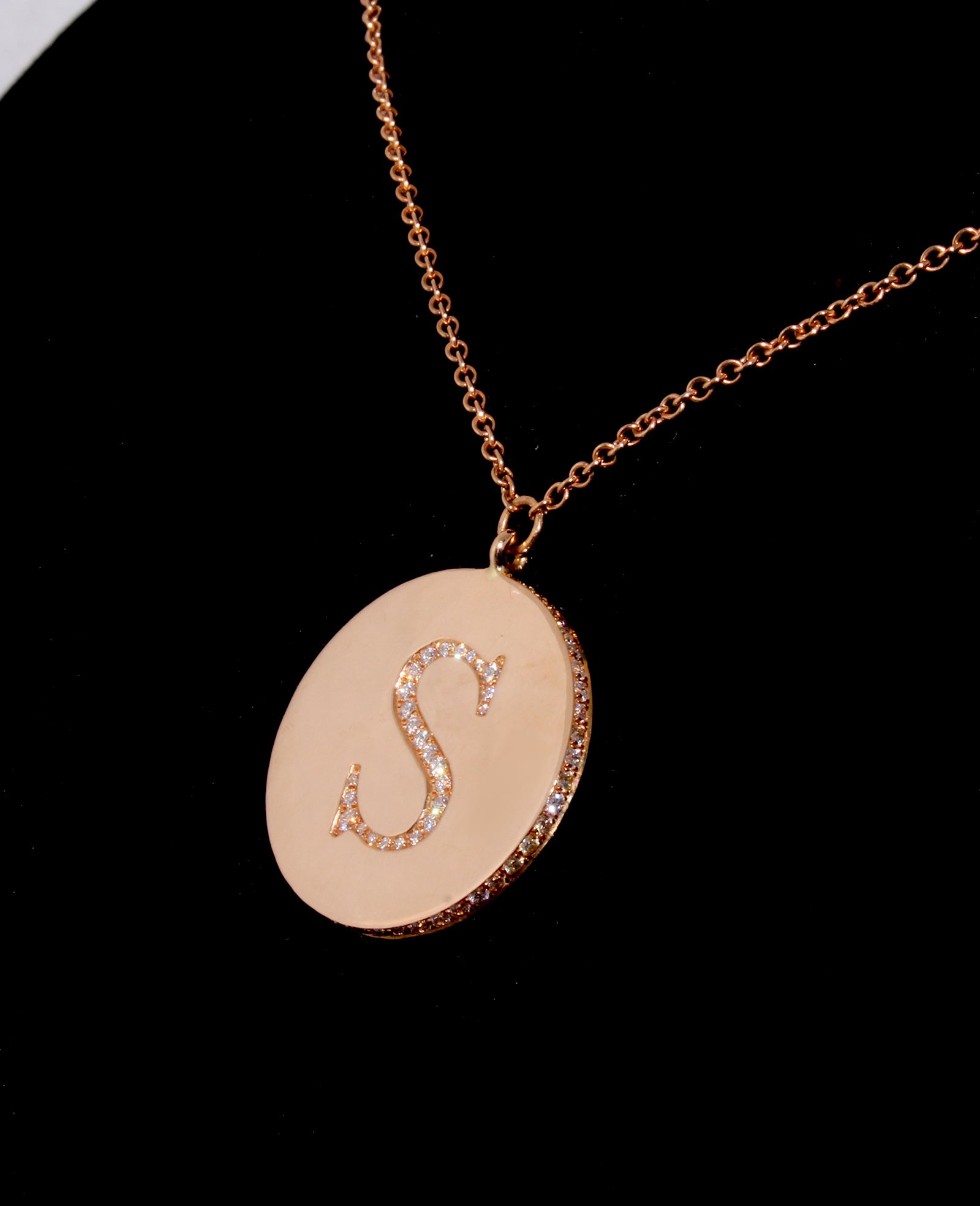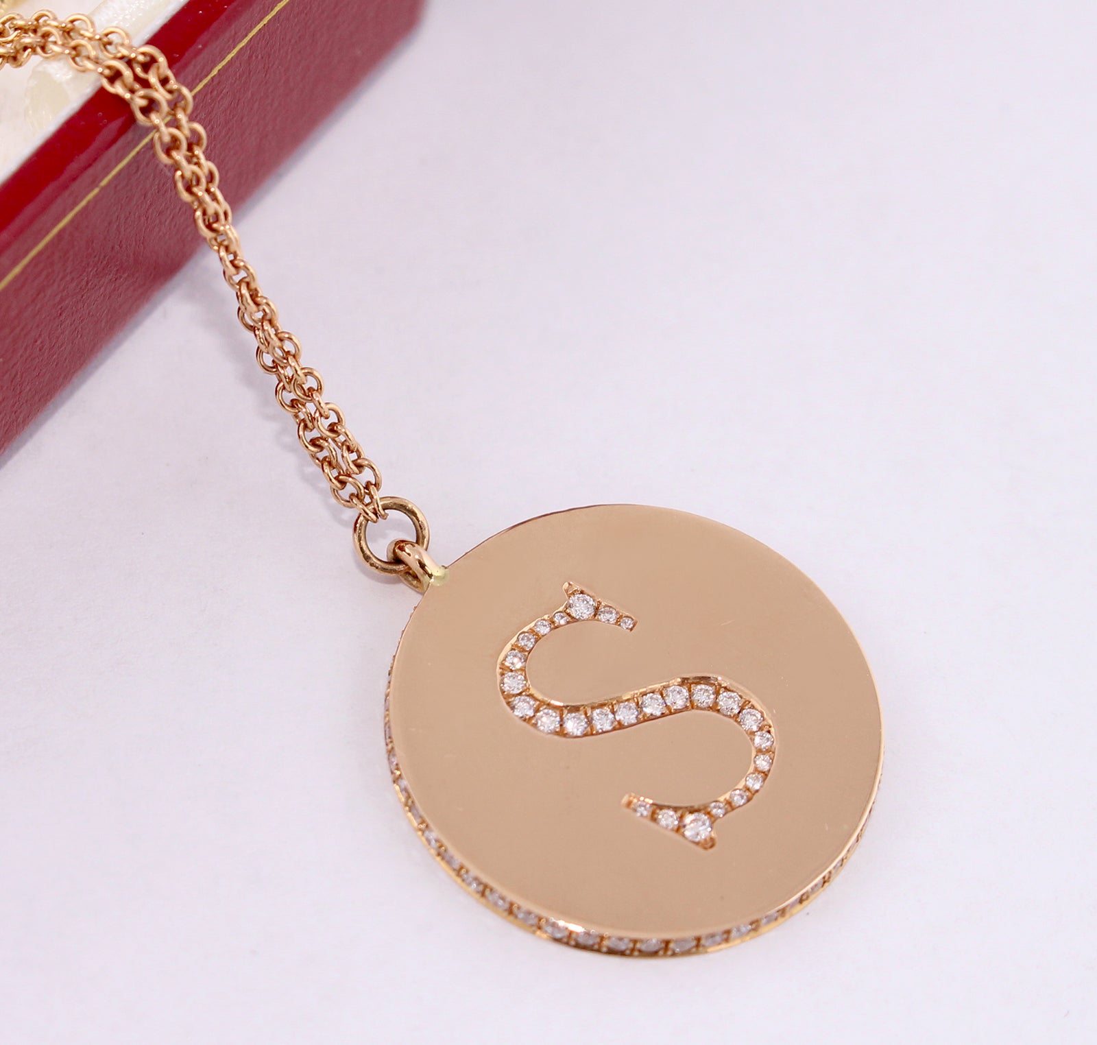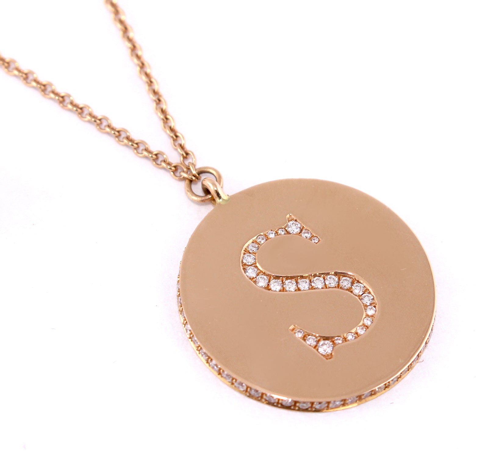 18k Rose Gold Diamond S Initial Monogram Pendant Necklace