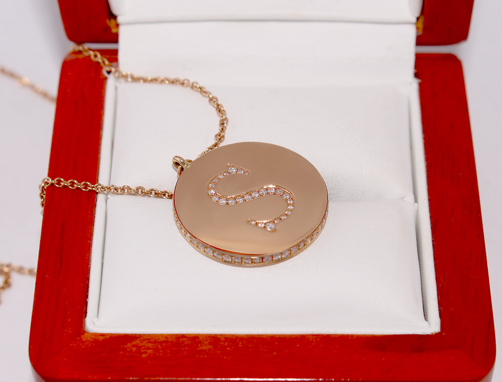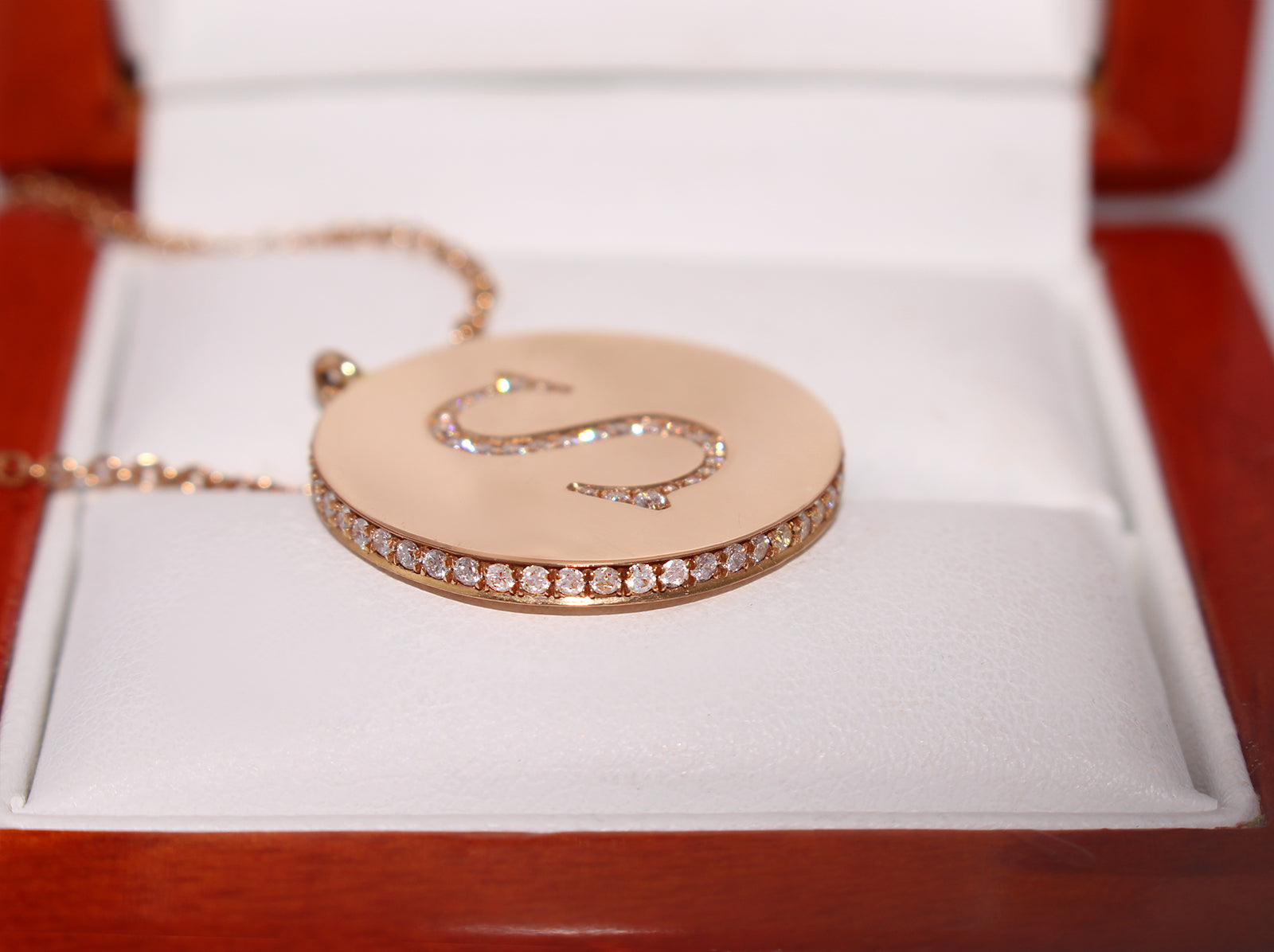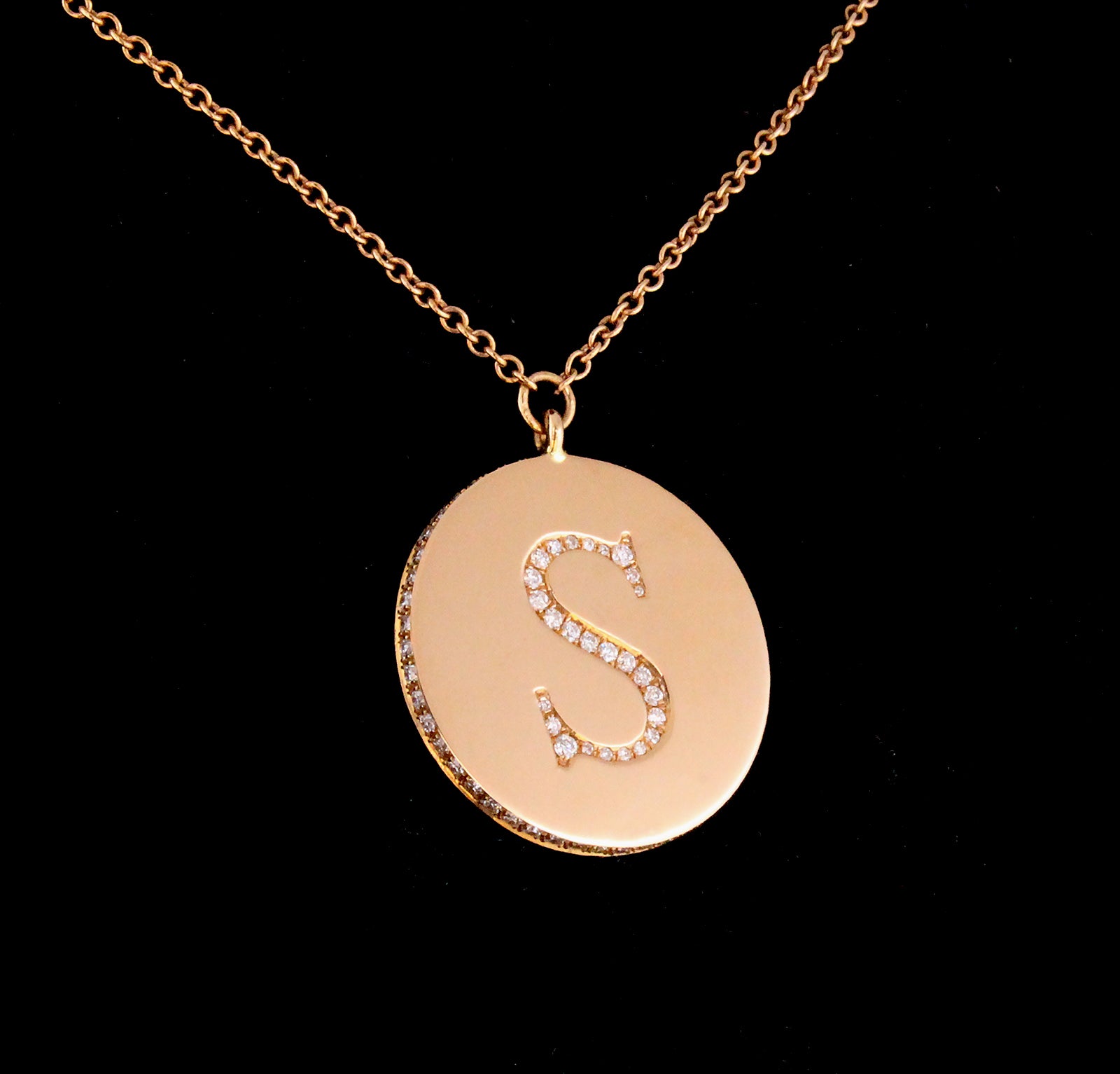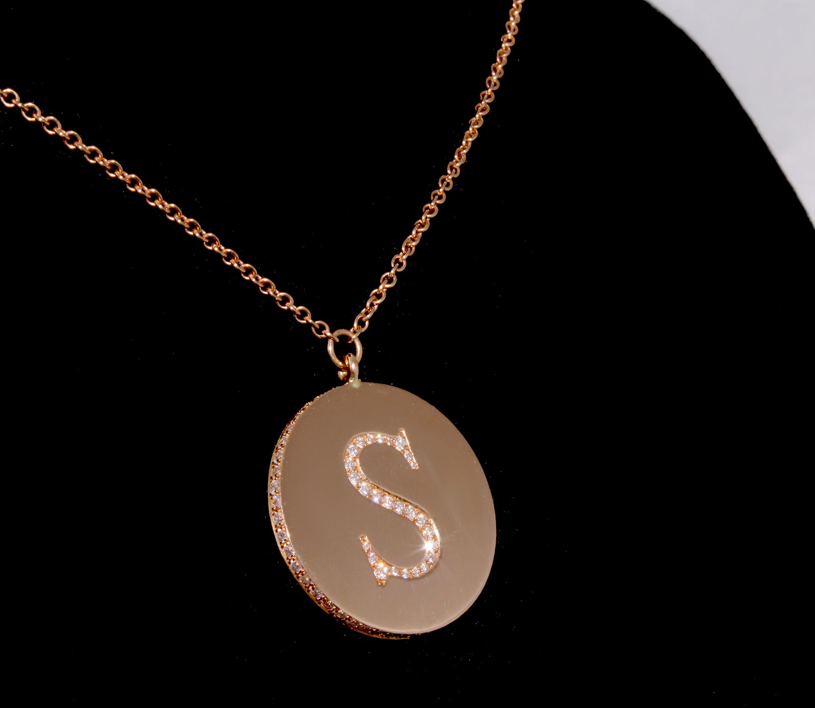 18k Rose Gold Diamond S Initial Monogram Pendant Necklace