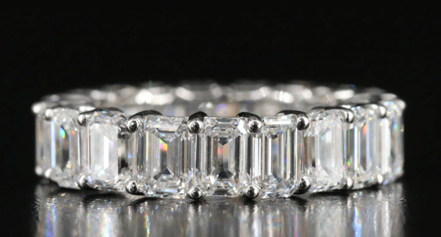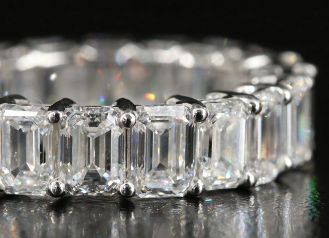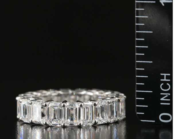 Embrace the future of fine jewelry with this certified, sustainable, and stunningly beautiful piece.Make a bold statement that lasts forever with our 9.12 Carat Emerald Cut Lab Grown Diamond Eternity Band – where innovation meets timeless elegance in perfect harmony