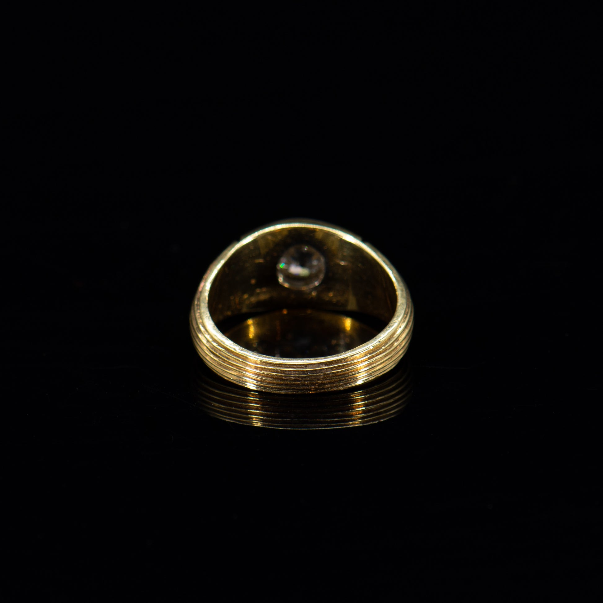 This Retro era ring is in exceptional, pristine and original condition! The Earth mined natural diamond is a substantial 1.50 carats of period correct European cut sparkle. The diamond is bezel set into the the ring with allows the piece to be worn securely. The ring mount features a flowing curvilinear design characteristic of the 1930's and 40's.
