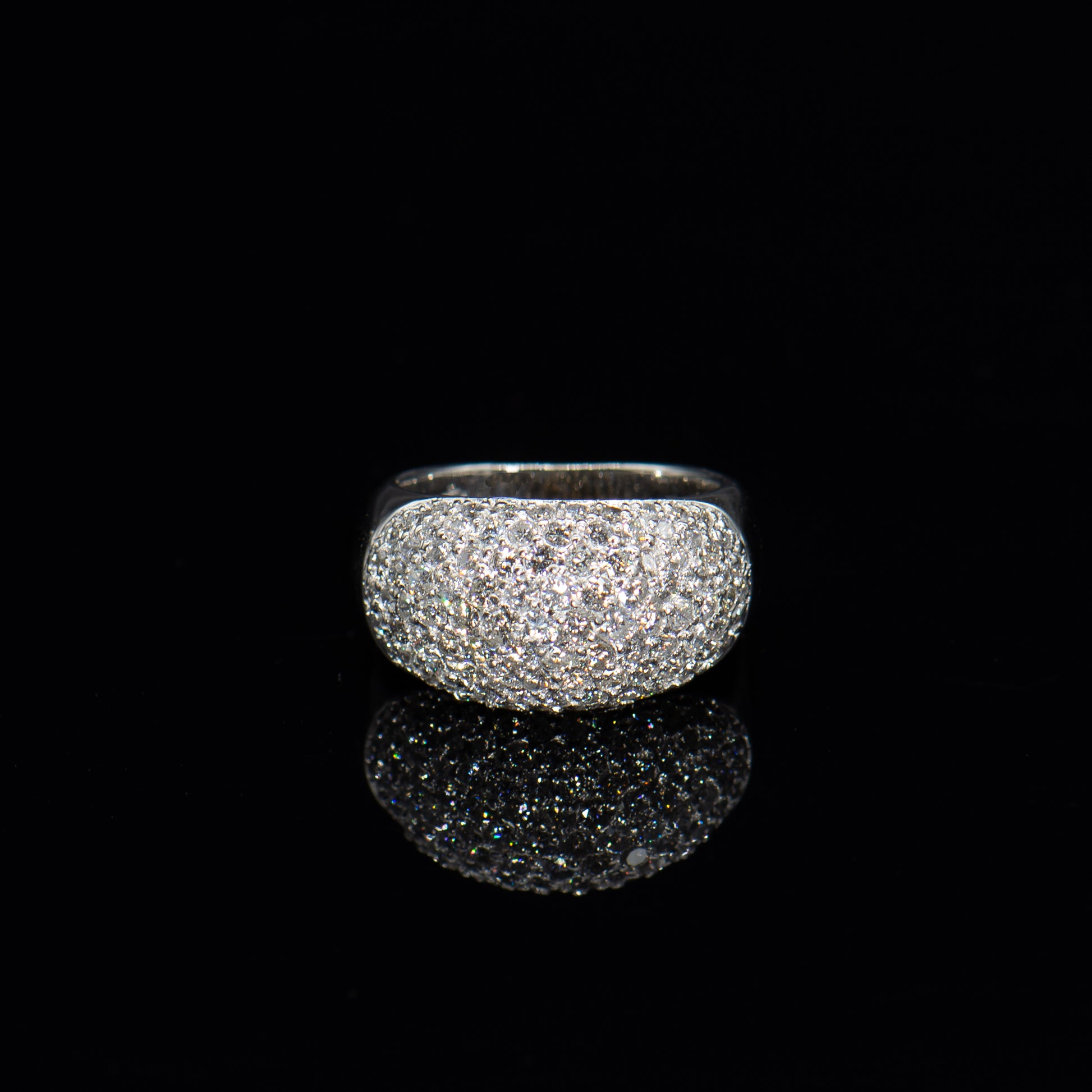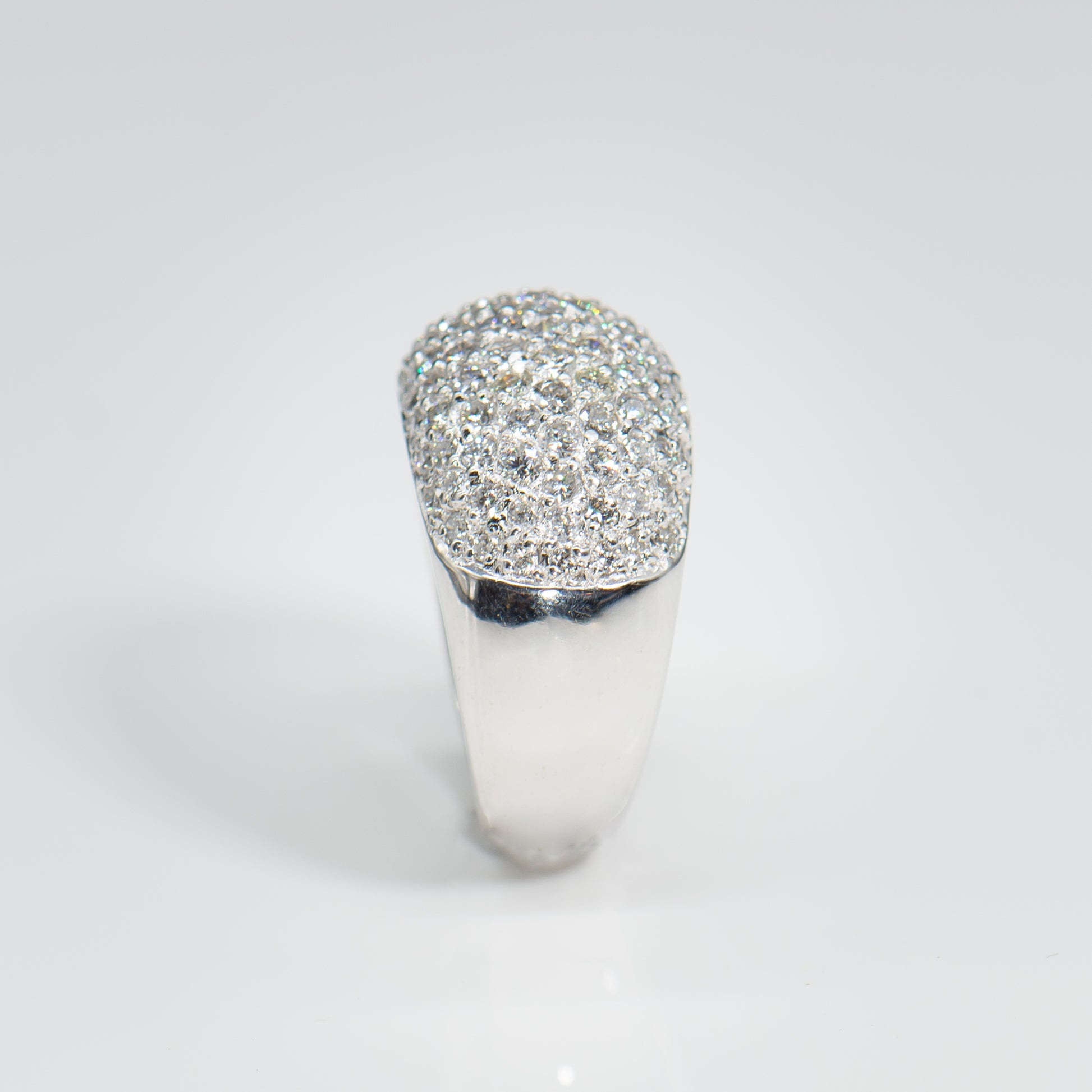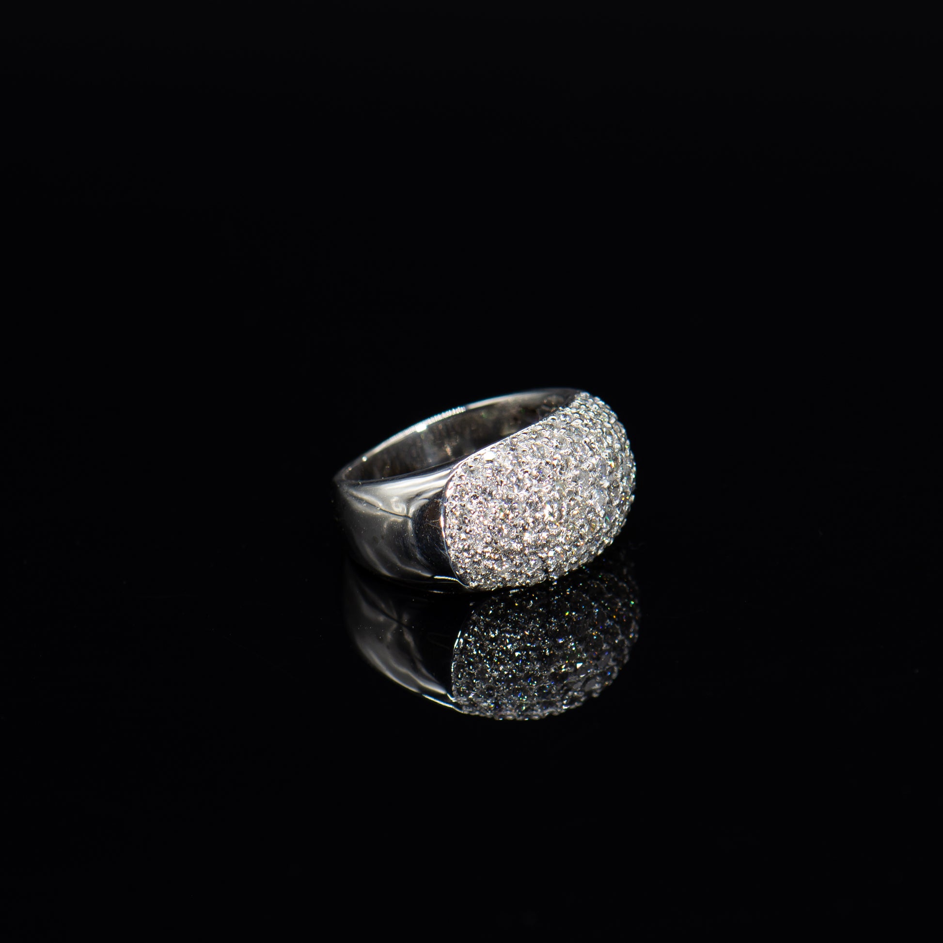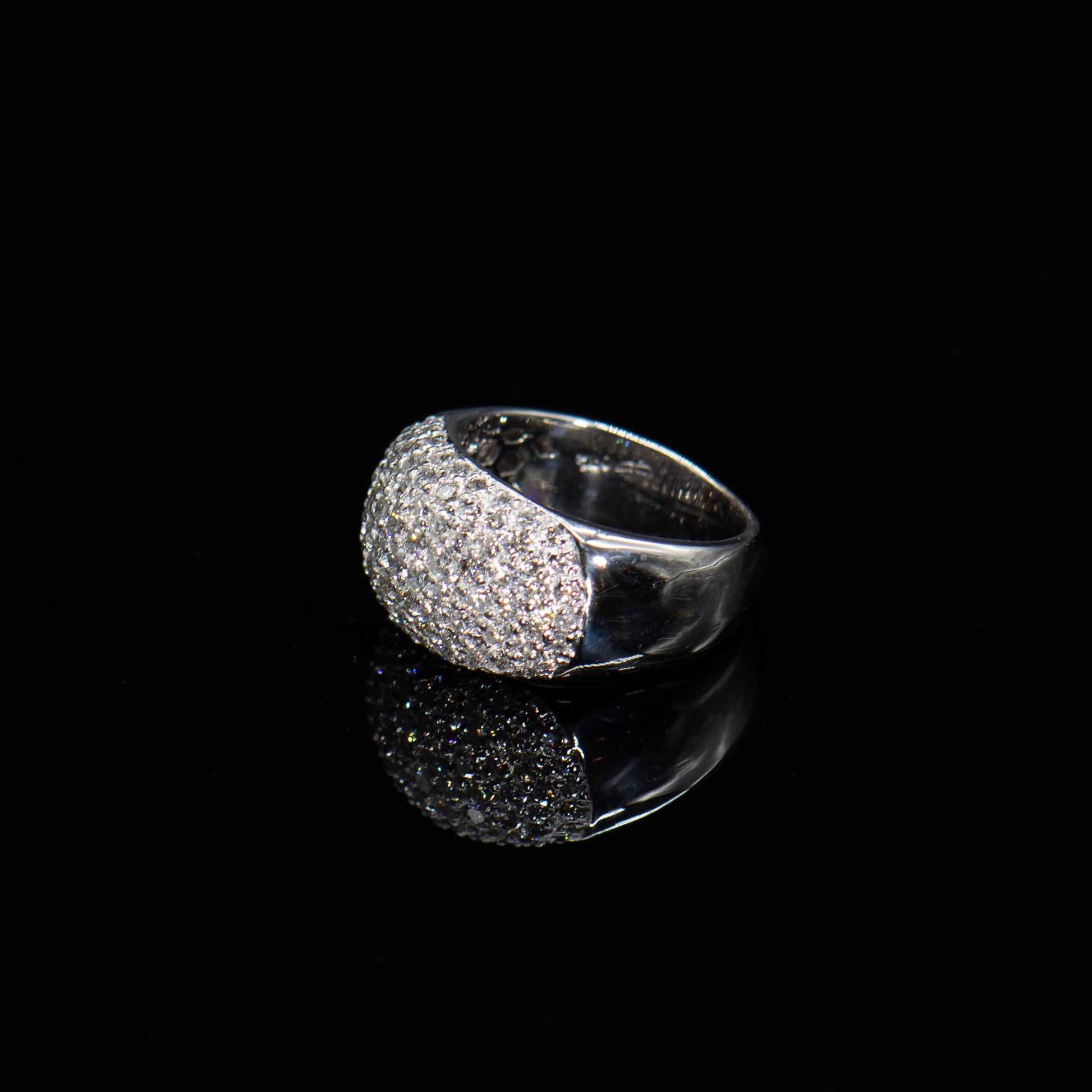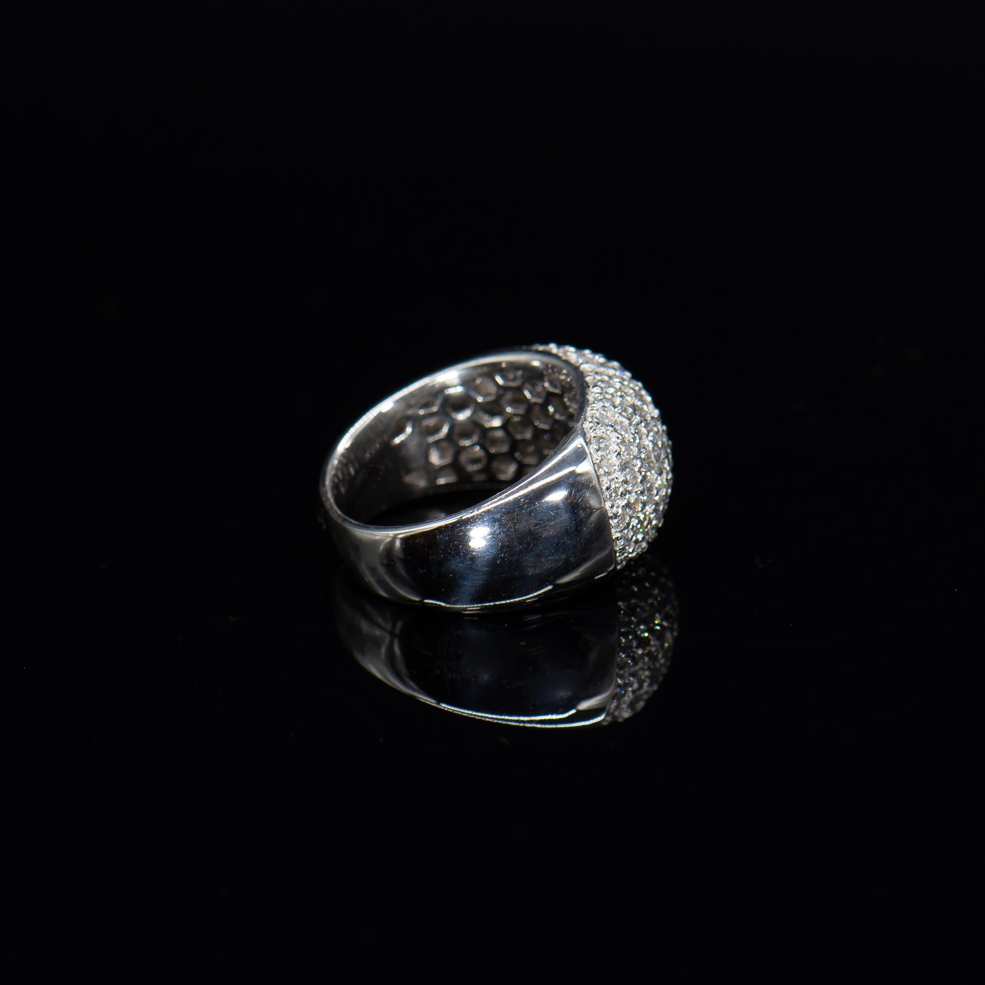 This breathtaking ring is comprised of row upon row of full-cut round white diamonds in high polish solid 18k white gold.
