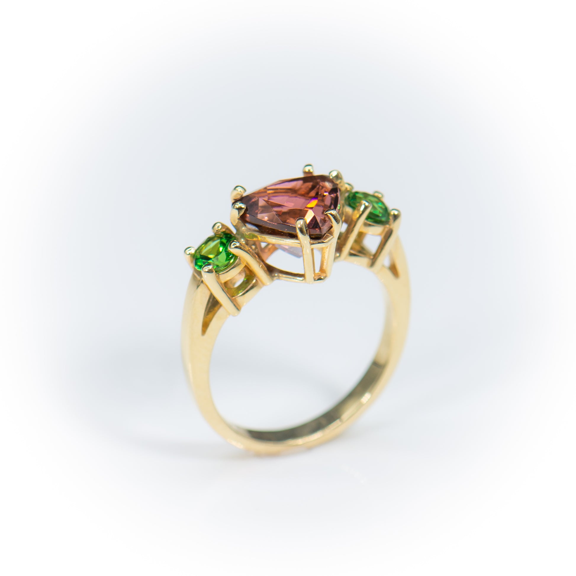 Exquisite Earth Mined Natural Brown and Green Tourmaline Gemstone Ring