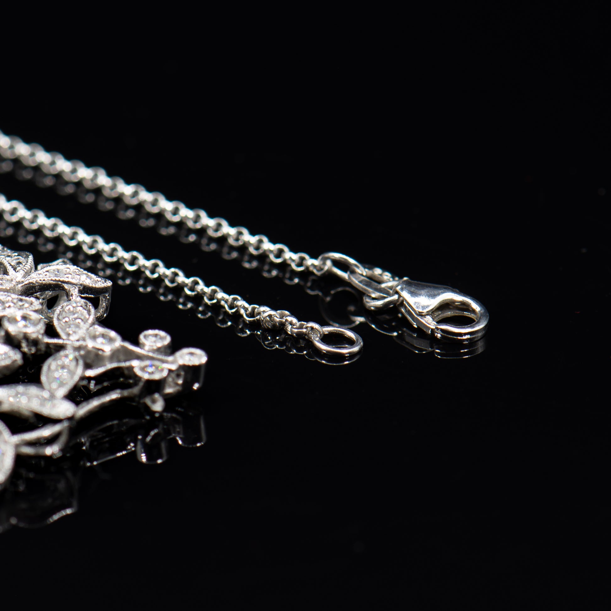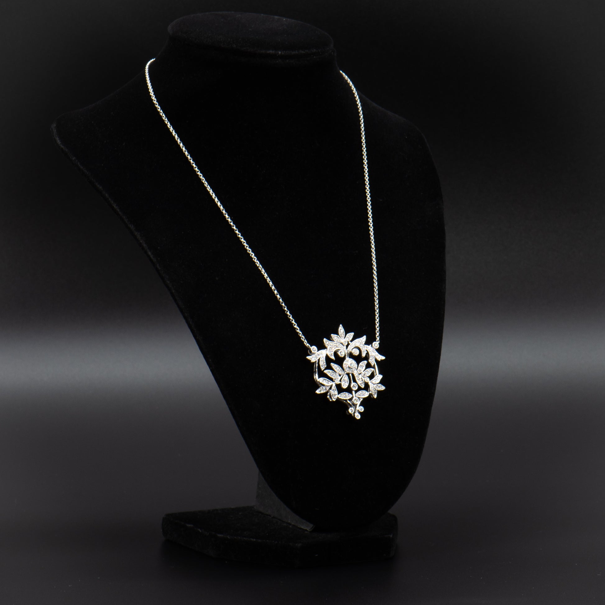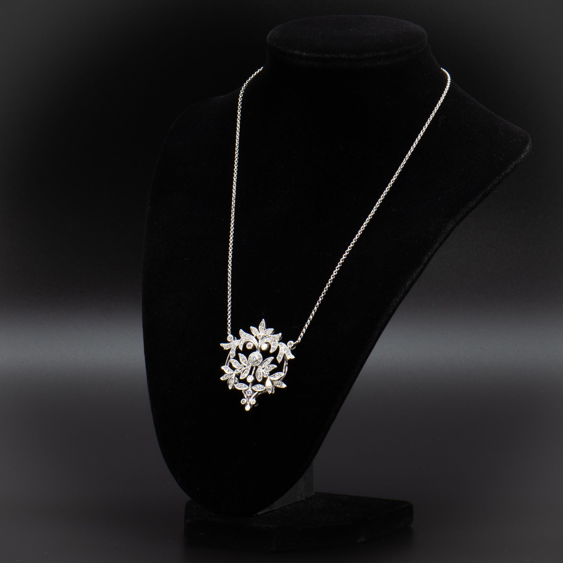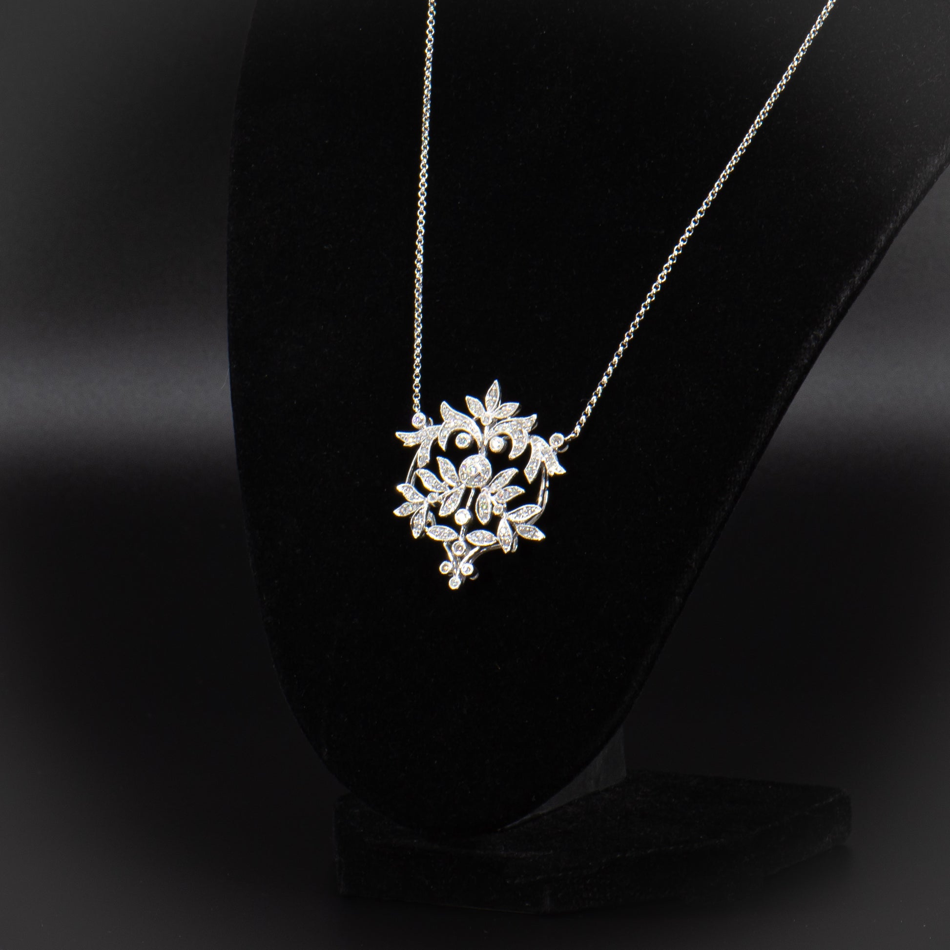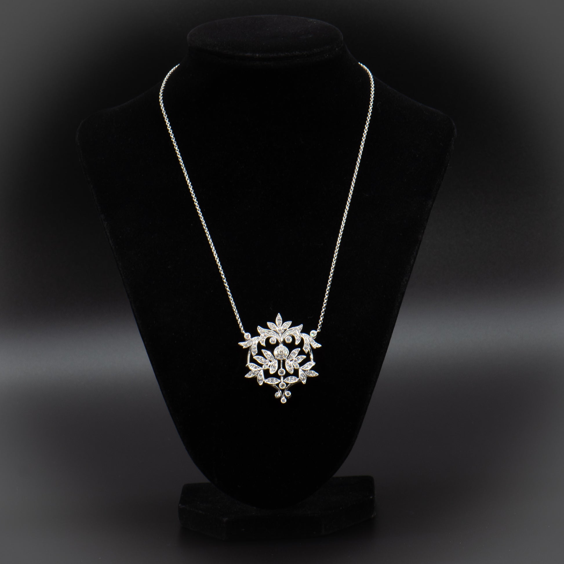 This exquisite Edwardian inspired diamond necklace is composed of sparkling full-cut Earth mined natural colorless white diamonds totaling approximately 2.00 carats set in high polish 14 karat white gold. The beautiful design of glittering vines, leaves and flowers is romantic, timeless and a perfect piece of jewelry for the bride.